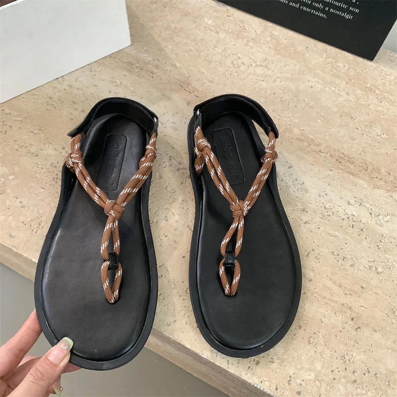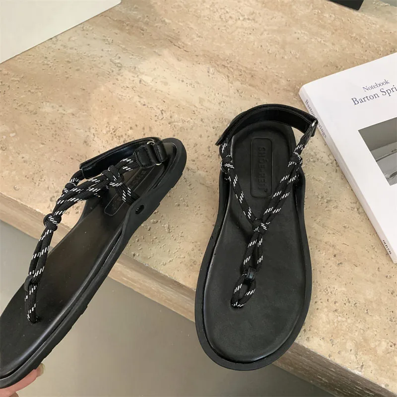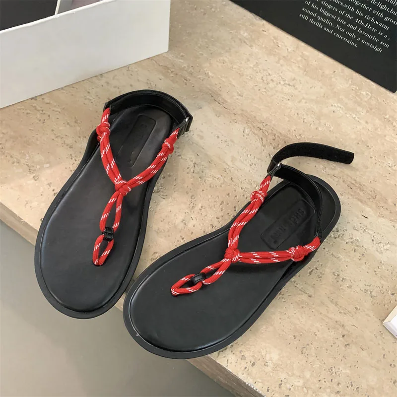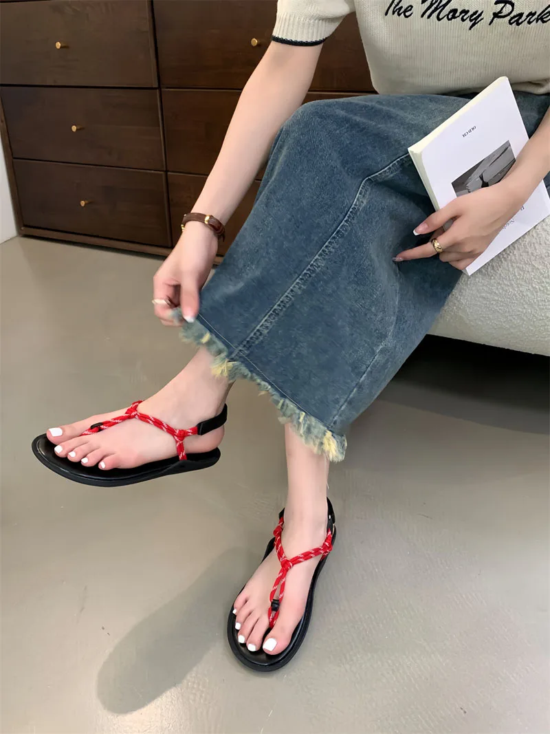 LBSFY - Red Flat Sandals Brown Flip Flops Women Plait Rope Summer Shoes Casual Ladies Flats Shoes Black Sandalias Mujer 2024