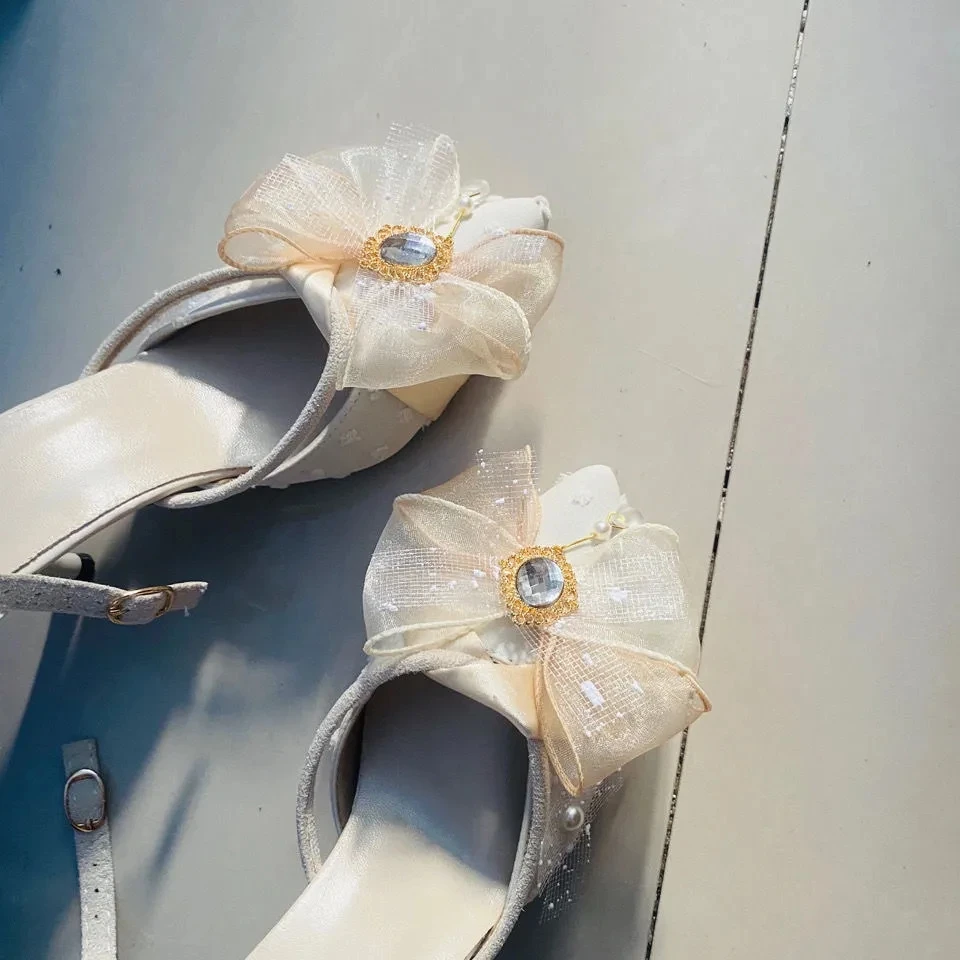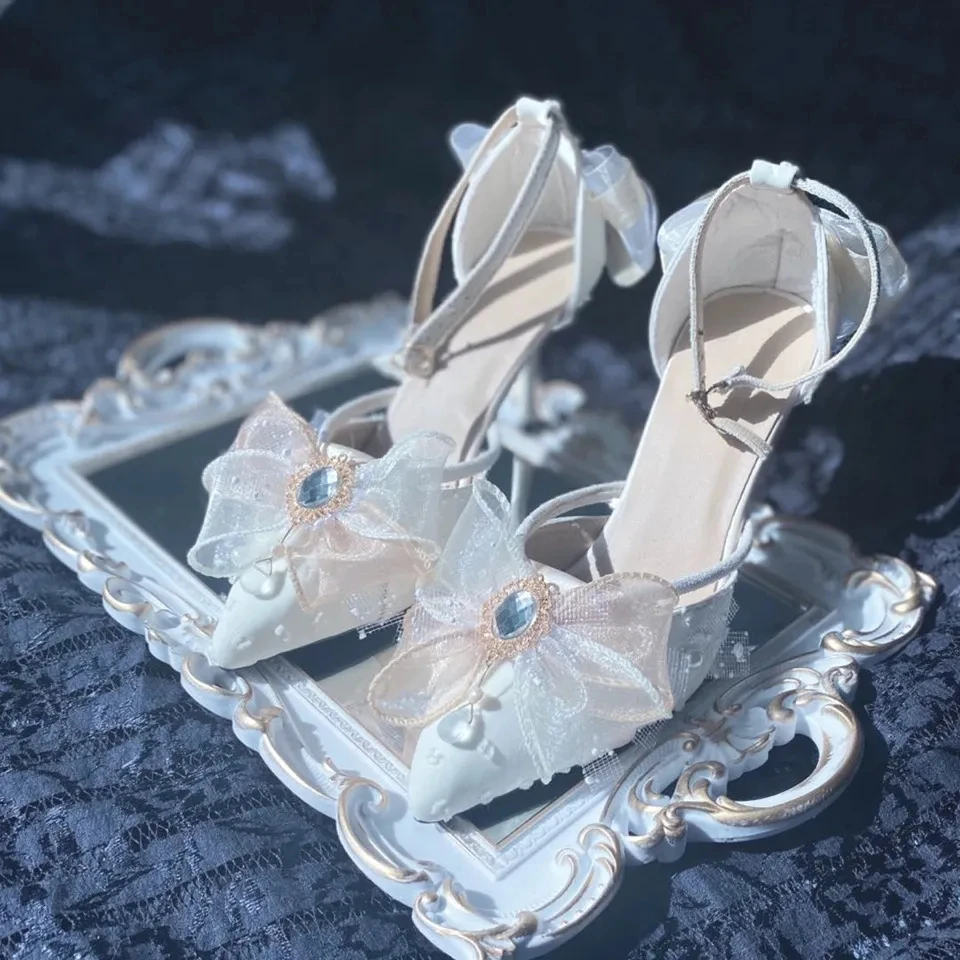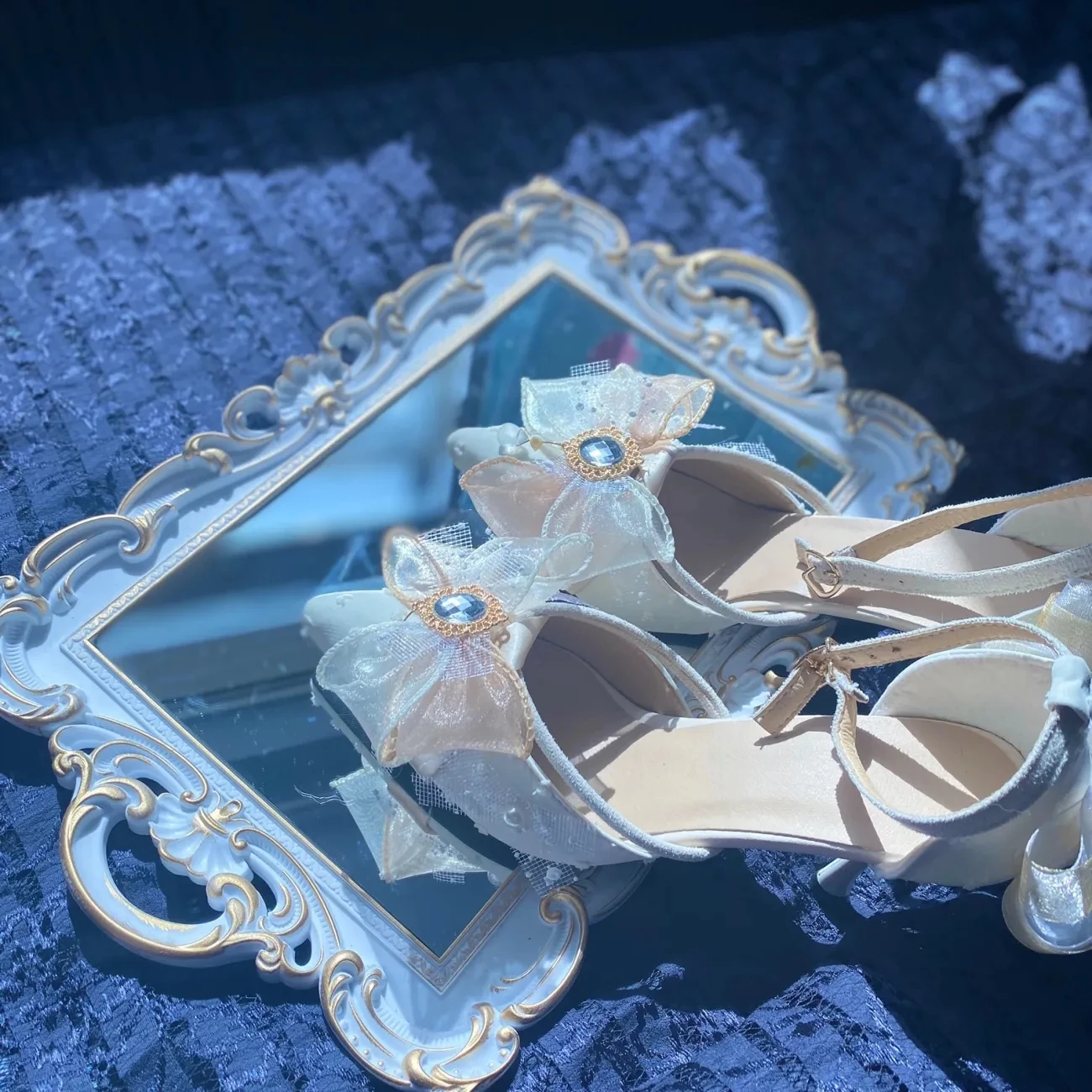 LBSFY - Retro Romantic Palace Style Cosplay Elegant Flower Wedding Girl Tea Party Gorgeous Gem Pearl Bow Lace 8cm High Heeled Shoes