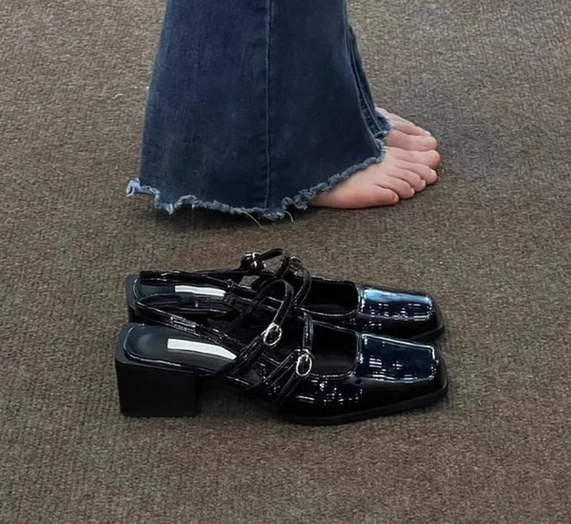 LBSFY - Retro Style Summer Thick Heel Women Sandals Fashion Square Toe Singbacks Shoes Ladies Elegant Party Dress Sandalias