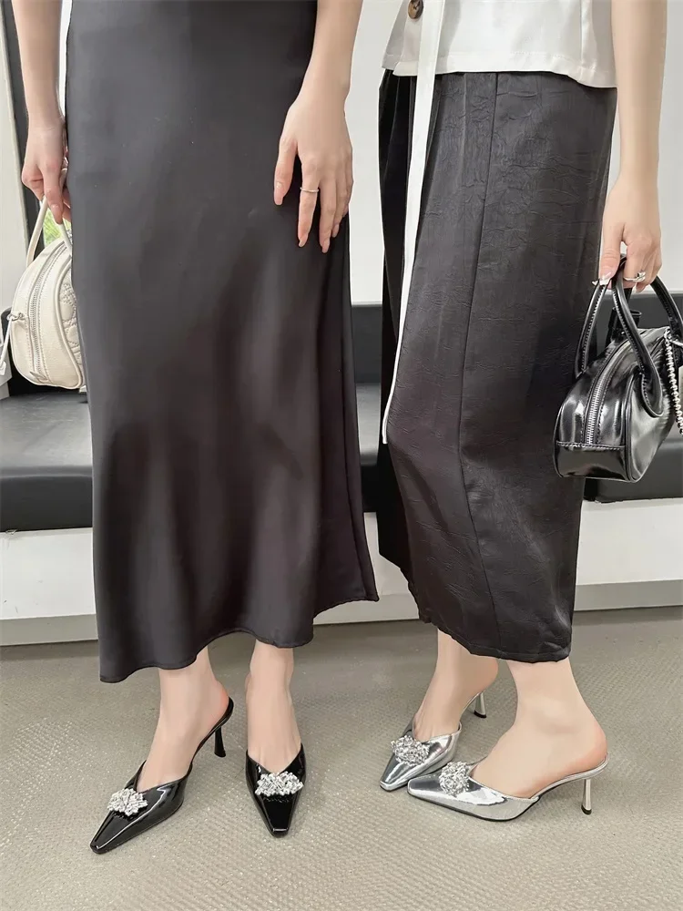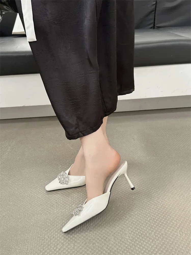 LBSFY -Rhinestone Pointed Toe Women Slippers Mule Shoes Elegant Spring Summer High Heels Zapatos De Mujer