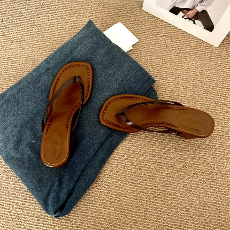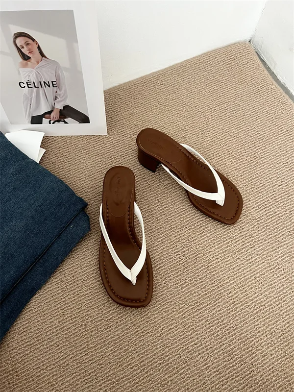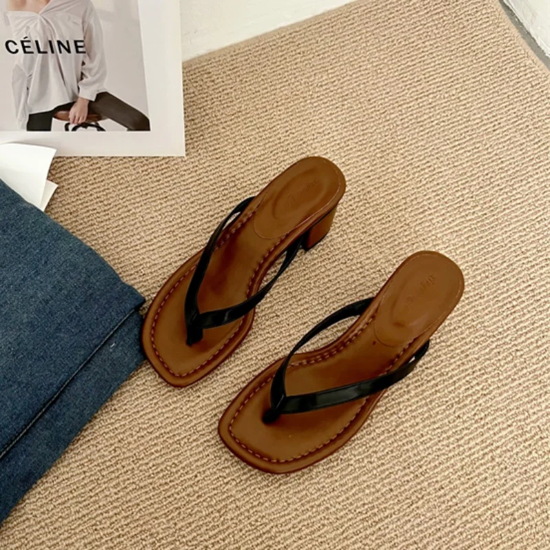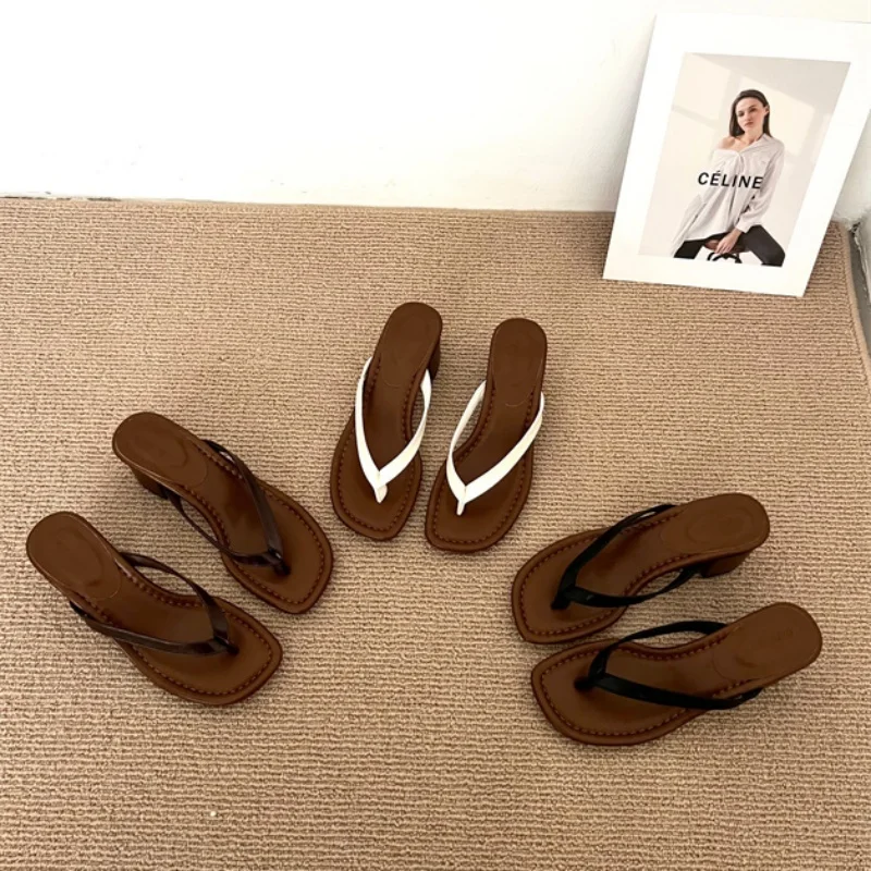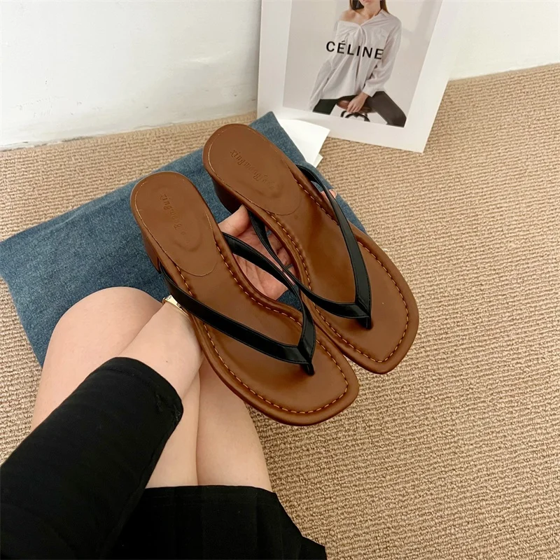 LBSFY -Round Heels Women Slippers Shoes Vacation Flip flops Summer Beach Female Fashion Shallow Ladies Heels Slides Slippers S
