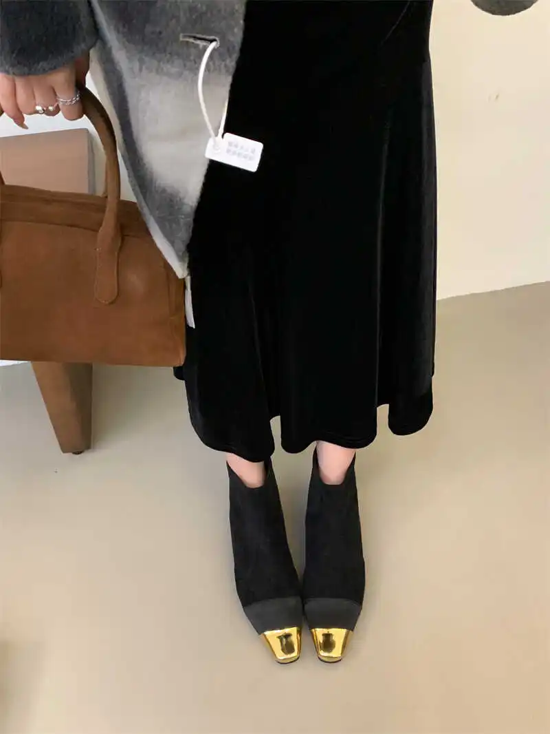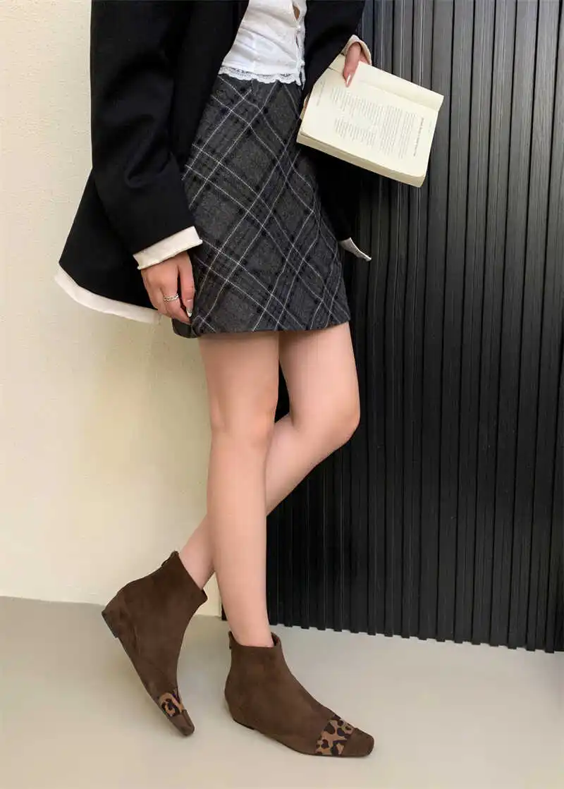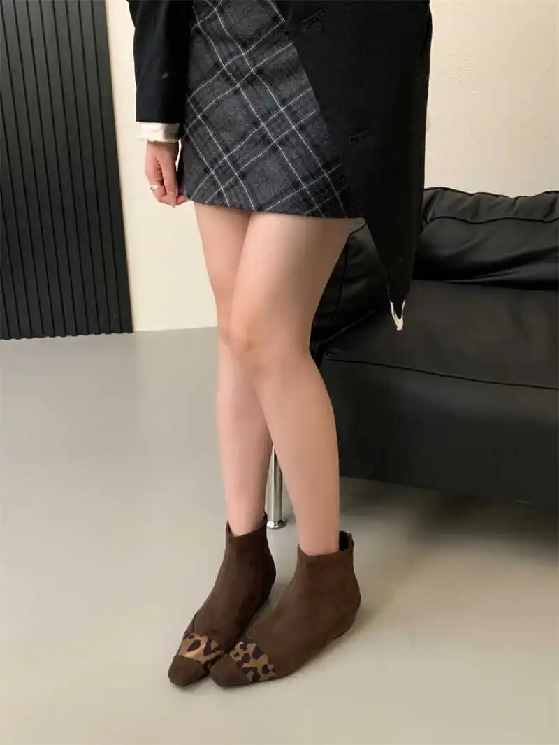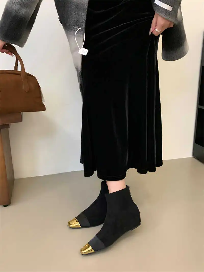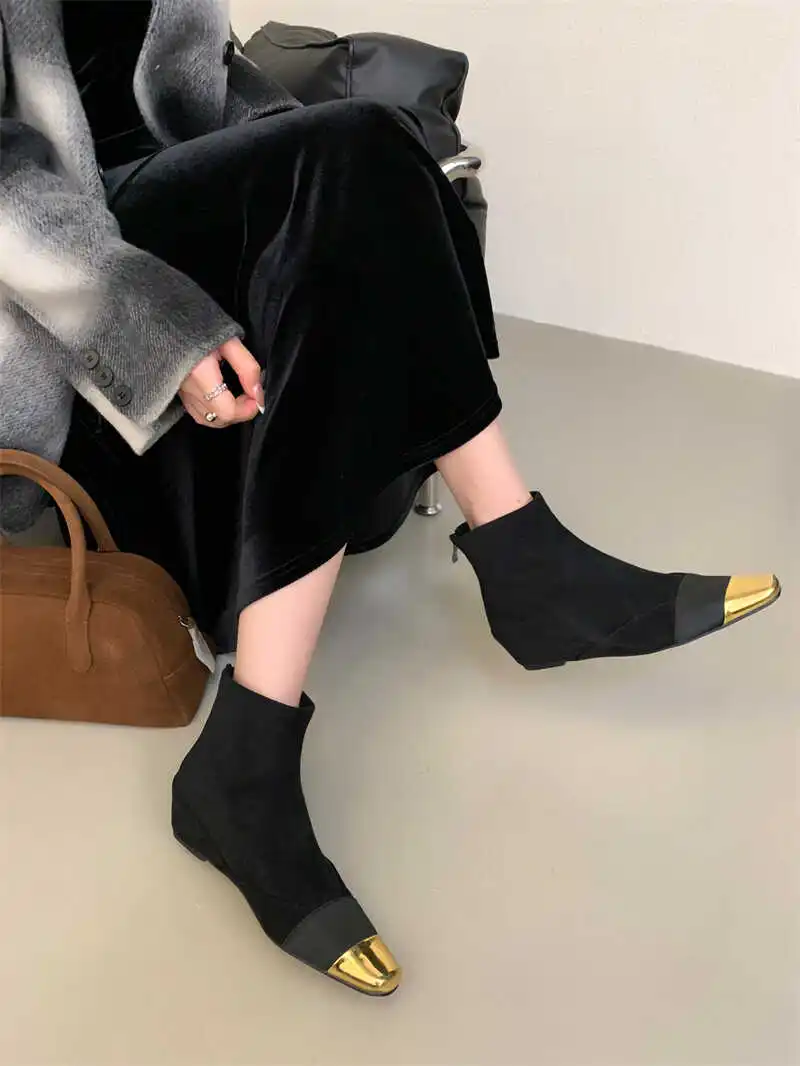 LBSFY - Round Toe Women Ankle Boots Flock Sock Botas Wedge Mid Heels Fashion Short Boots Side Zipper Black Brown Khaki Dress Sh