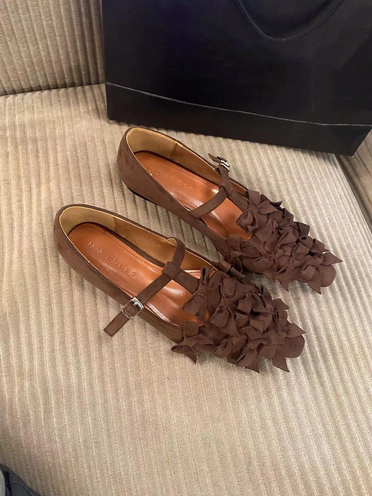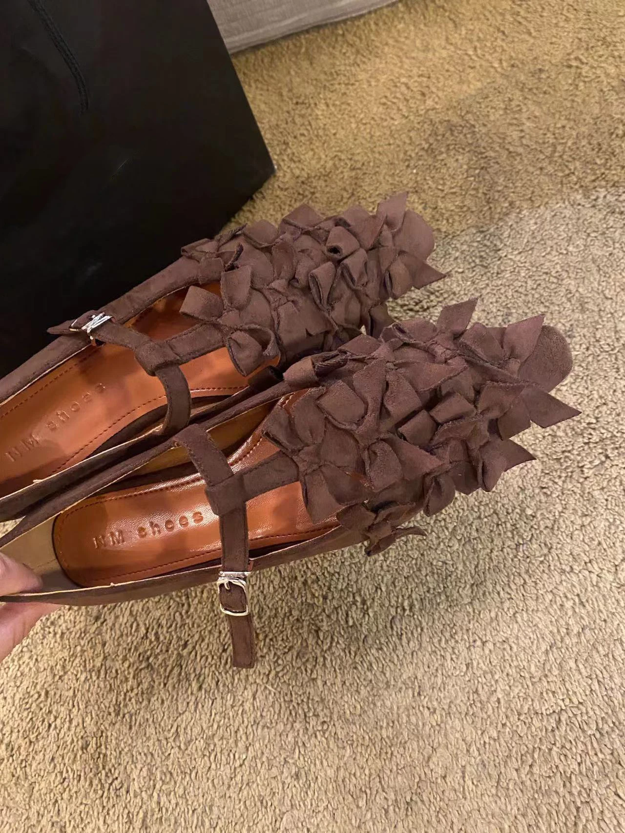 LBSFY - Round Toe Women Loafers Flats Black Brown Fashion Outside Fashion Belt Buckle Party Pumps Casual Mules Size 35-39 Flats Sldies