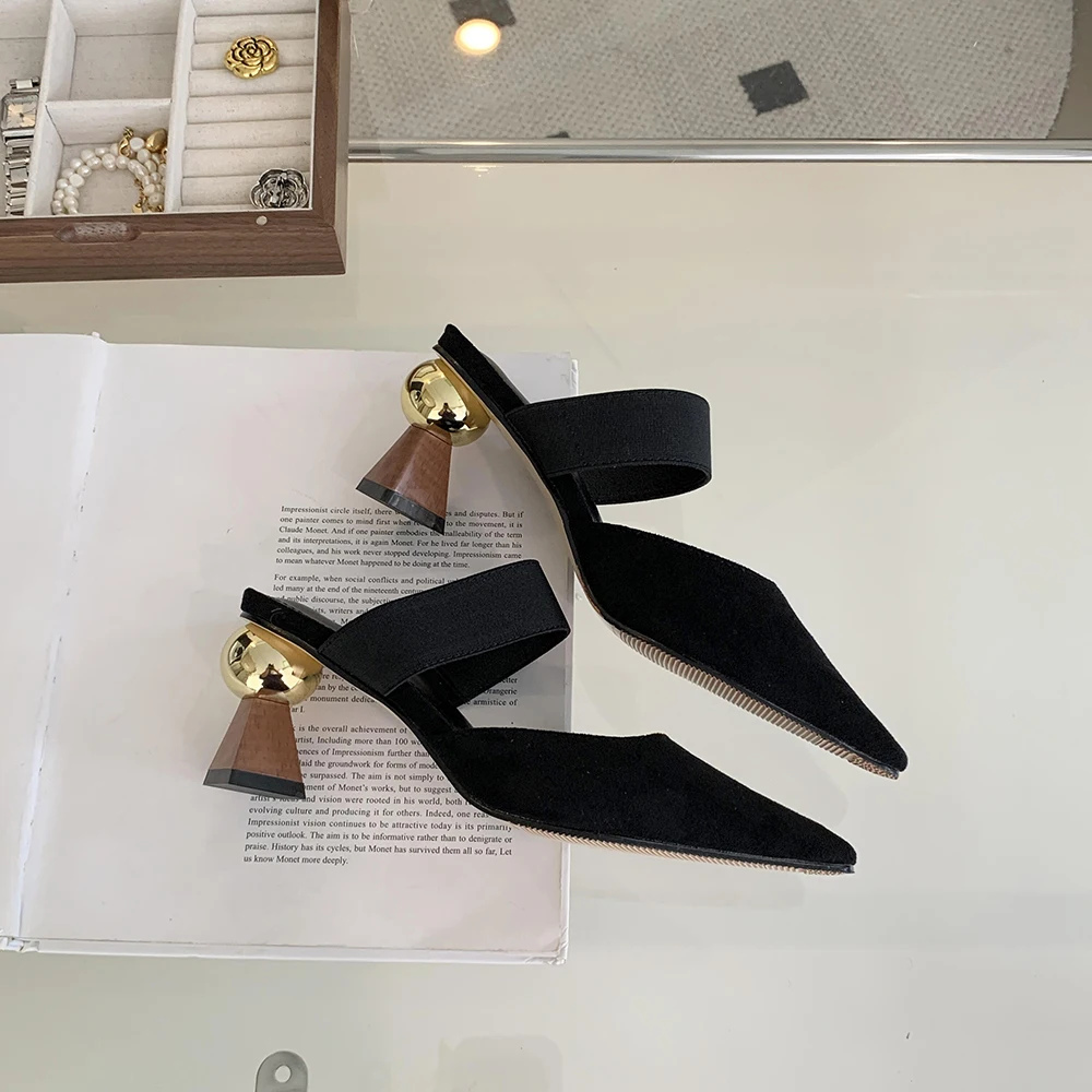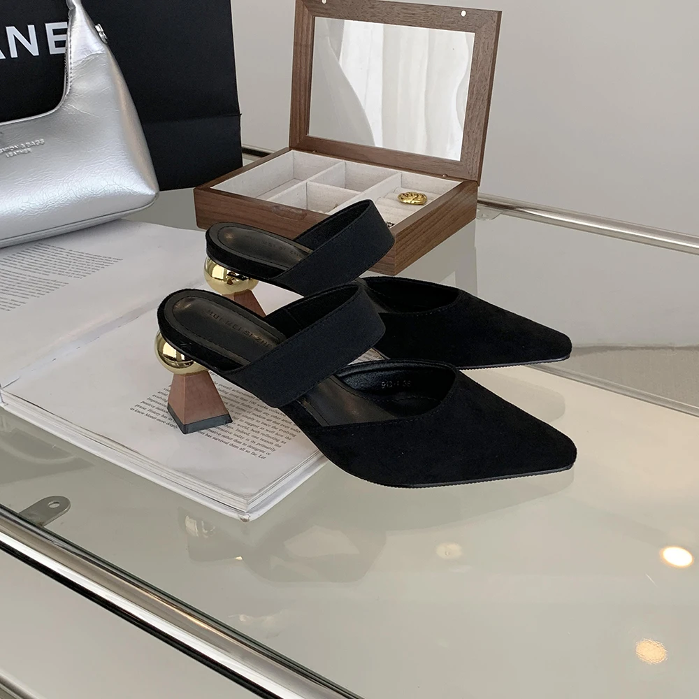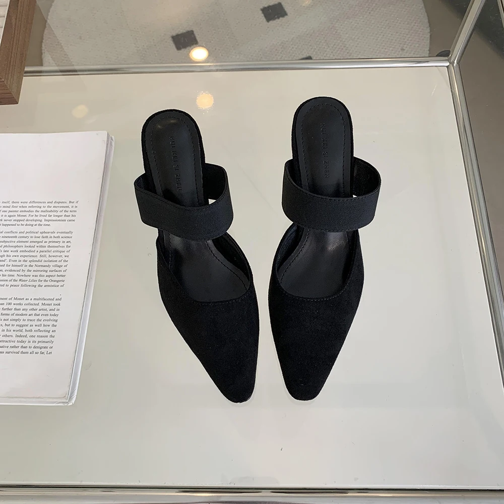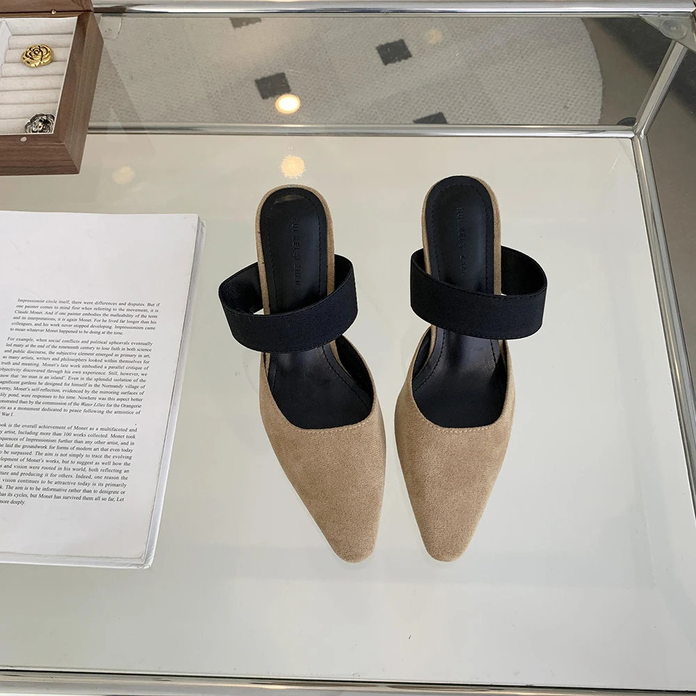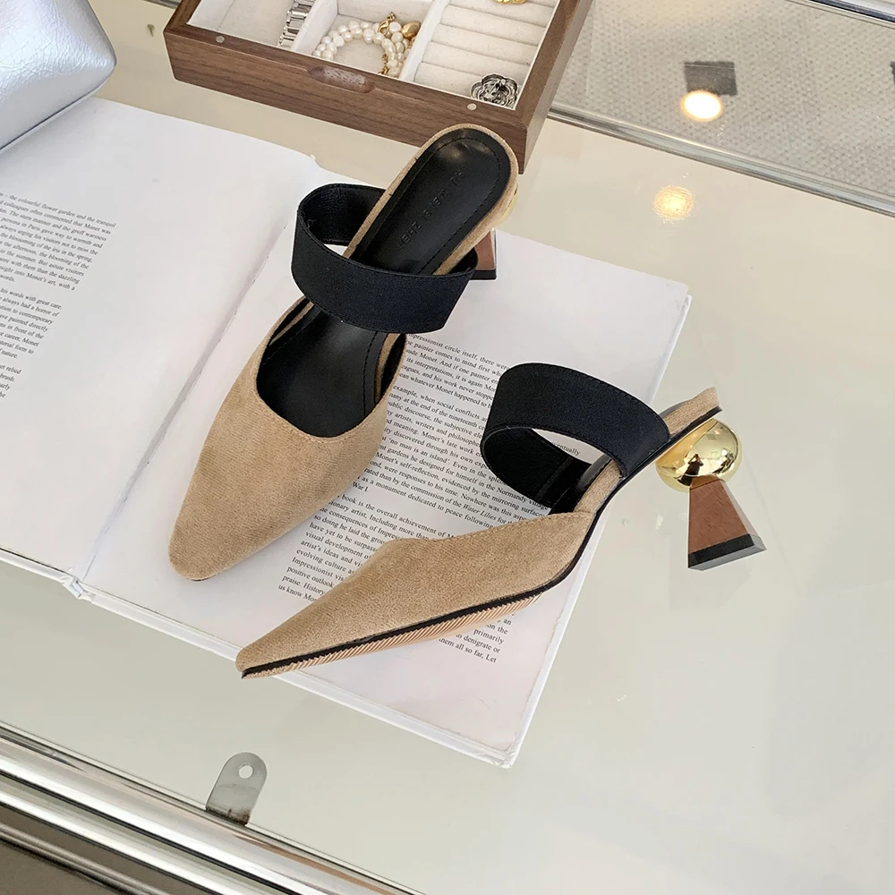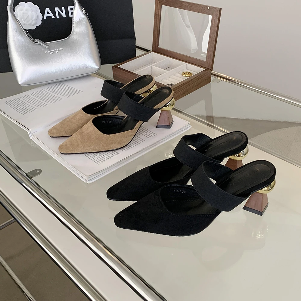 LBSFY - Round Toe Women Loafers Slides Slippers Black Beige Dress Shoes Sexy Party Pumps Slip On Summer Outside Mules High Heels 35-39