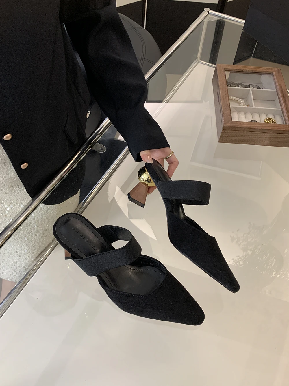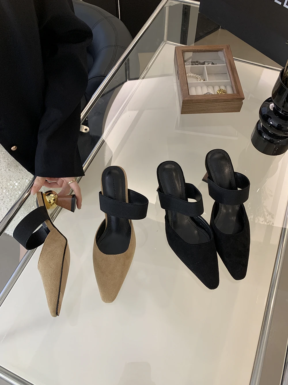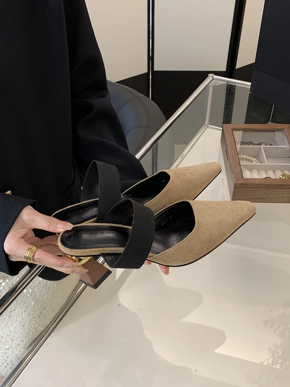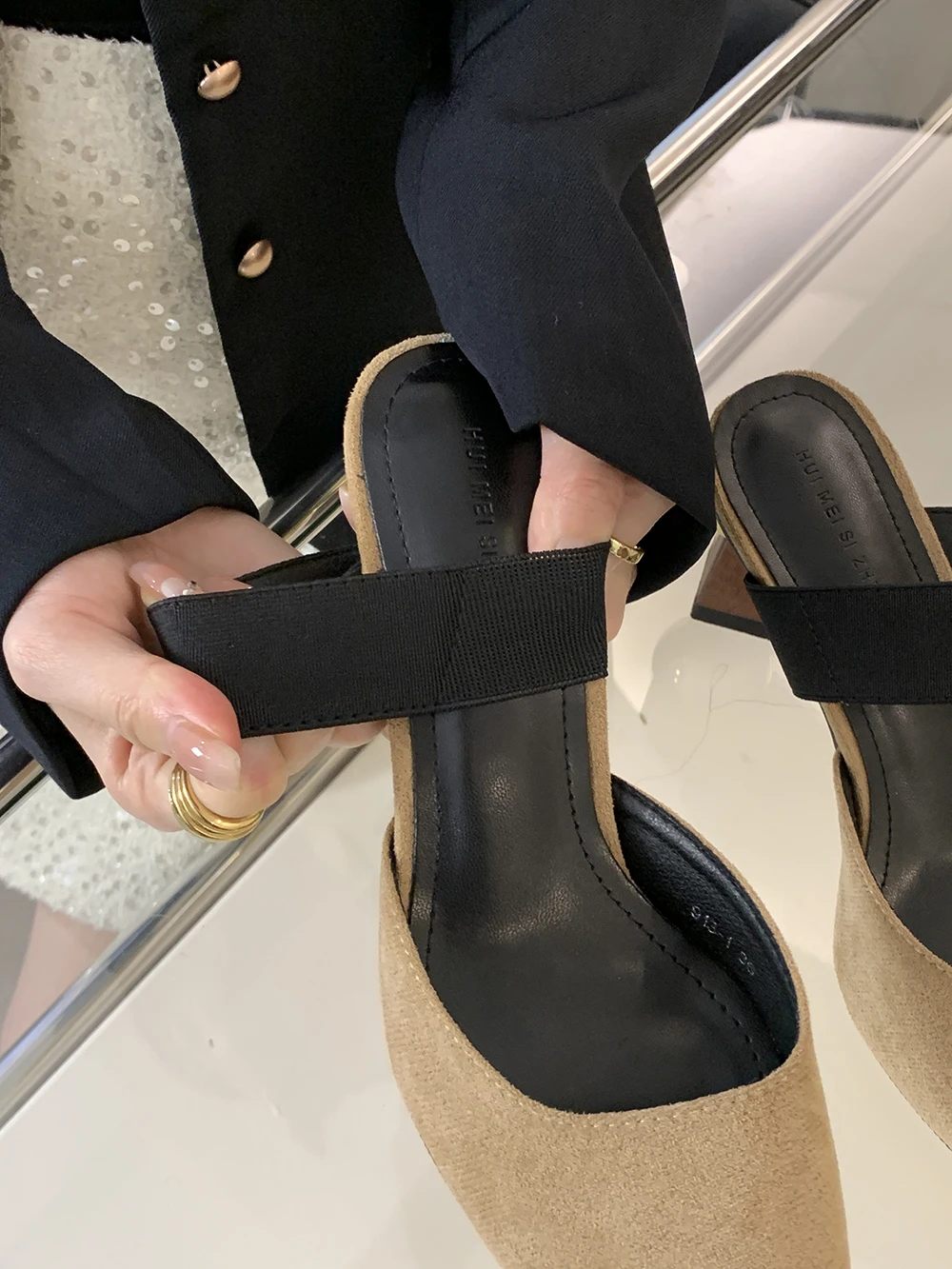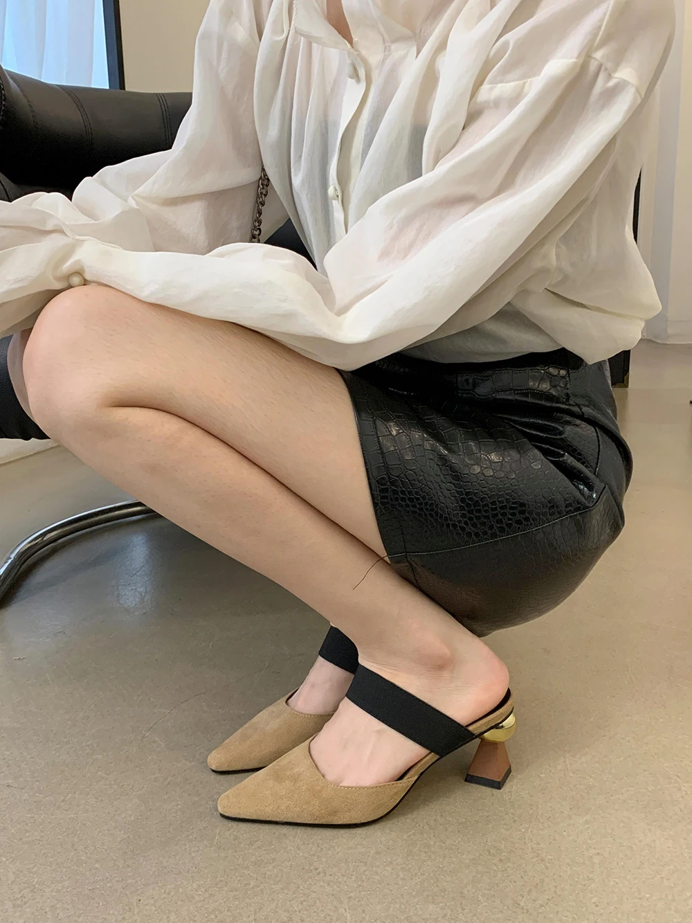 LBSFY - Round Toe Women Loafers Slides Slippers Black Beige Dress Shoes Sexy Party Pumps Slip On Summer Outside Mules High Heels 35-39