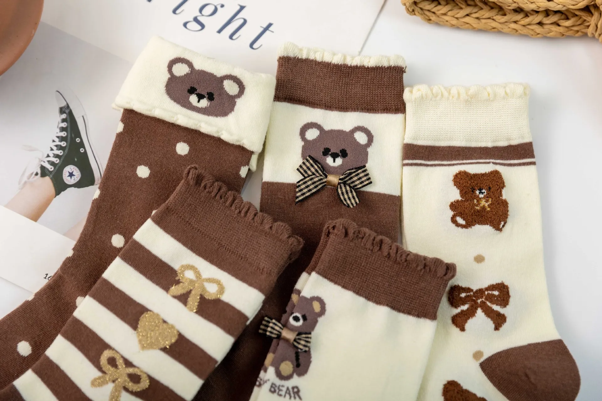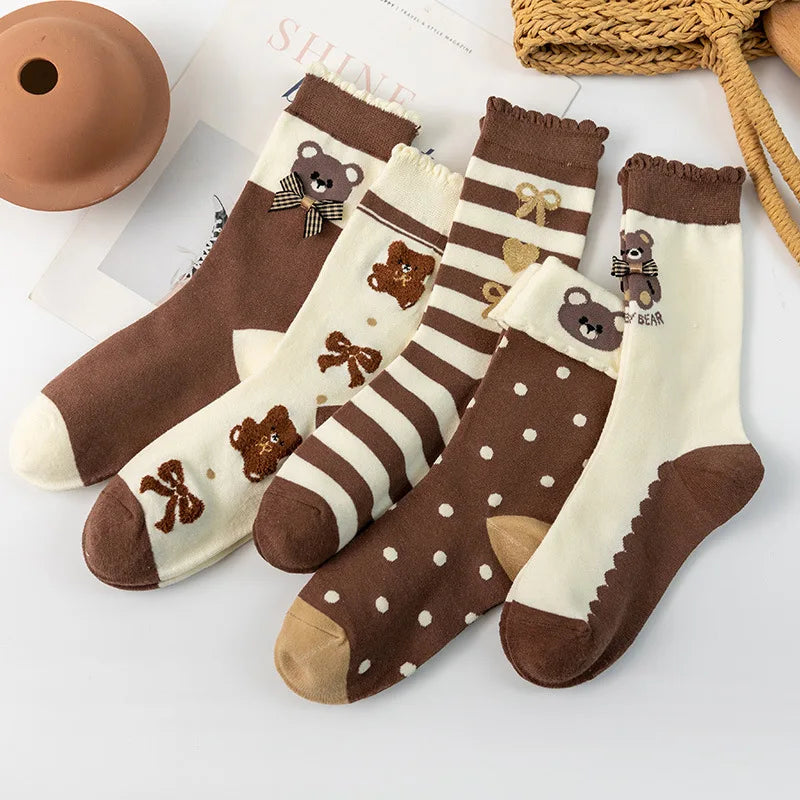 Lbsfy 5 Pairs Women Sock 1 Set Cotton Lady Graffiti Stars Print Cute Kawaii Harajuku Streetwear Socks Pack Calcetines Mujer Girls Gift