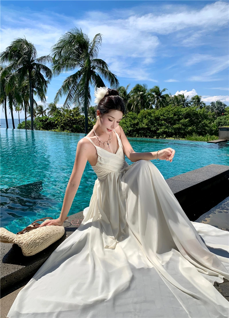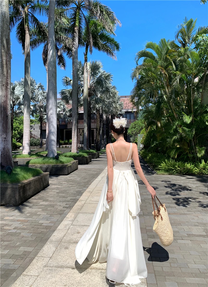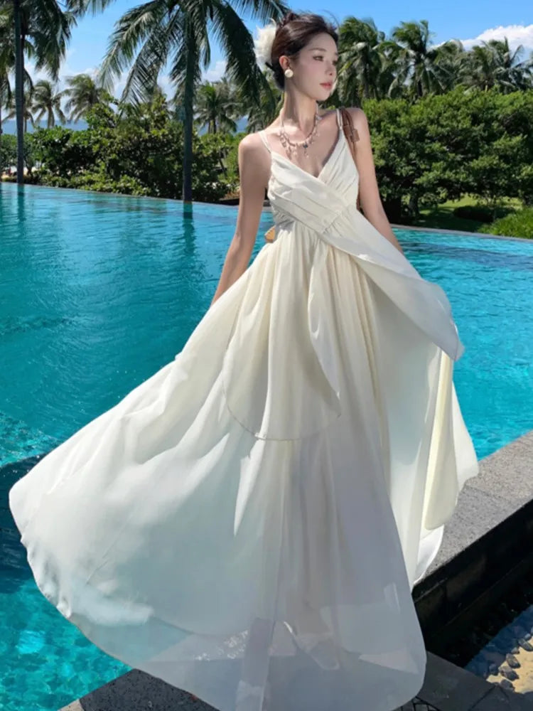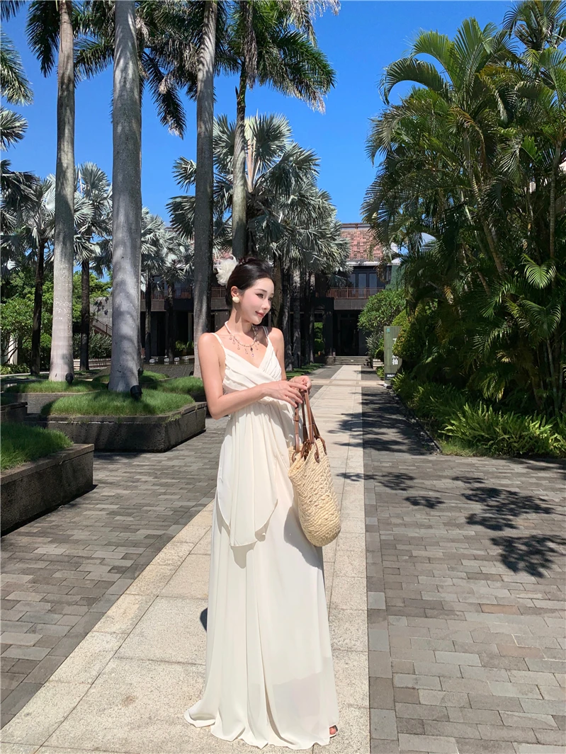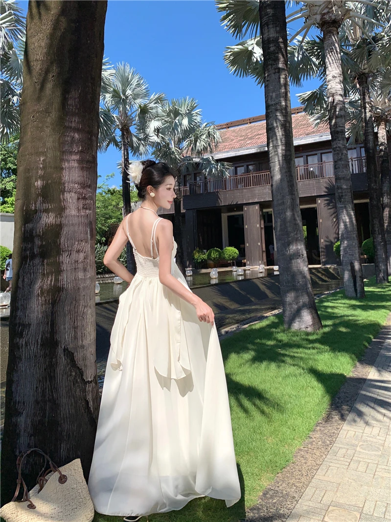 LBSFY -Sexy Backless Elegant Spaghetti Strap Sling Women's Dresses Summer Holiday Women Retro Simple Daily V-Neck Vacation Beach Outfit