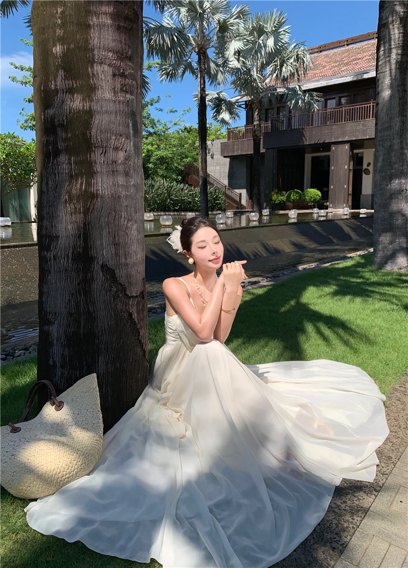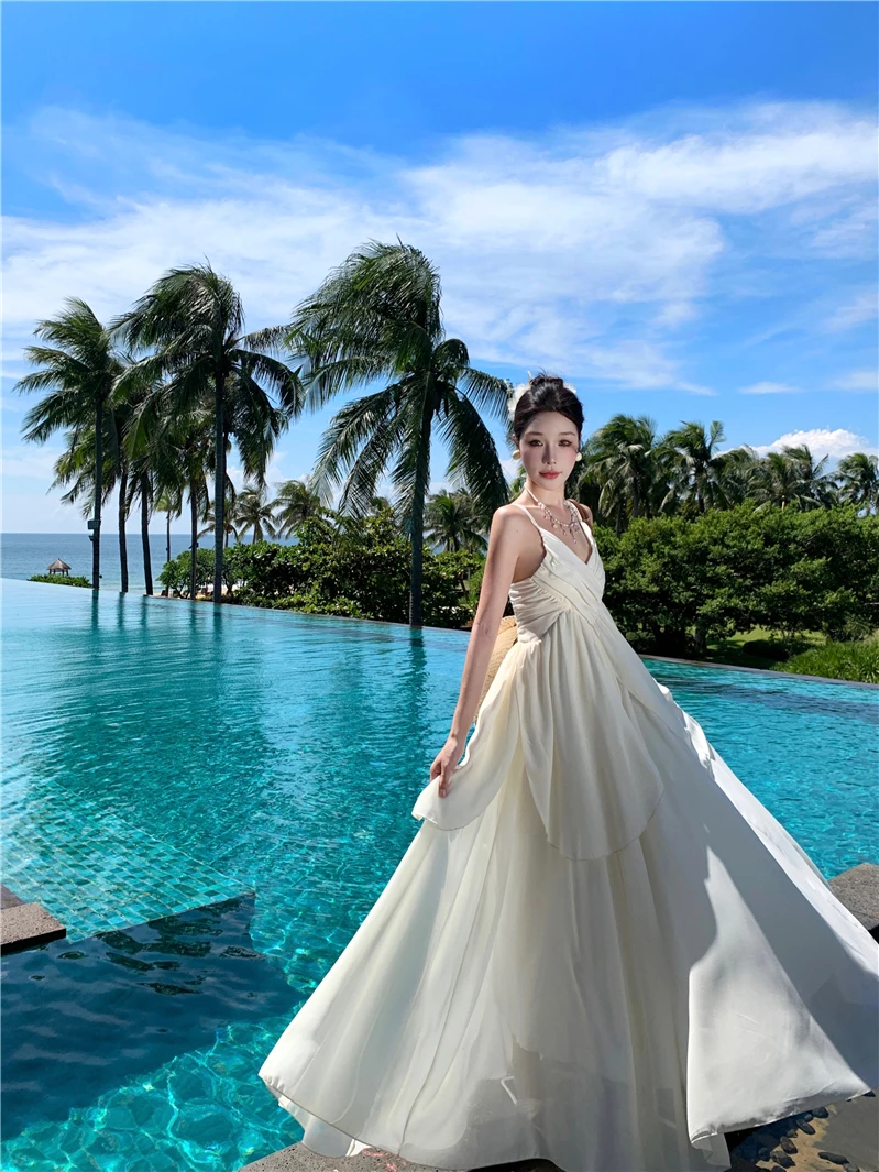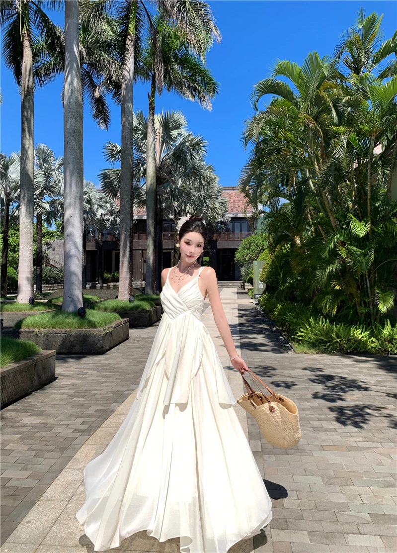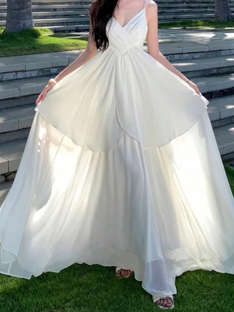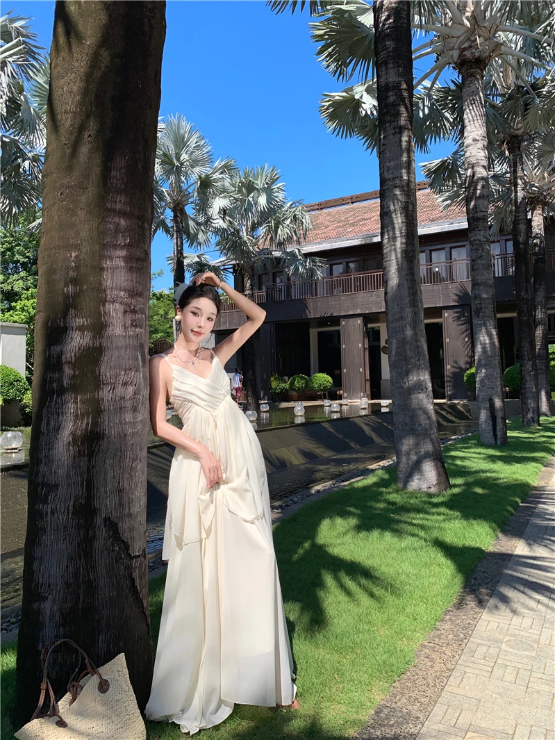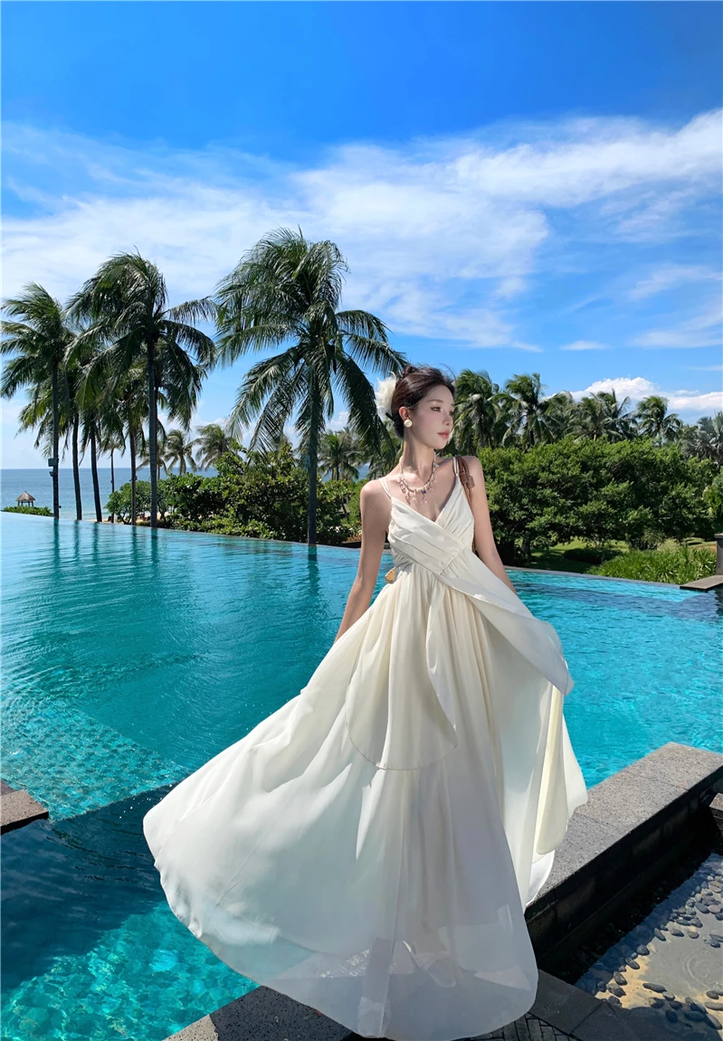 LBSFY -Sexy Backless Elegant Spaghetti Strap Sling Women's Dresses Summer Holiday Women Retro Simple Daily V-Neck Vacation Beach Outfit