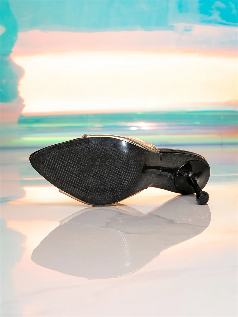 LBSFY - Sexy Pointed Toe Golded High Heels Slippers Women Cozy Patent Leather Summer Party Banquet Shoes Ladies Sandalias De Mujer