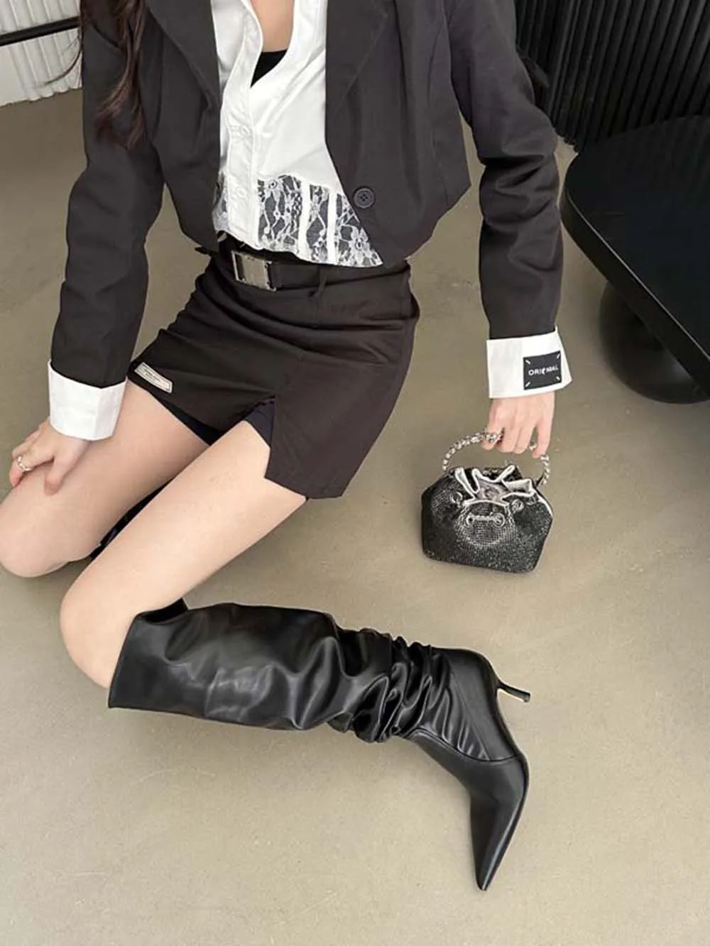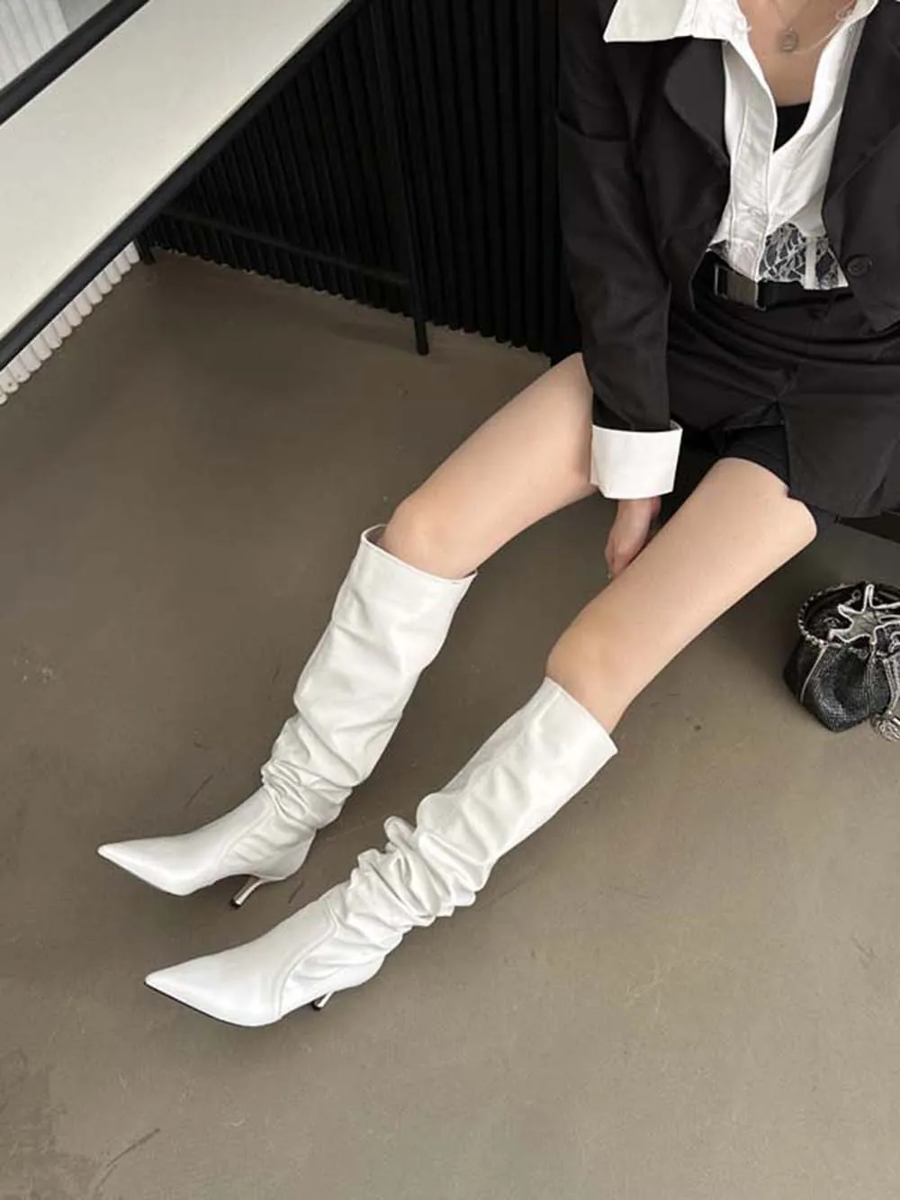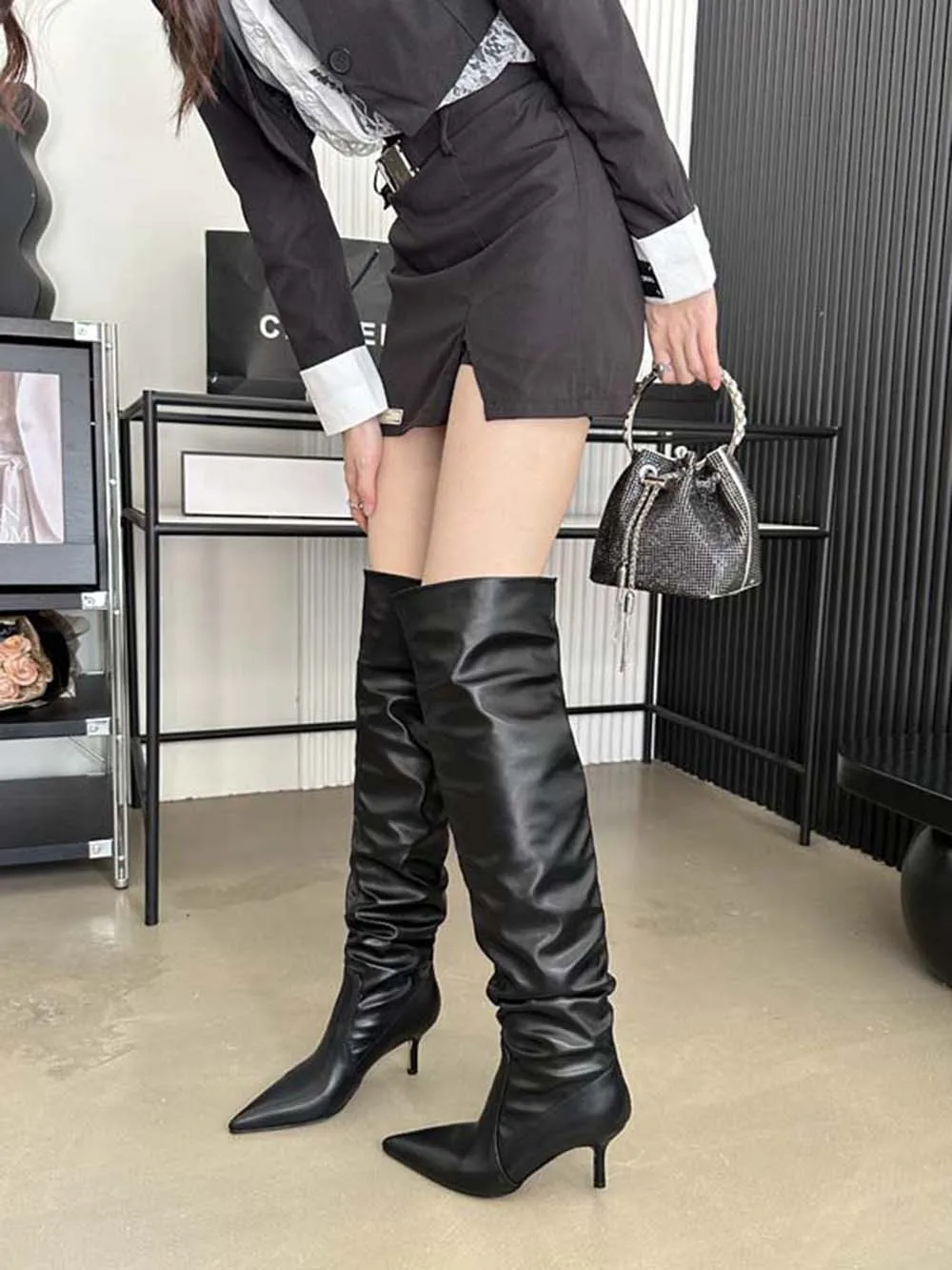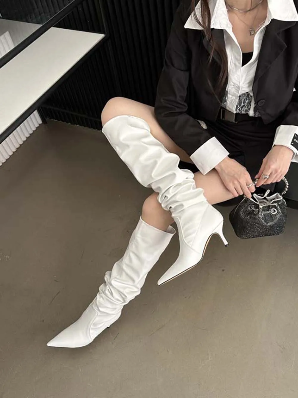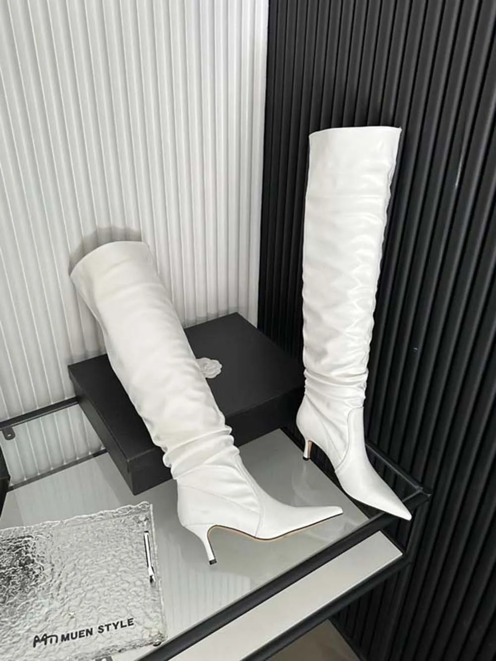 LBSFY - Sexy Women Over The Knee Boots Chelsea Booties Pointed Toe Blue Black White Denim Cloth Winter Dress Shoes Slip On Autumn Boots