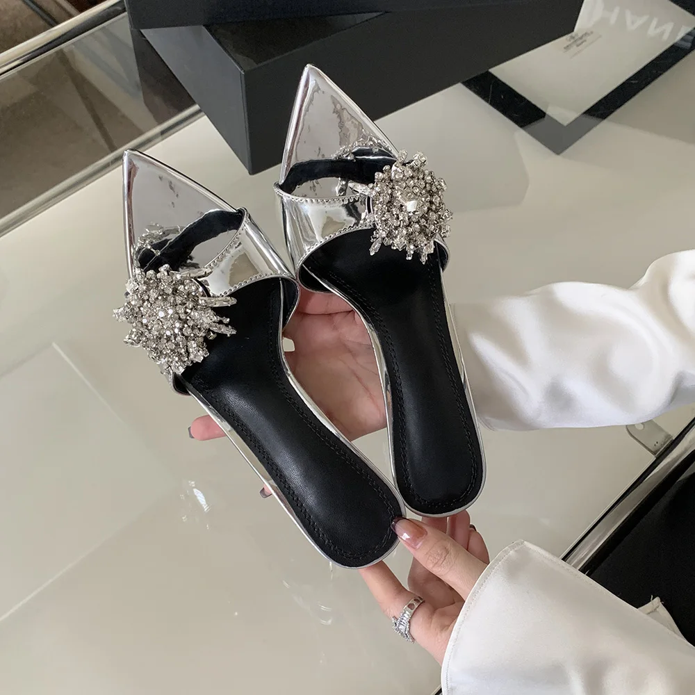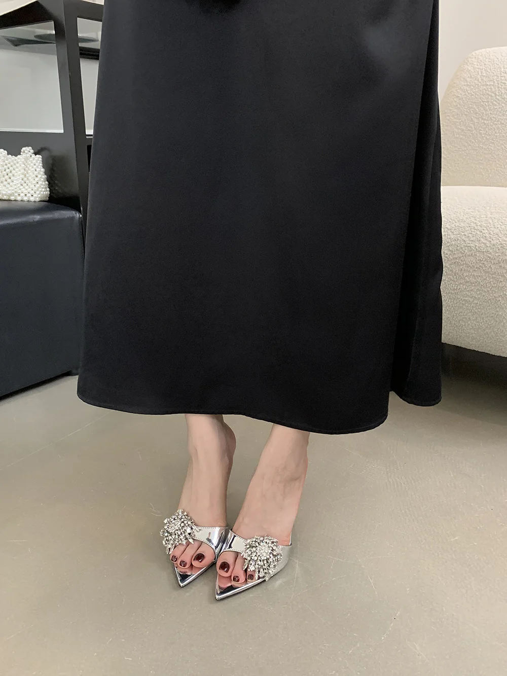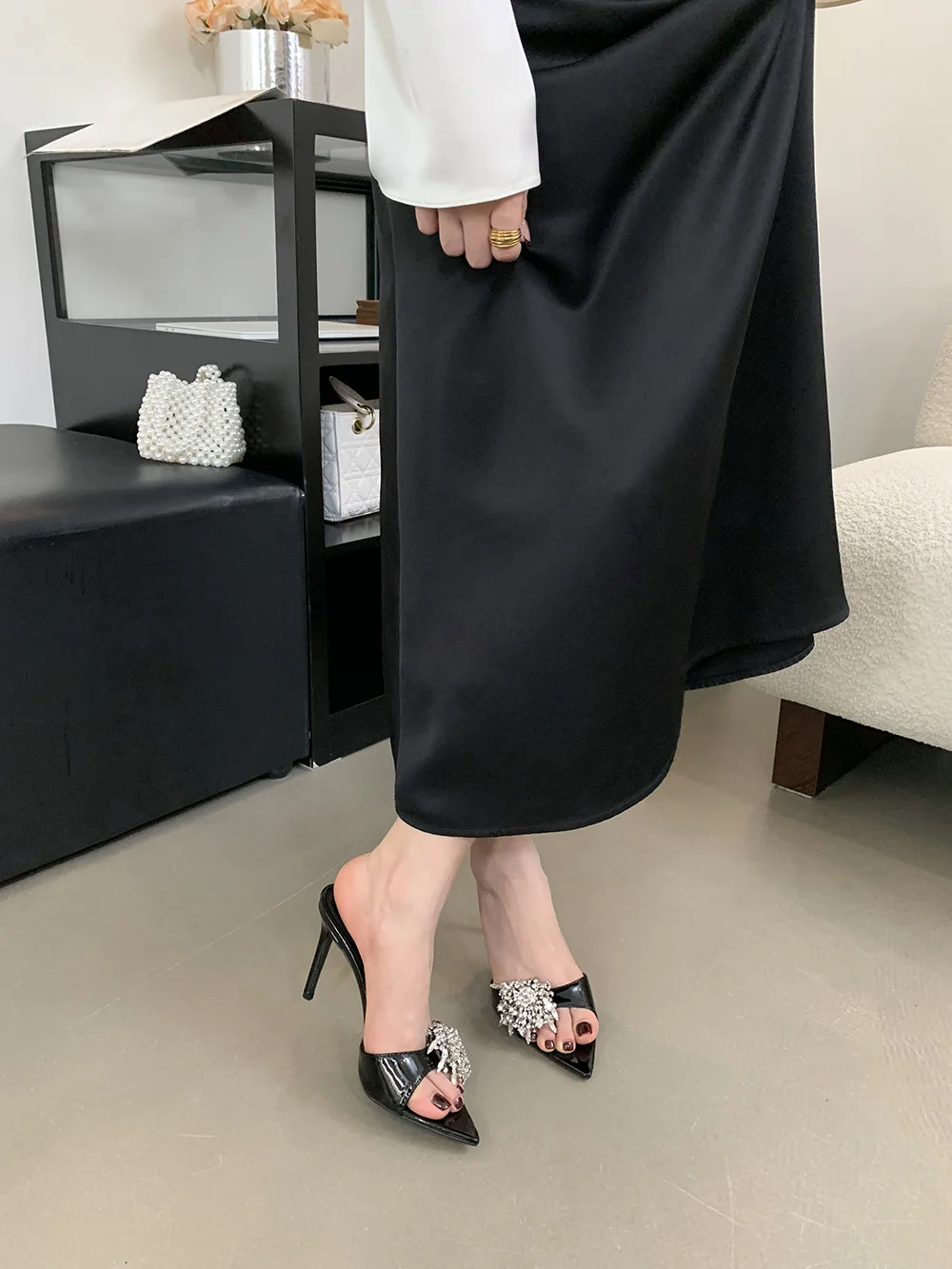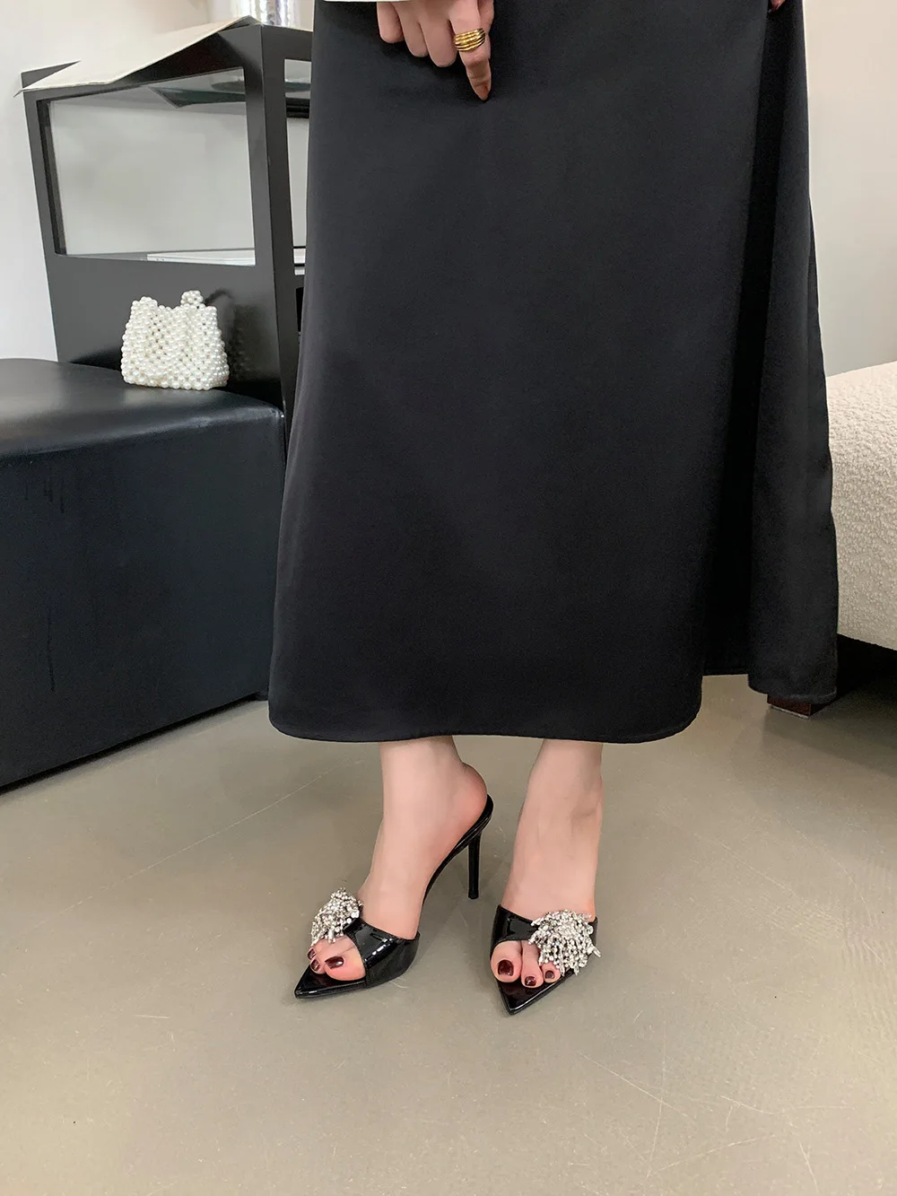 LBSFY - Sexy Women Slides Slippers Summer Outside Thin High Heels Party Pumps Black Red Silver Fashion Rhinestone Crystal Design Sexy
