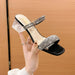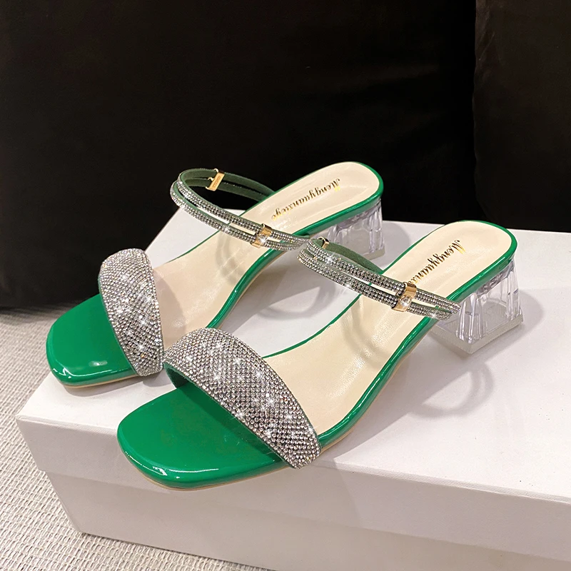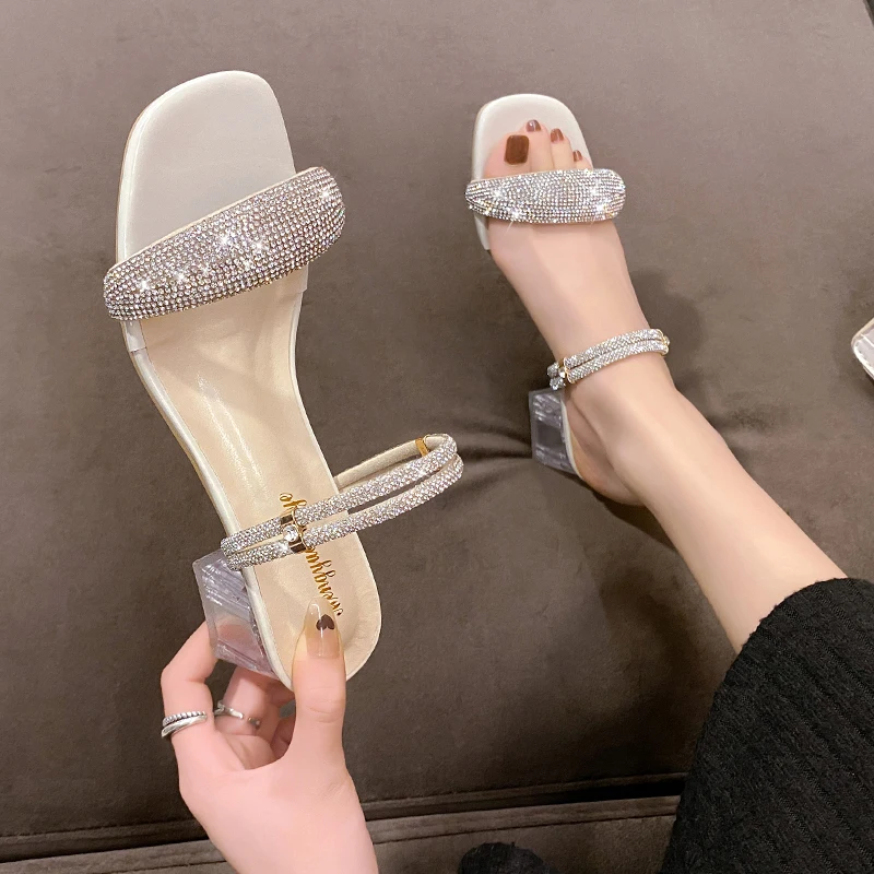 LBSFY -Shiny Gold Silver Women's Sandals Summer Crystal High Heels Party Shoes Woman Comfortable Thick Heel Slides Sandalias Mujer