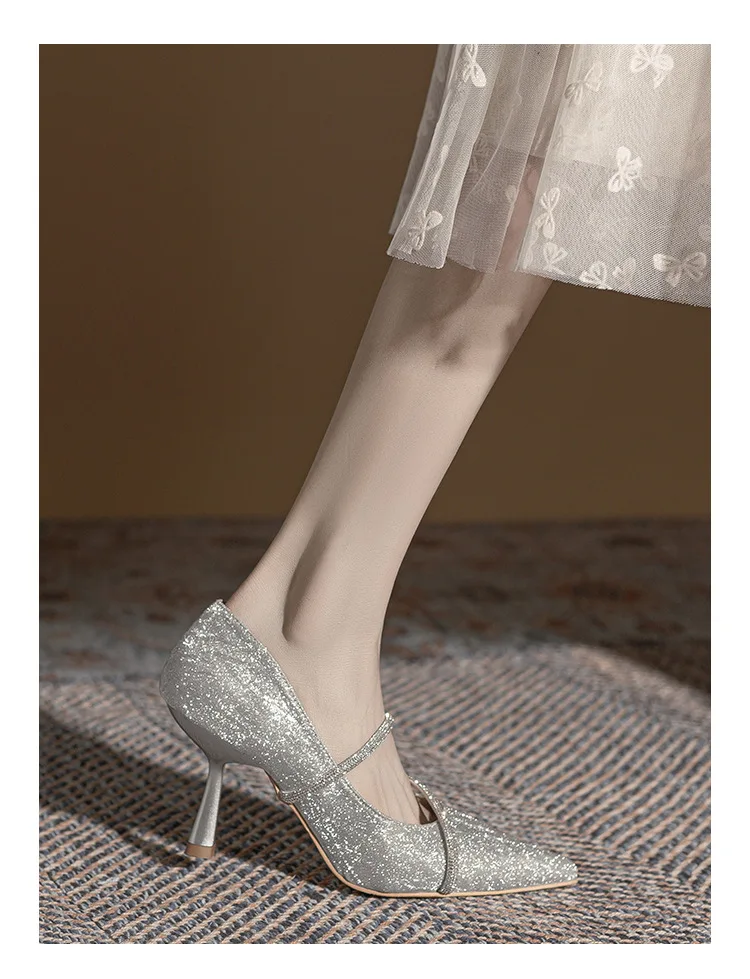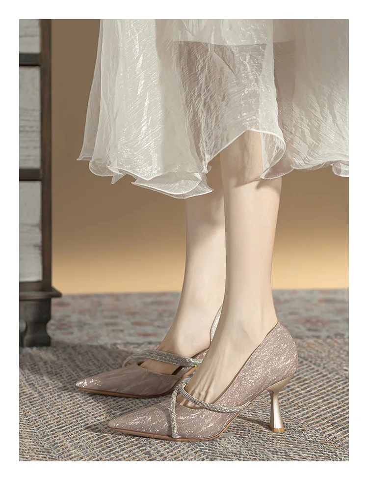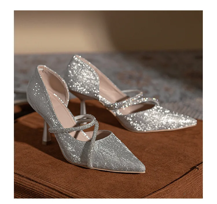 LBSFY - Shiny Pointed Toe High Heels Women Luxury Designer Sandals Pumps Woman Rhinestone Stiletto Heel Party Dresses Wedding Shoes