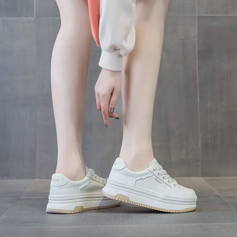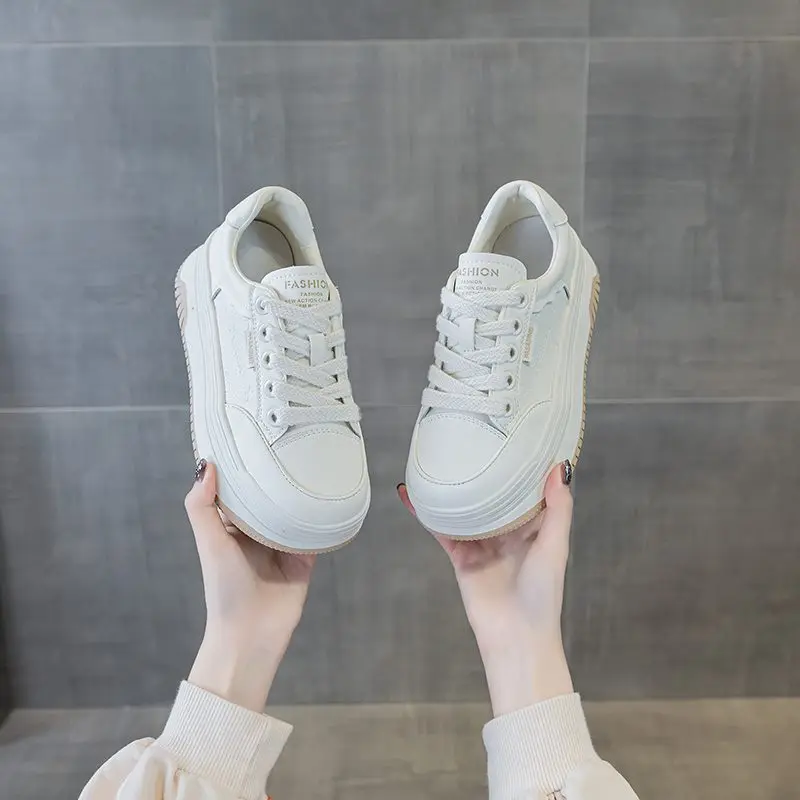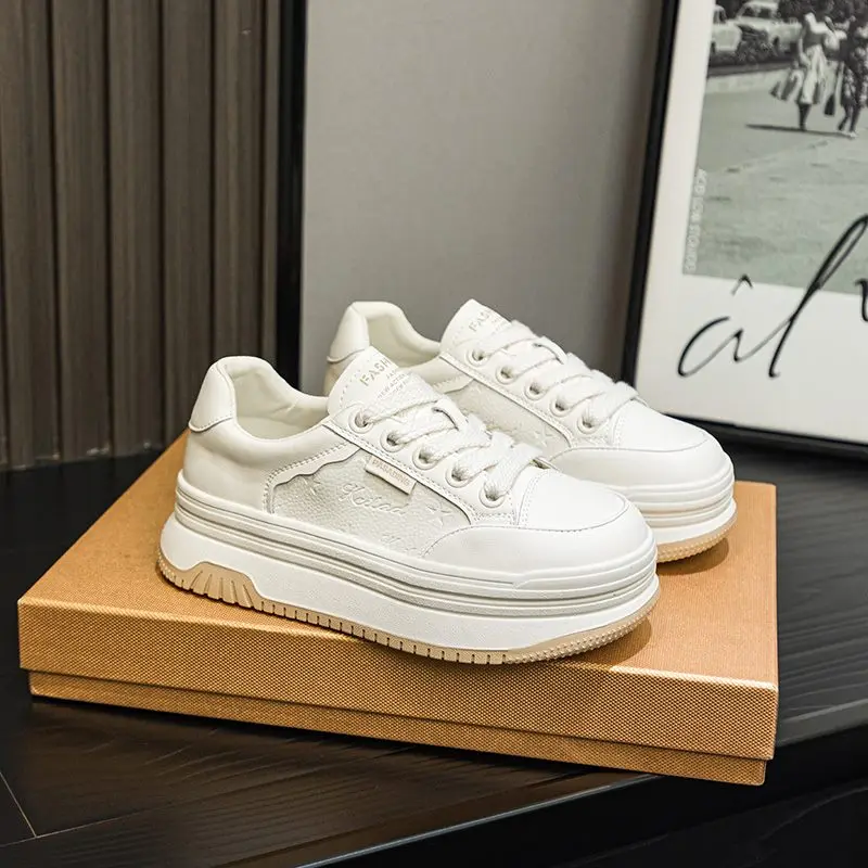 LBSFY - Shoes Woman Genuine Leather Shoes Women Sneakers Lace Up Platform Shoes Solid Chunky Spring Autumn Ladies Casual Shoes