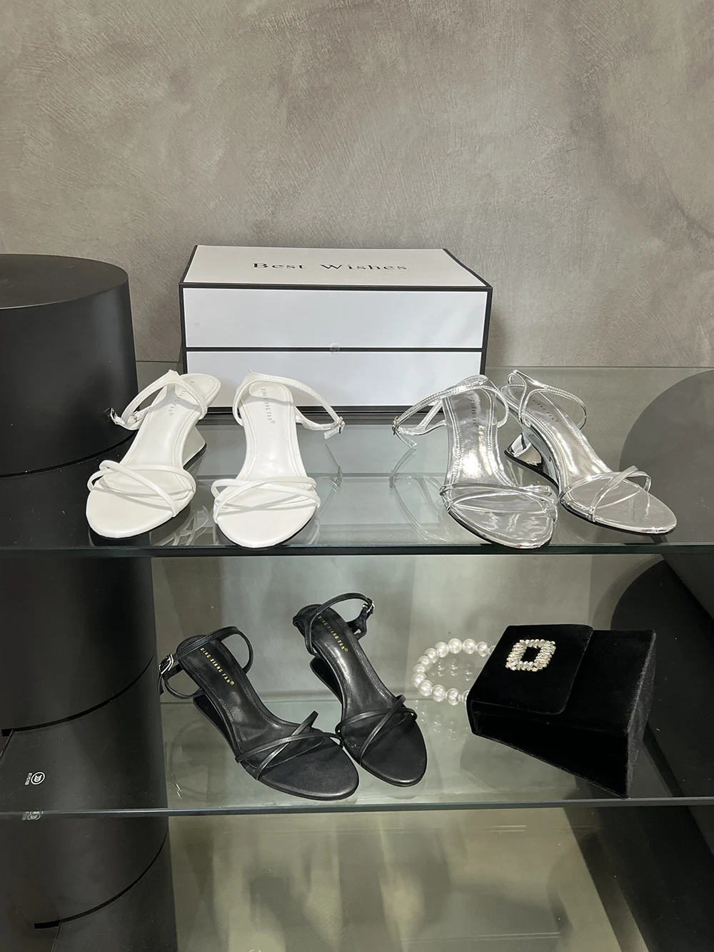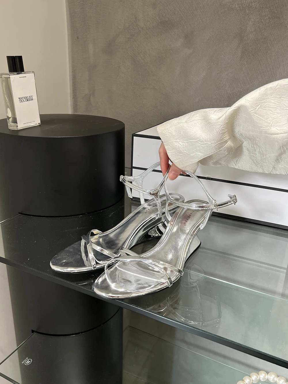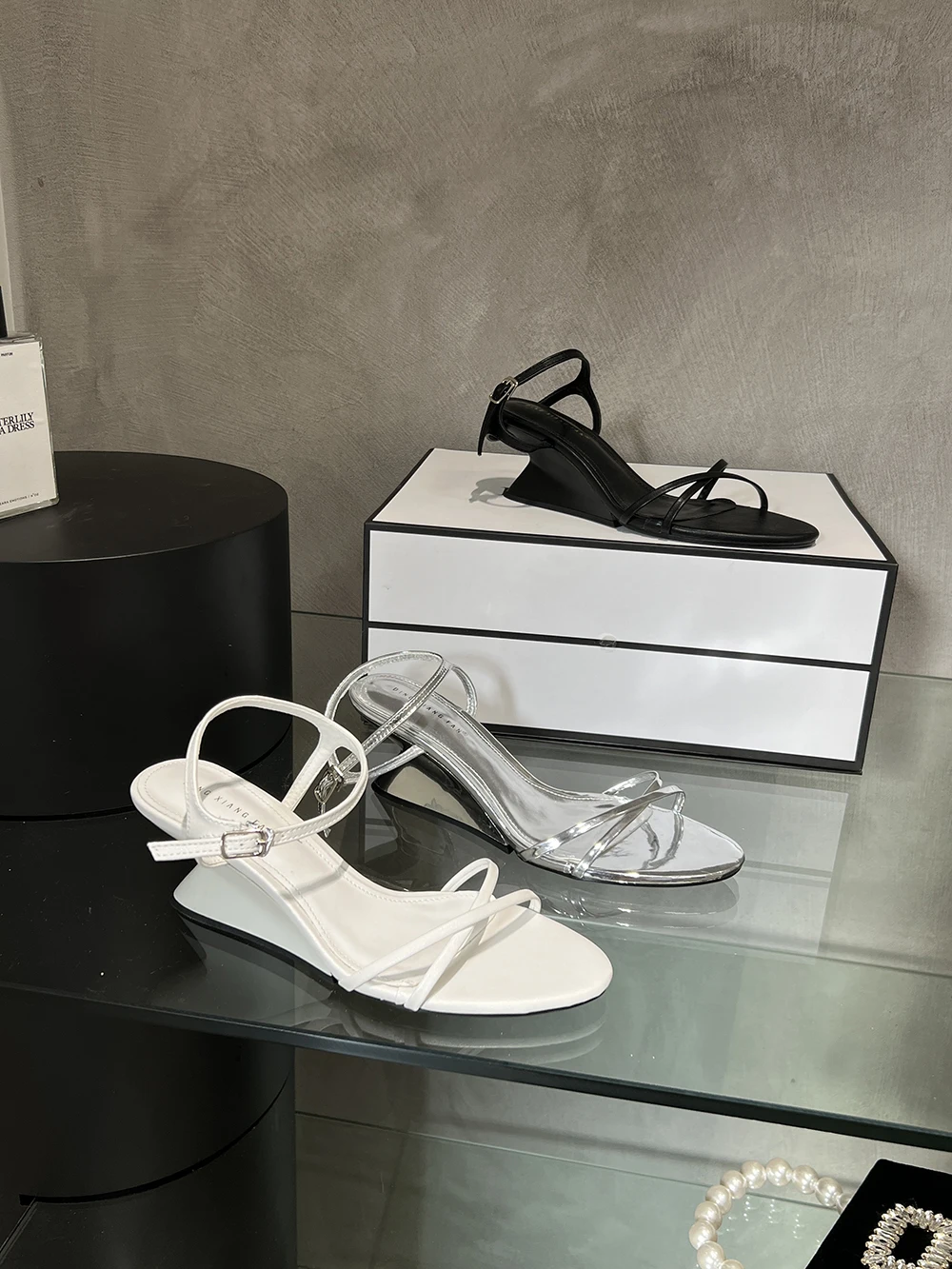 LBSFY - Silver Black White Women Sandals Open Toe Summer Dress Shoes Ankle Strap Party Pumps Wedge High Heels Slides Mules Shoes 35-40