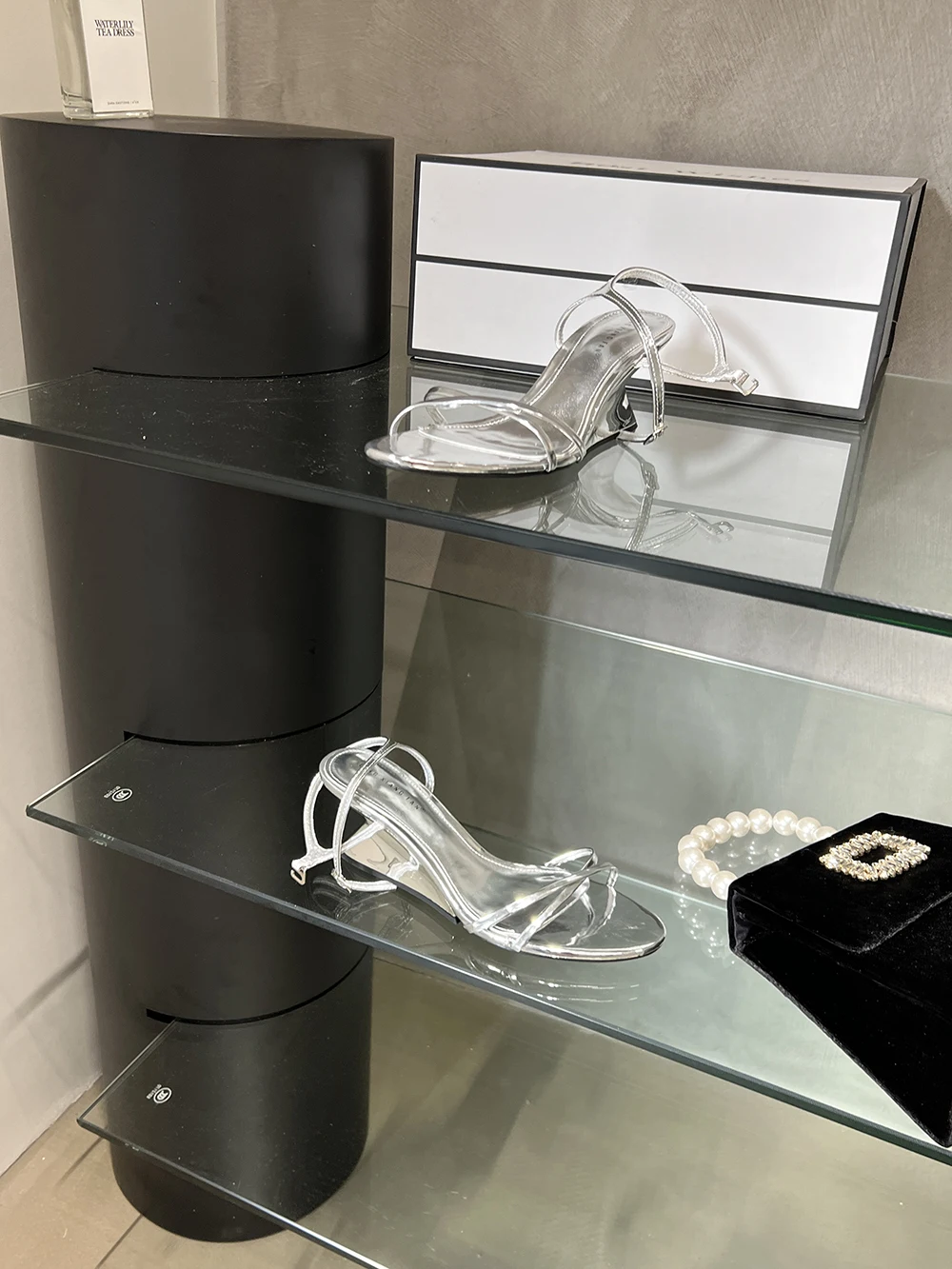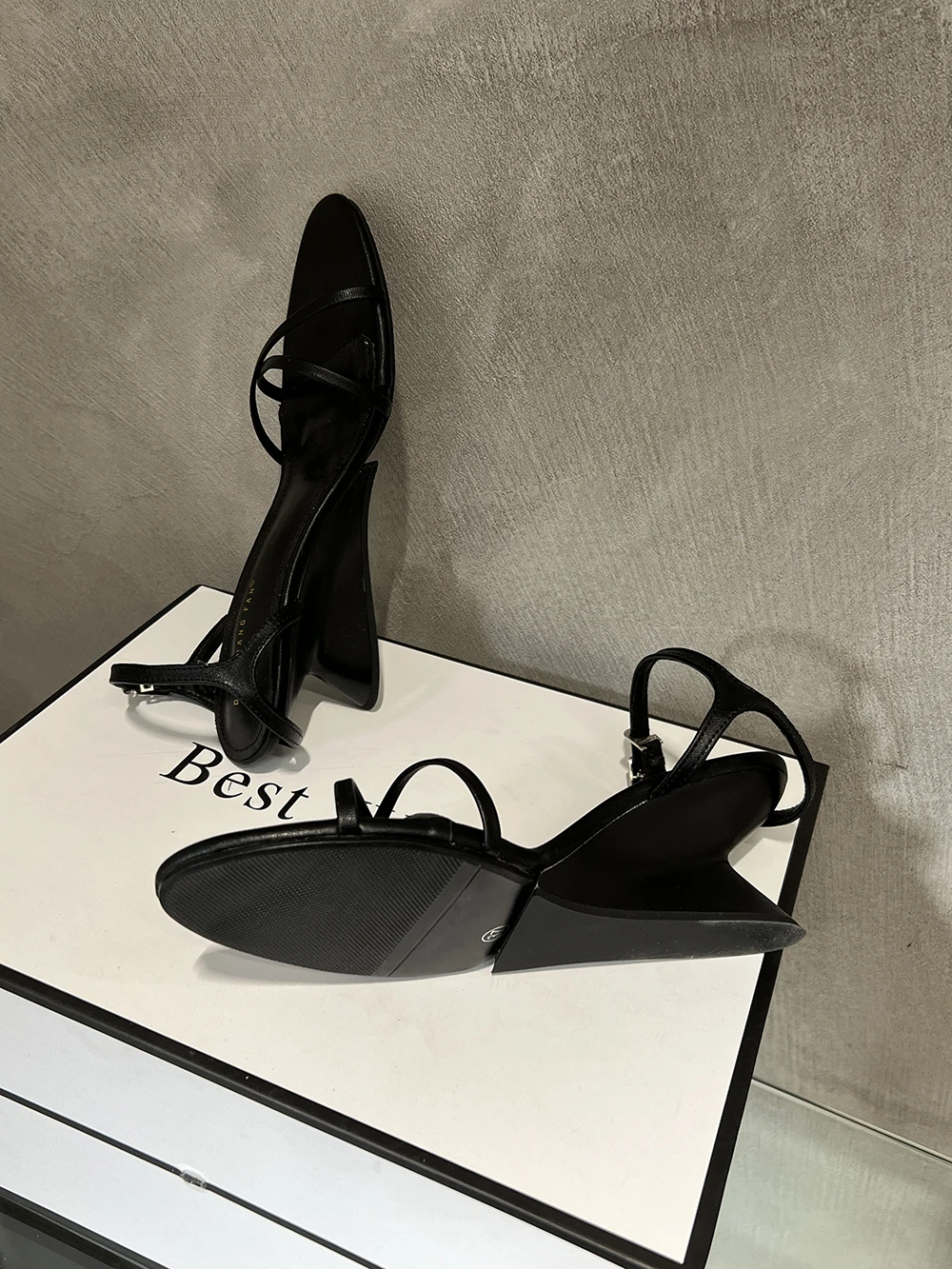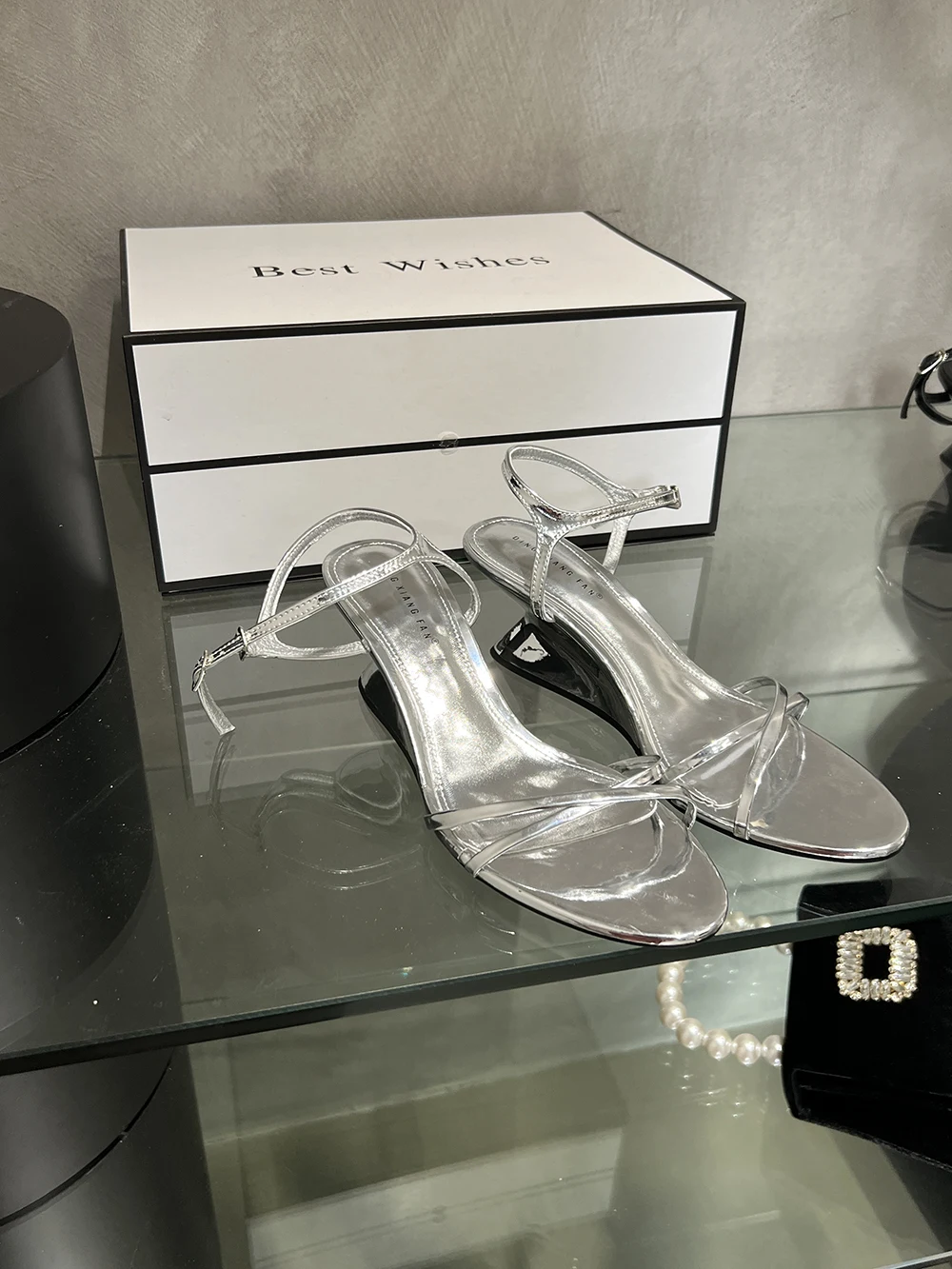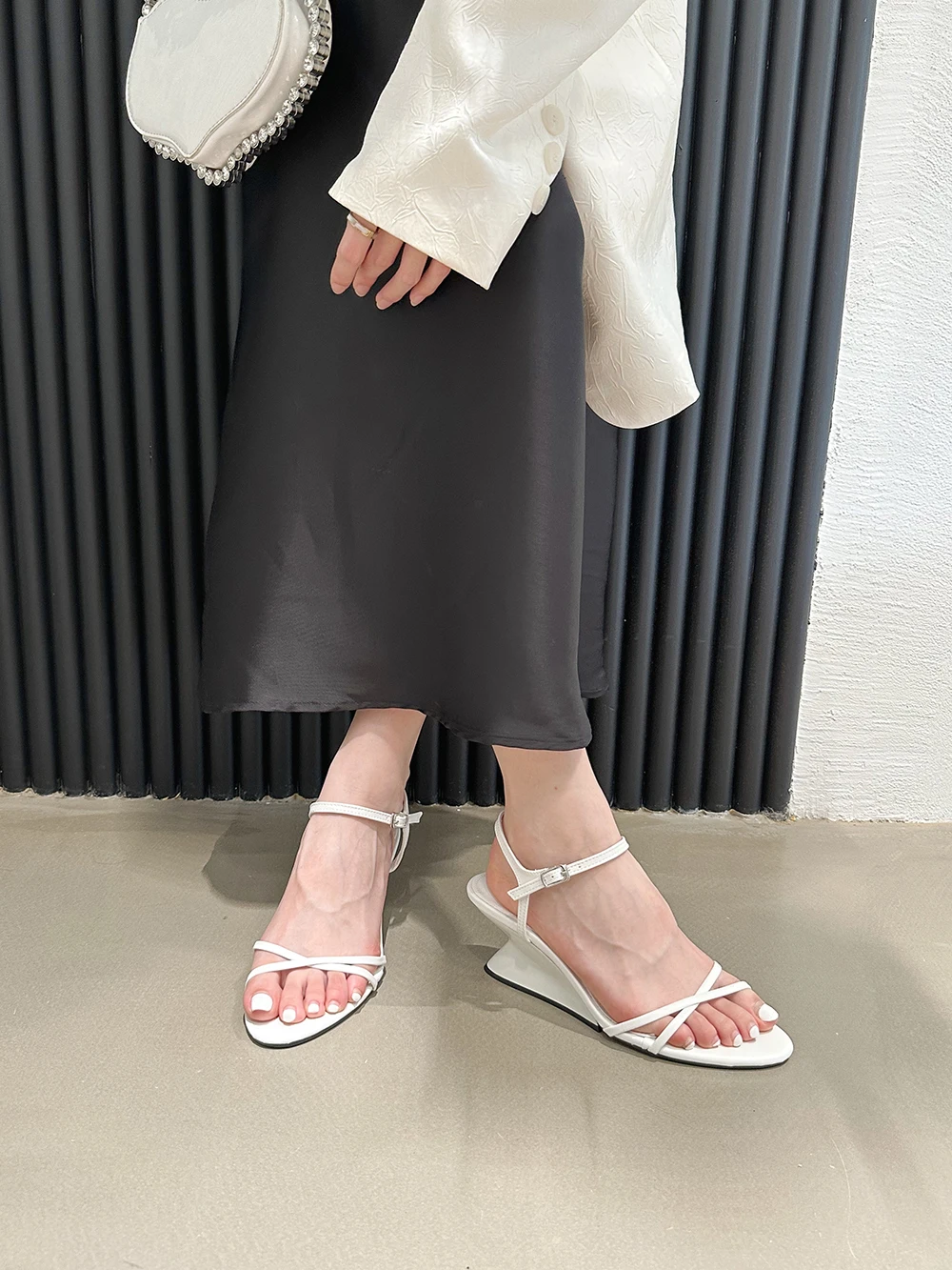 LBSFY - Silver Black White Women Sandals Open Toe Summer Dress Shoes Ankle Strap Party Pumps Wedge High Heels Slides Mules Shoes 35-40