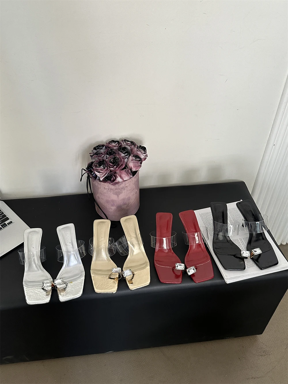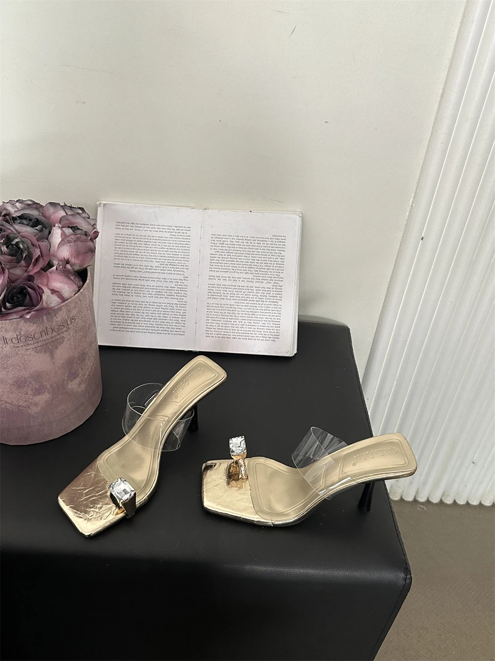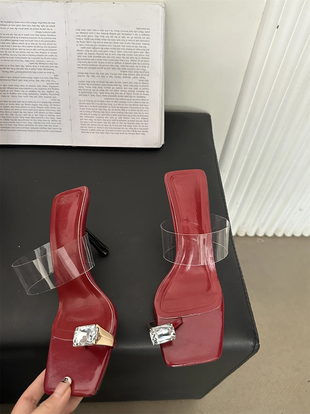 LBSFY - Silver/Gold/Black/Red Women Slides Slippers Clip Toe Summer Casual Dress Shoes Thin High Heels Crystal Party Pumps Stiletto Heel