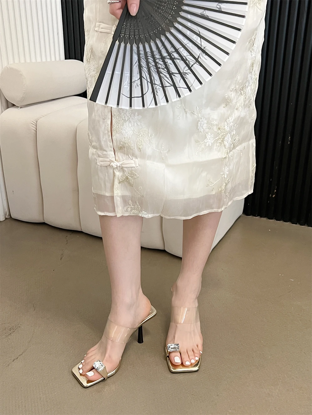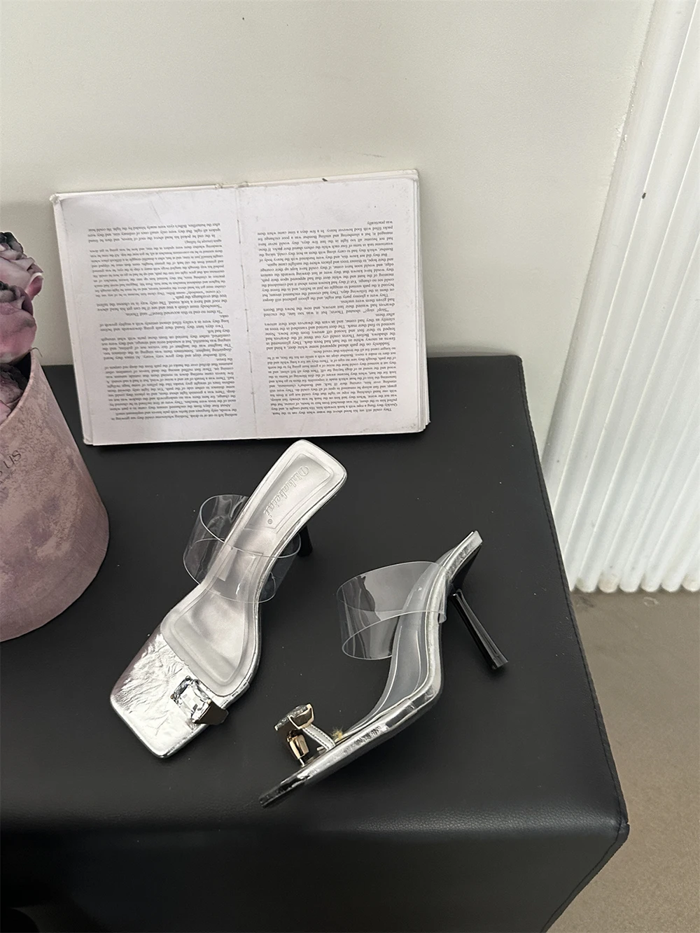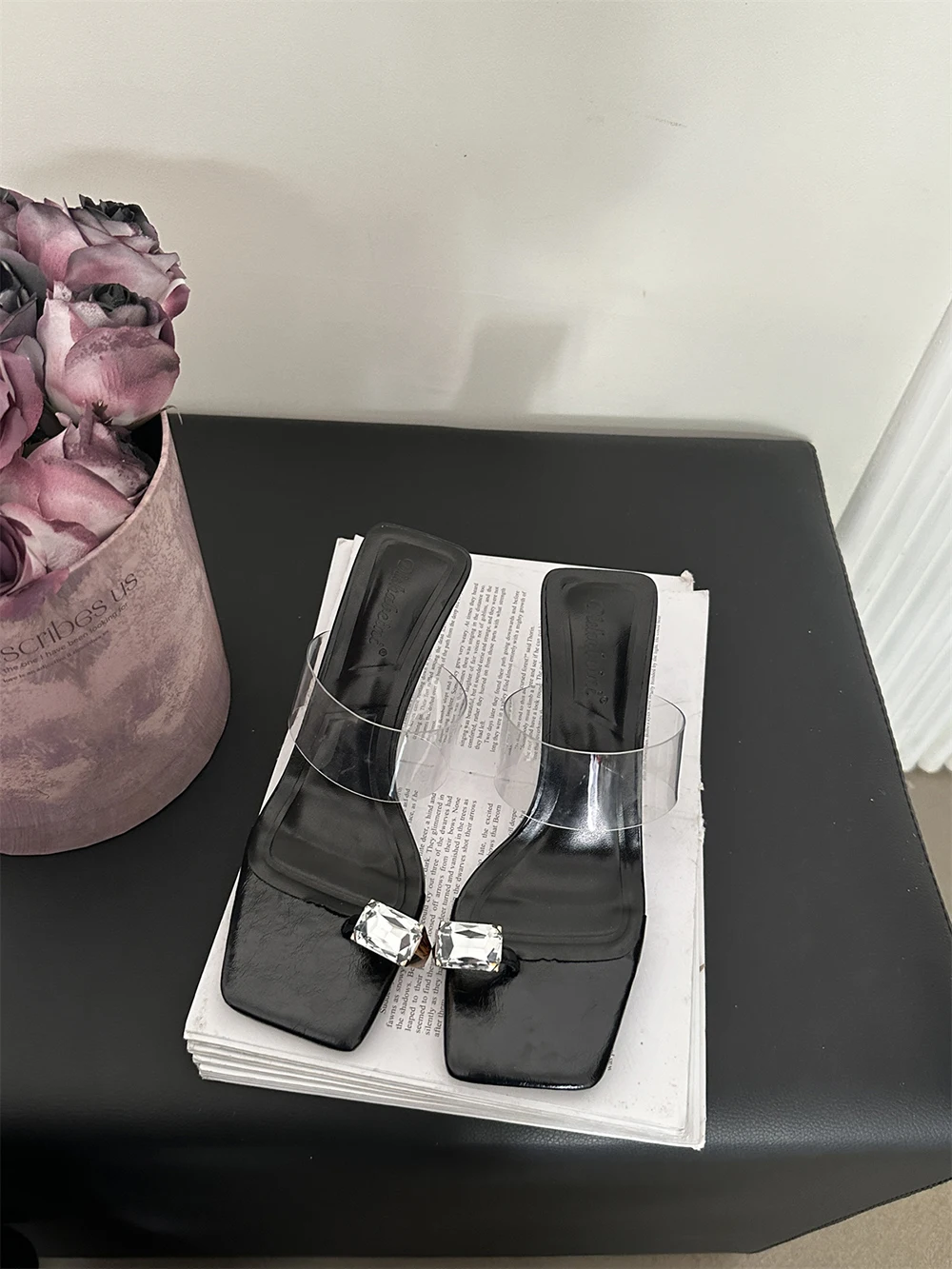 LBSFY - Silver/Gold/Black/Red Women Slides Slippers Clip Toe Summer Casual Dress Shoes Thin High Heels Crystal Party Pumps Stiletto Heel