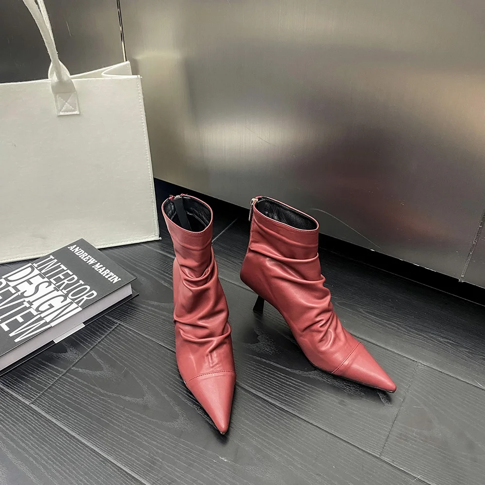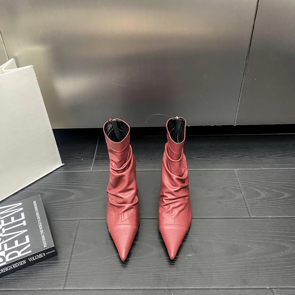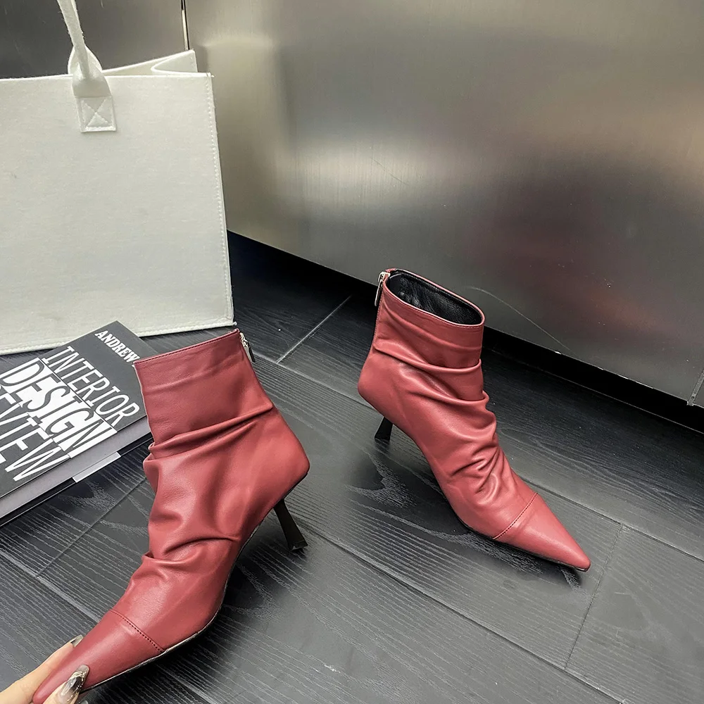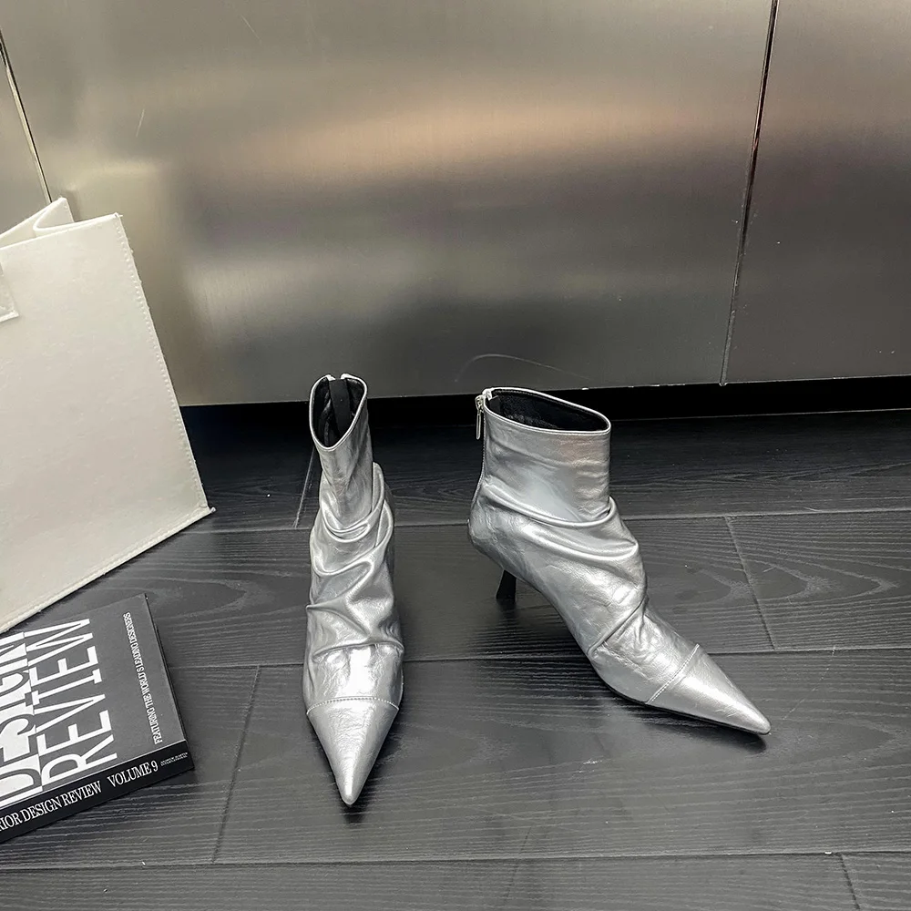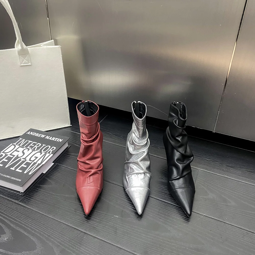 LBSFY - Silver Red Black Women Ankle Boots Pointed Toe Short Bootie Thin High Heels Back Zipper Autumn Winter Boots Woman Size 35-40