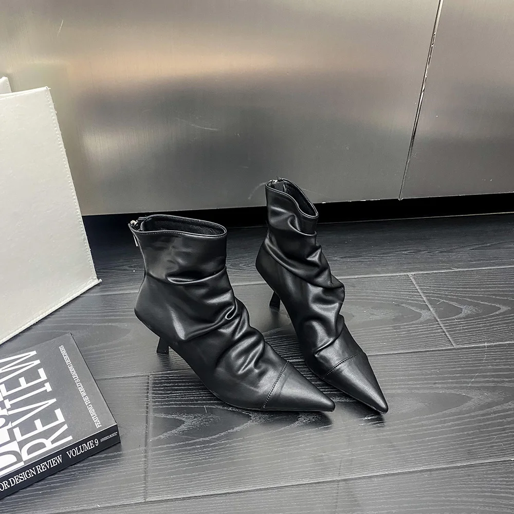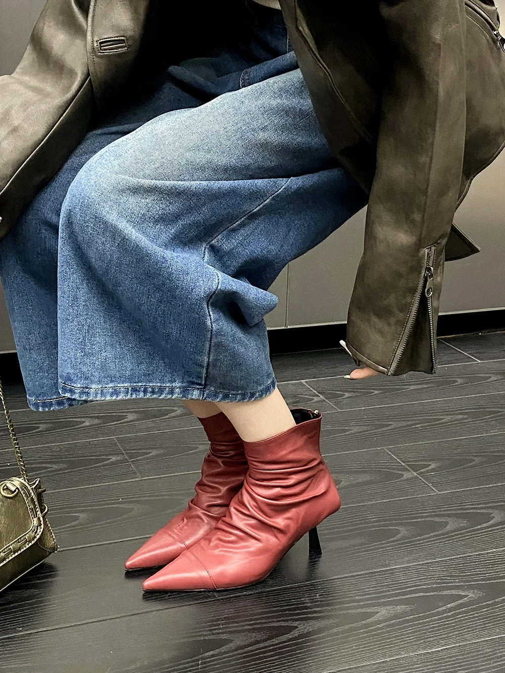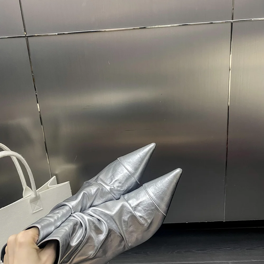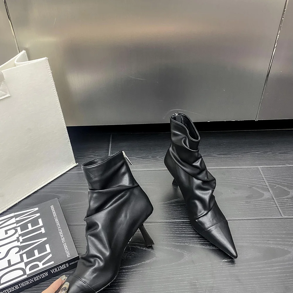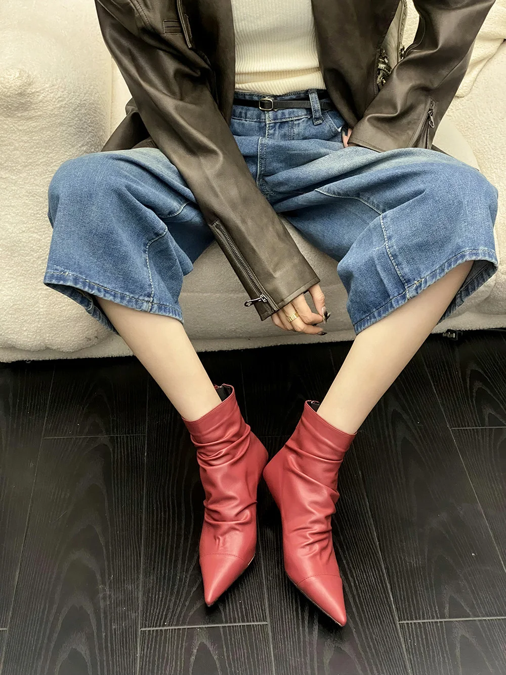 LBSFY - Silver Red Black Women Ankle Boots Pointed Toe Short Bootie Thin High Heels Back Zipper Autumn Winter Boots Woman Size 35-40