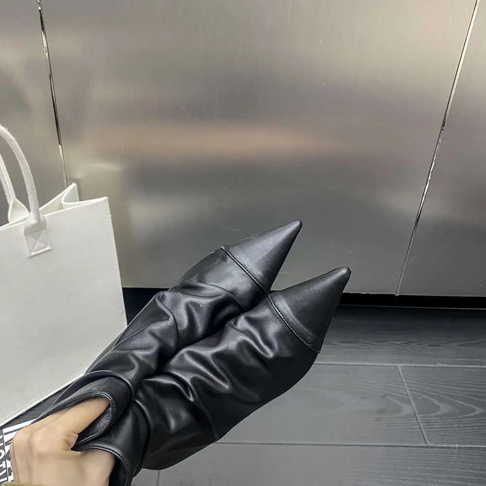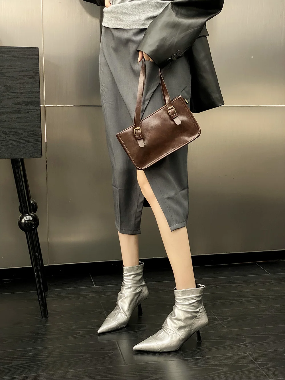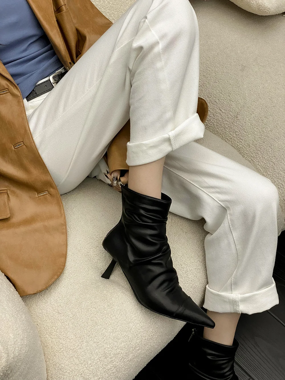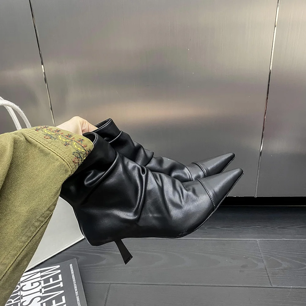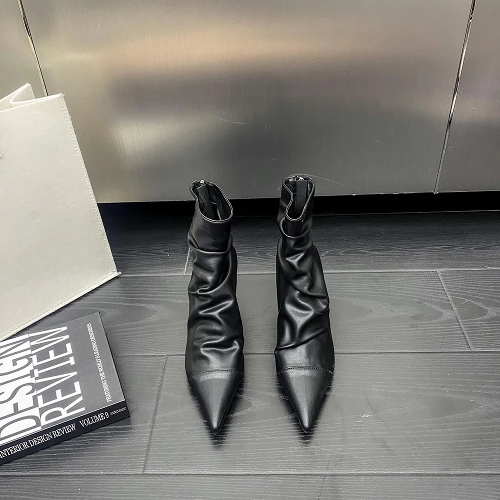 LBSFY - Silver Red Black Women Ankle Boots Pointed Toe Short Bootie Thin High Heels Back Zipper Autumn Winter Boots Woman Size 35-40