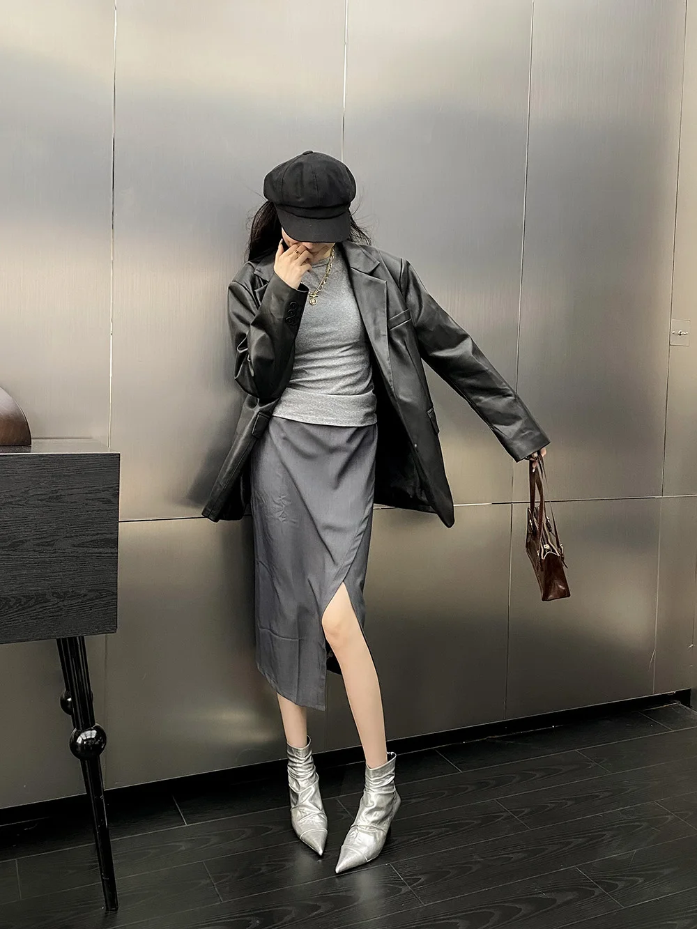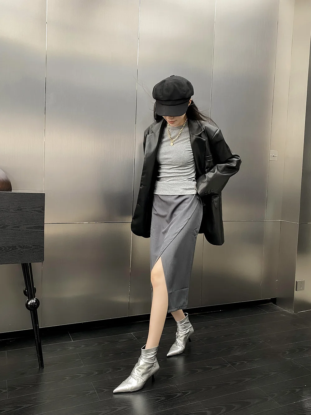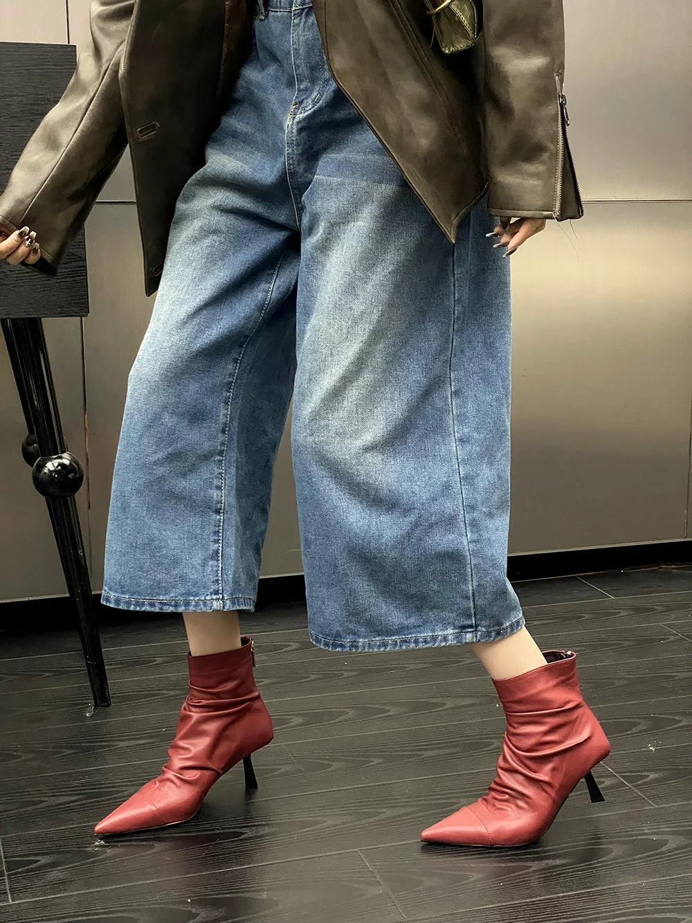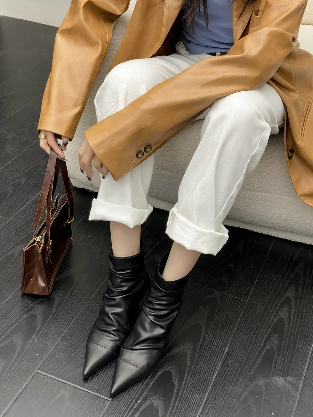 LBSFY - Silver Red Black Women Ankle Boots Pointed Toe Short Bootie Thin High Heels Back Zipper Autumn Winter Boots Woman Size 35-40