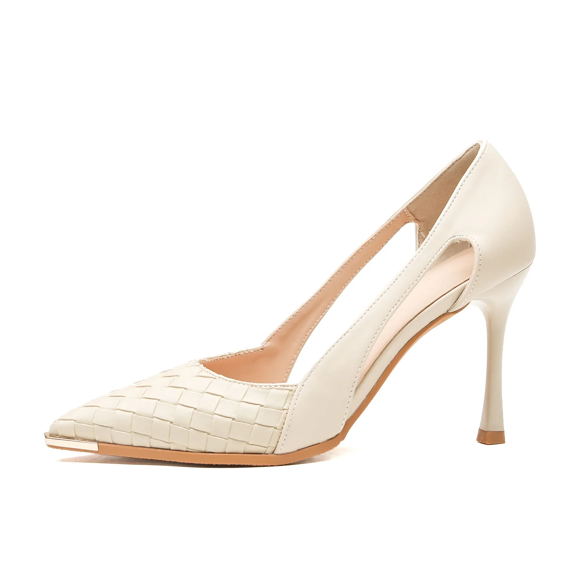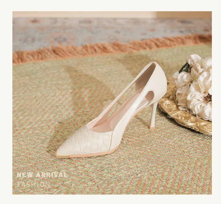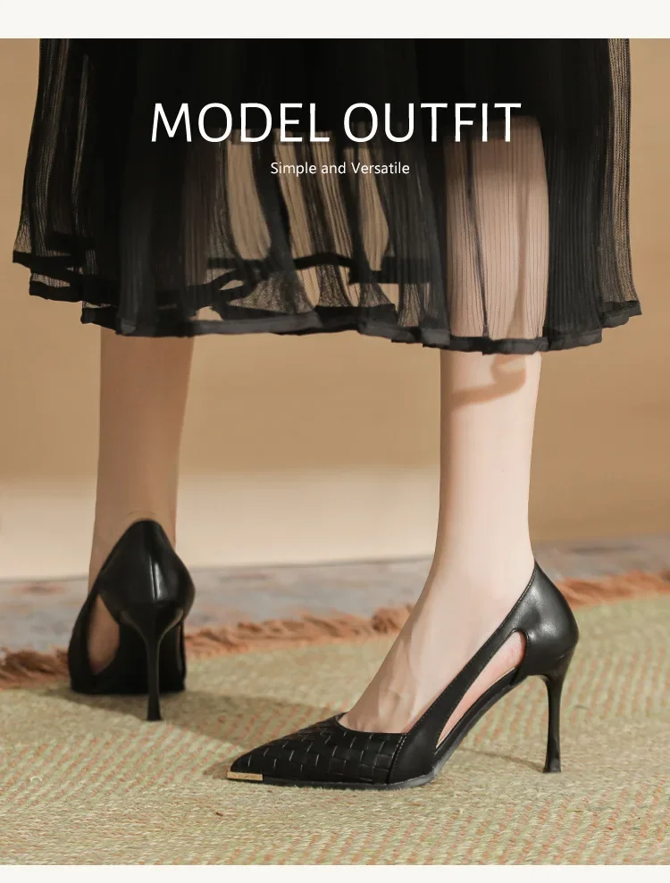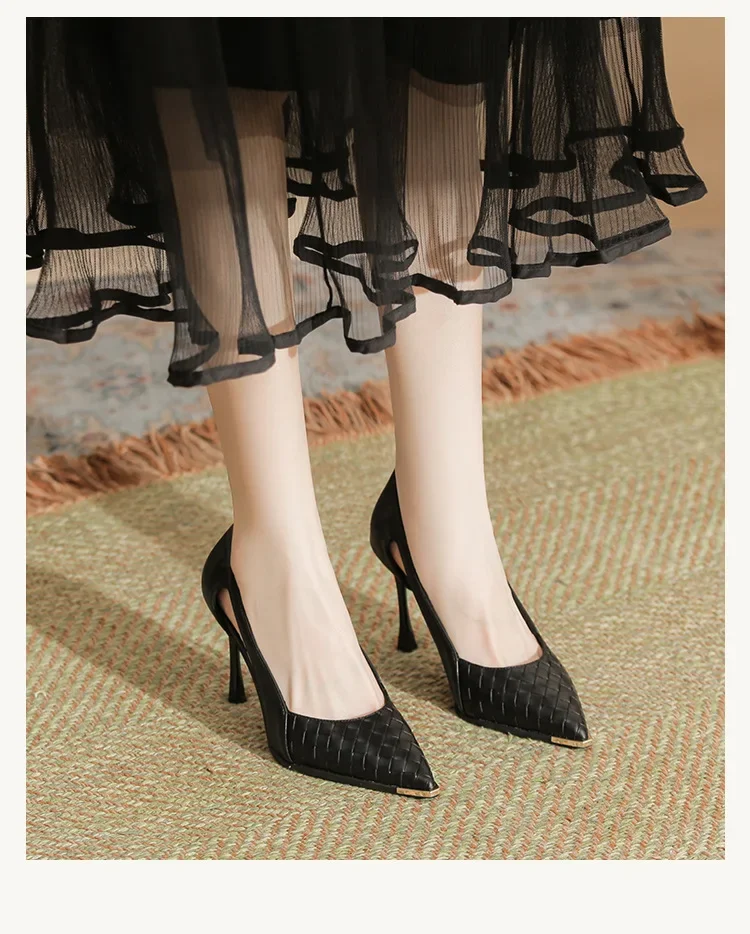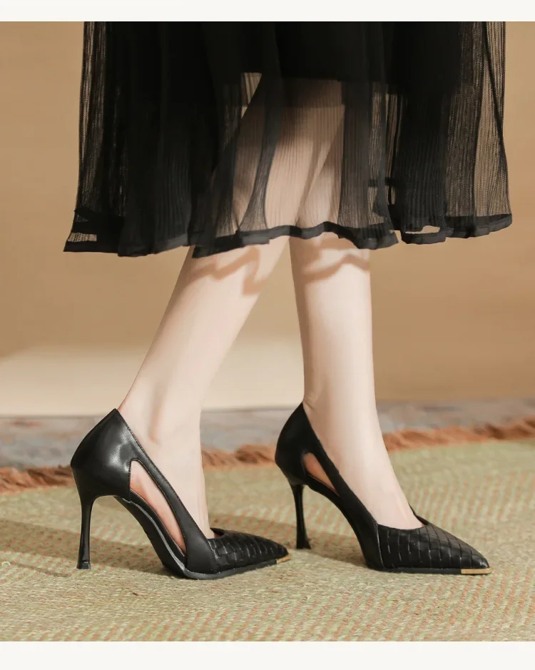 LBSFY - Size 31-43 Stiletto Heel Black Shoes Women Party Dress Shoes Metal Toe Pu Upper Hollow Design High Heelss