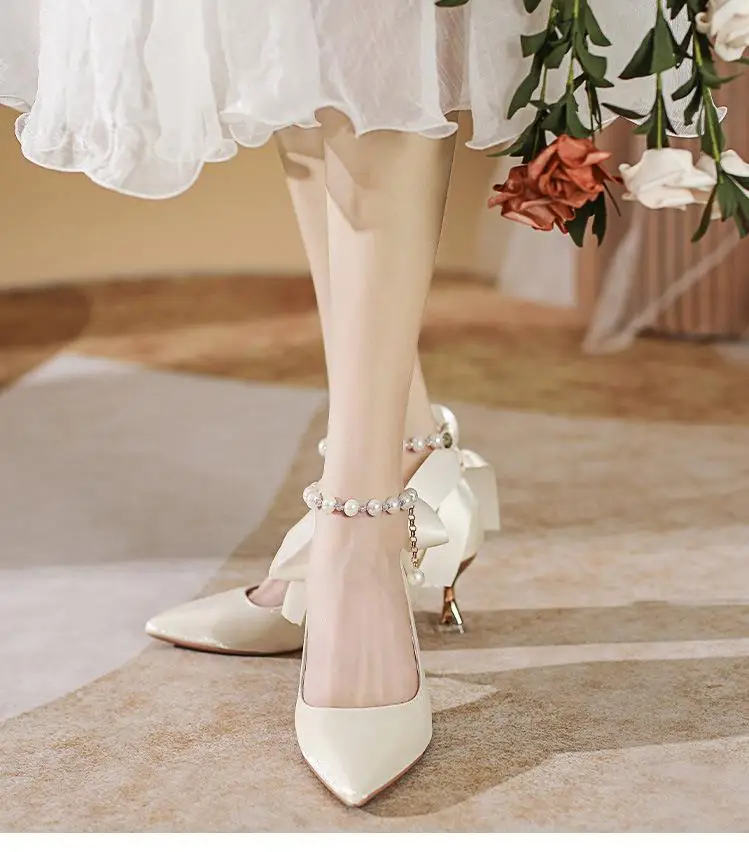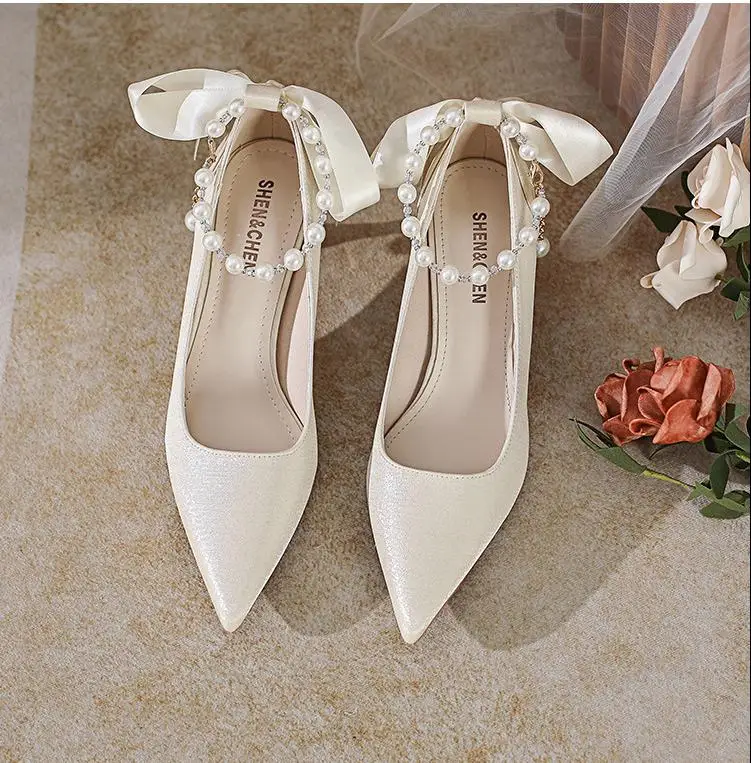 LBSFY - Size 34-43 Low Heel Wedding Shoes Women Pointed Toe Party Shoes Point Toe