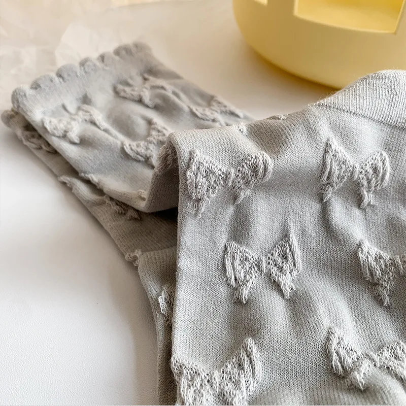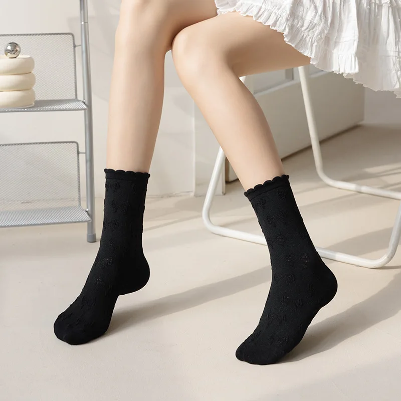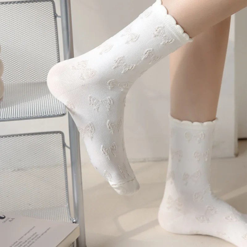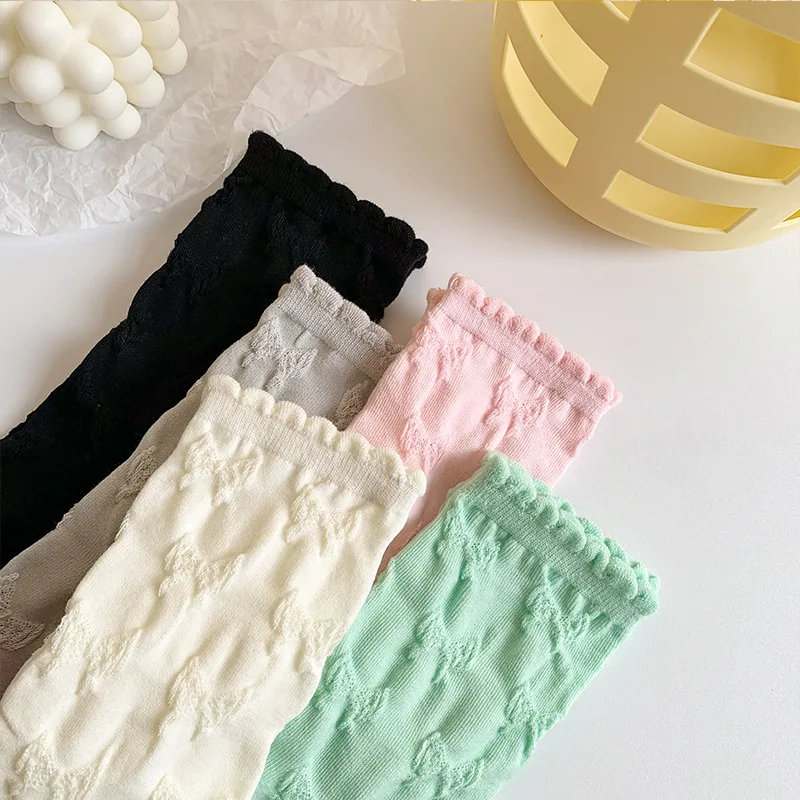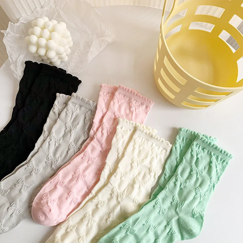 Lbsfy Socks Spring Summer Solid Color Casual Bow Lace Sweet Style Girl Cotton Middle Tube Woman Girls Gift Lolita Harajuku Socks