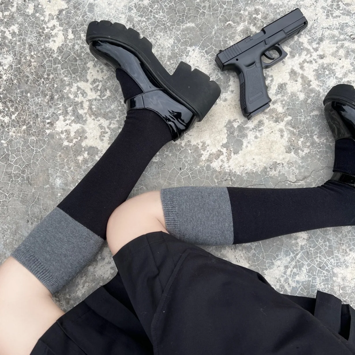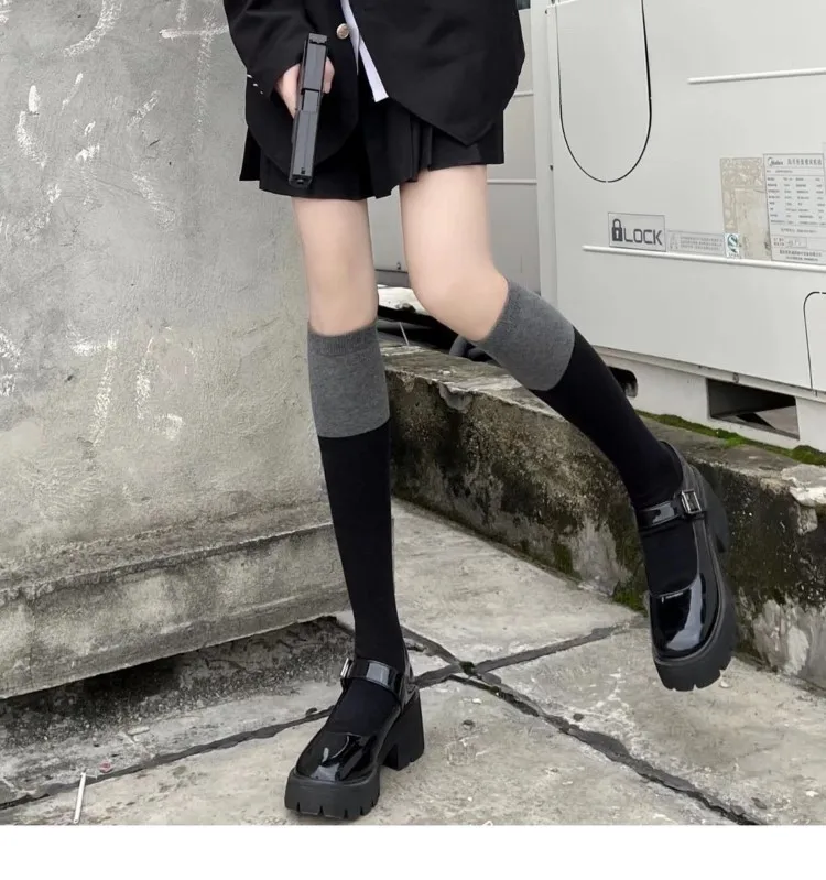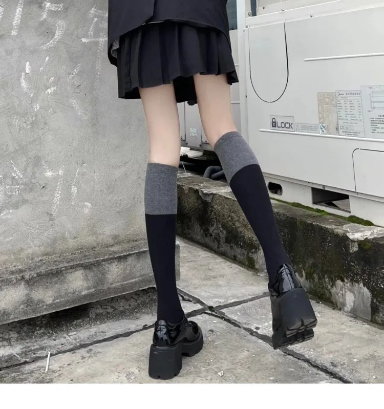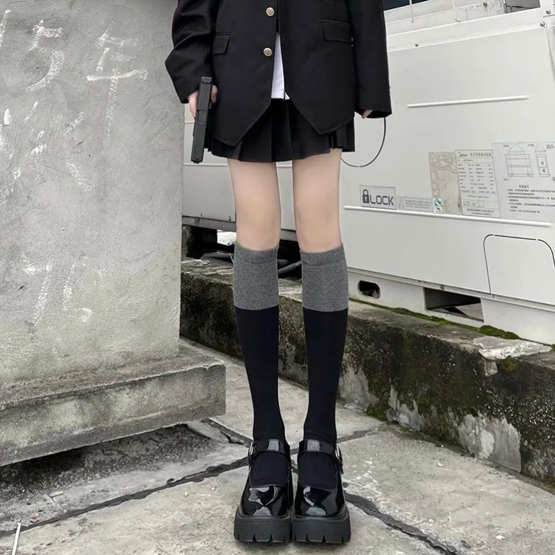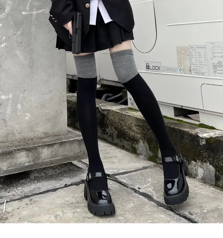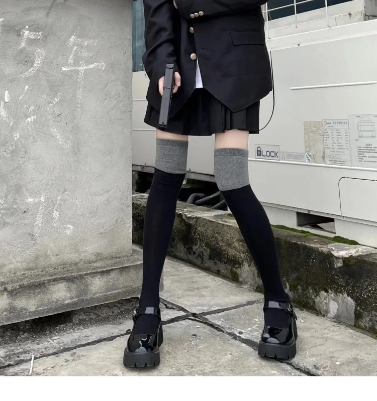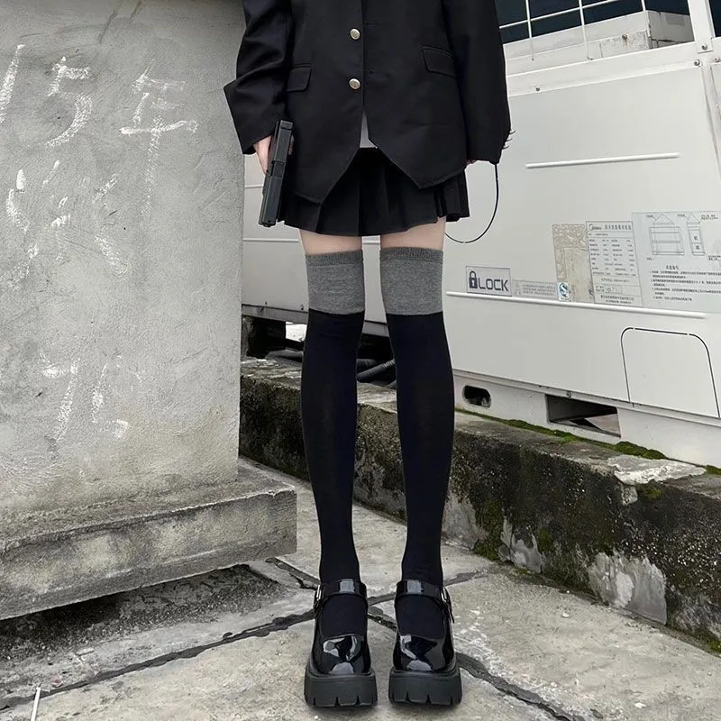 Lbsfy Socks Woman Autumn Winter Thin Warm Lolita Cute Thigh High Long Stockings Black Grey Patchwork JK Versatile Socks for Women
