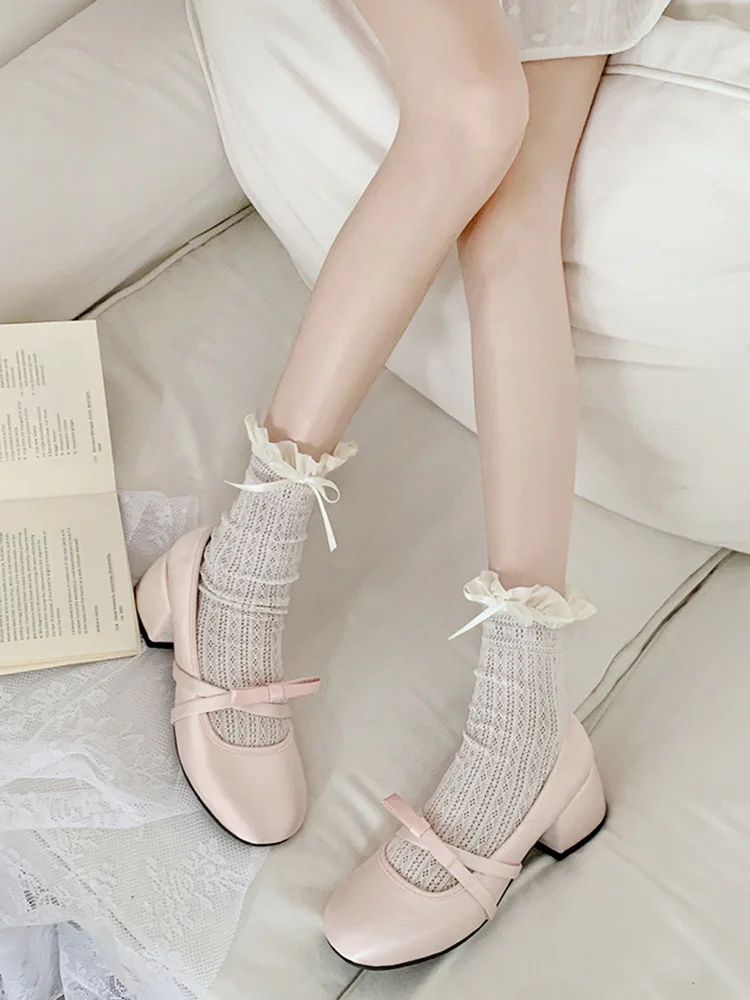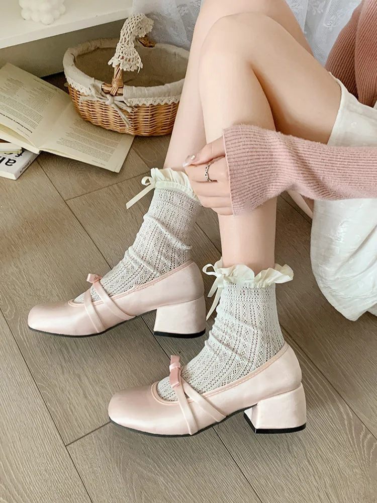 Lbsfy Socks Woman Summer Solid Color Thin Lace Hollow Out Girls Sweet Socks Cute Japanese Short Mid-calf Socks