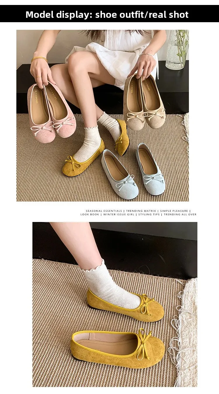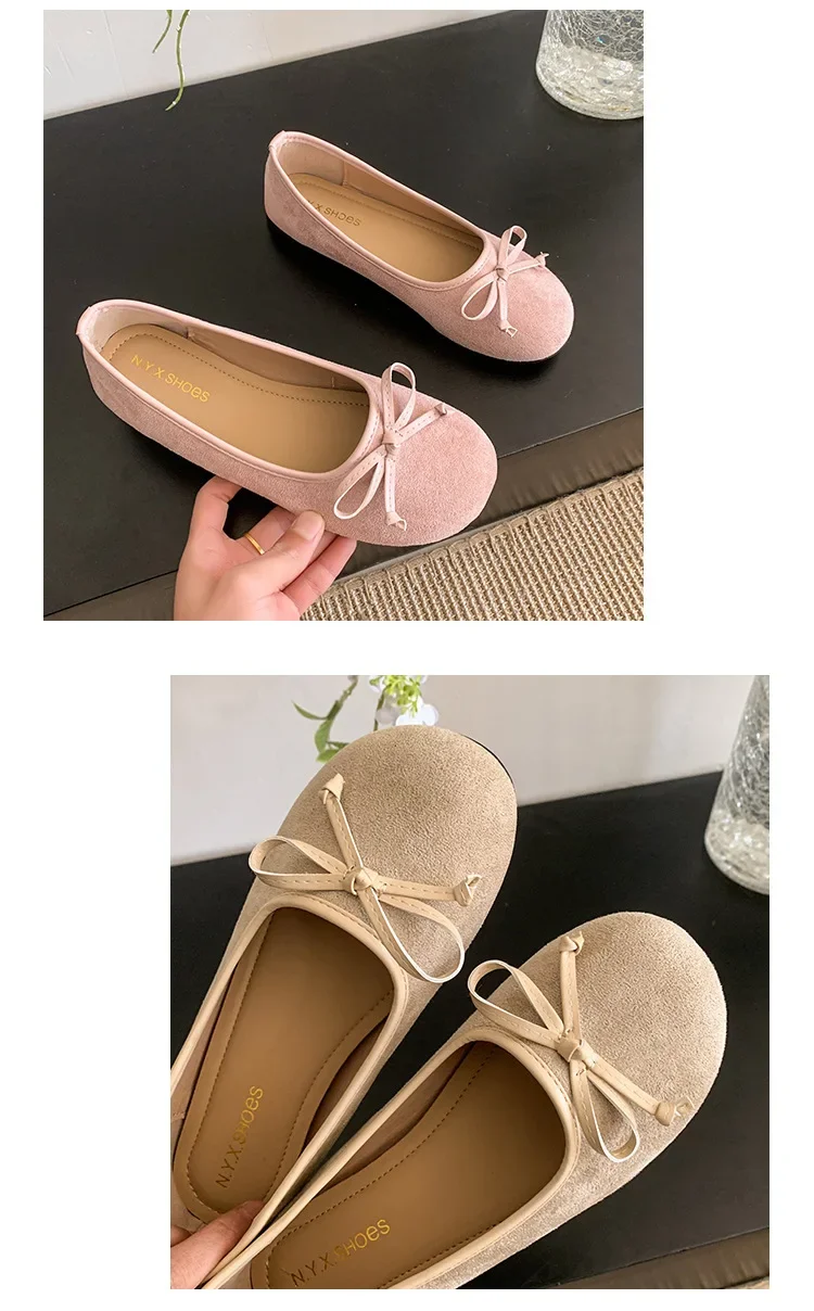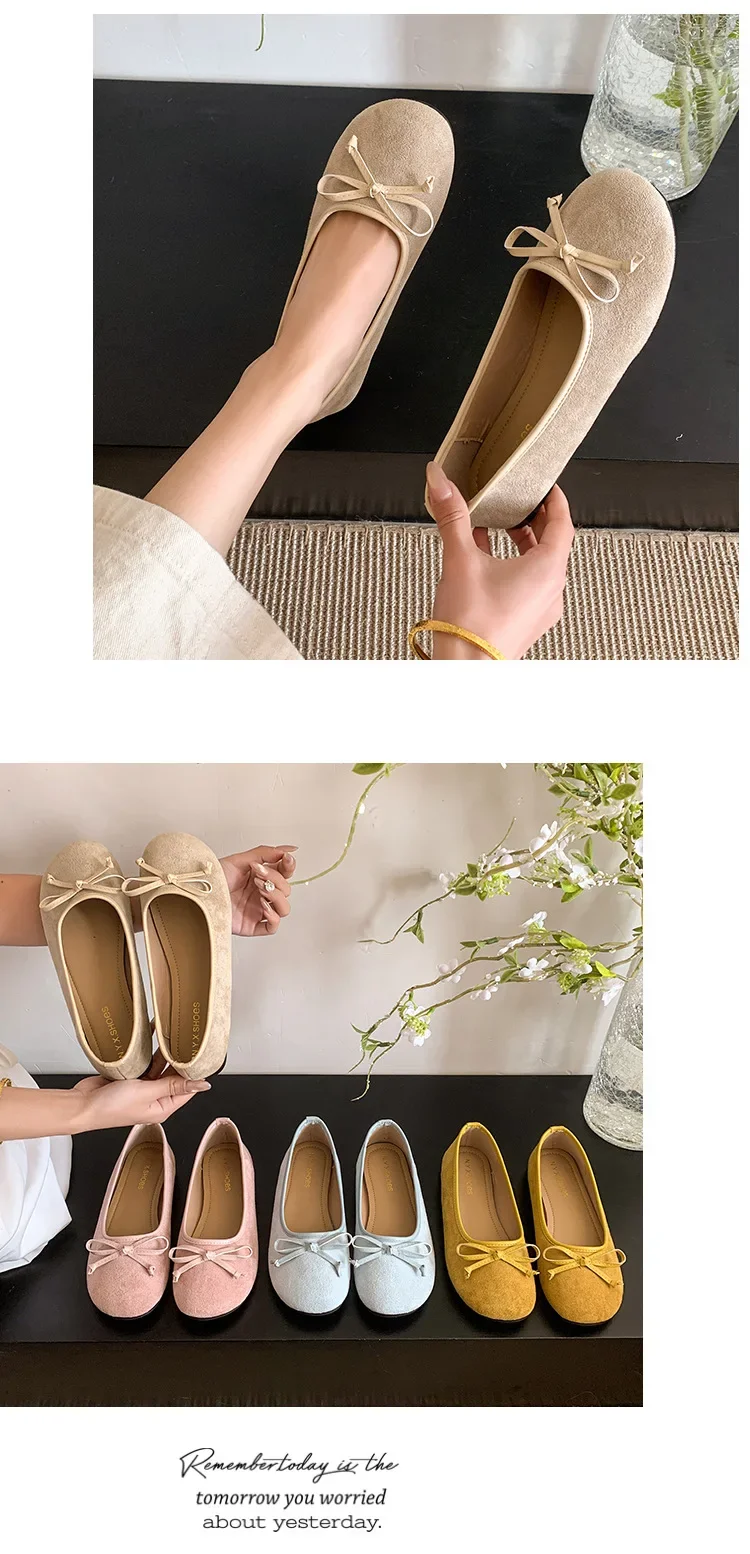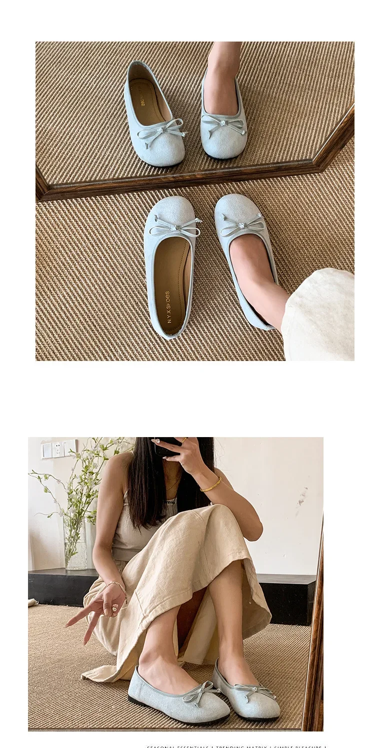 LBSFY -Spring 2025 Women's Flat Bottom Slip-On Shoes with Butterfly Knot round Head Bean Style Korean Fashion Low Cut Casual Shoes
