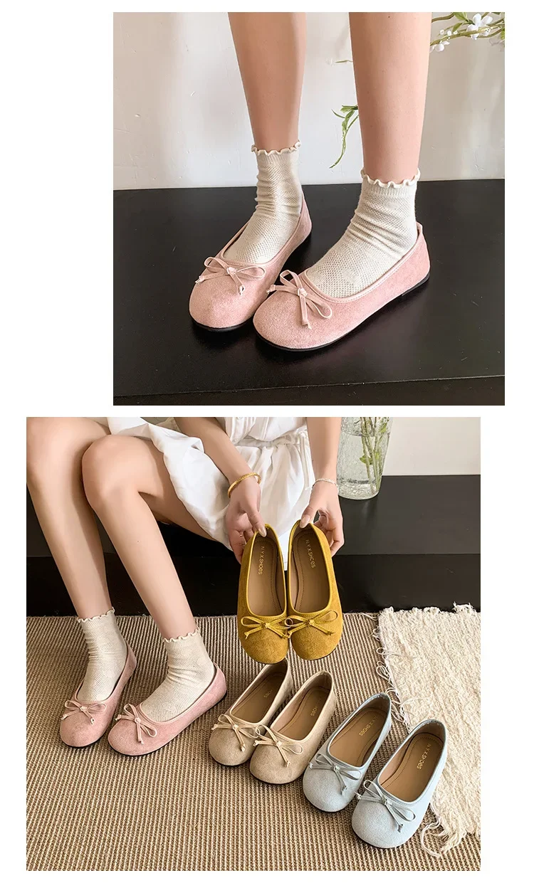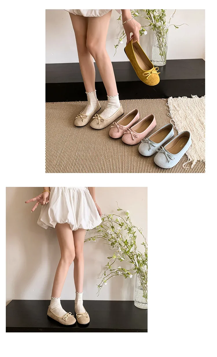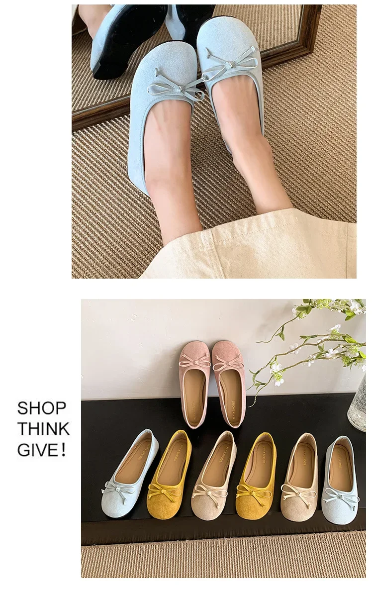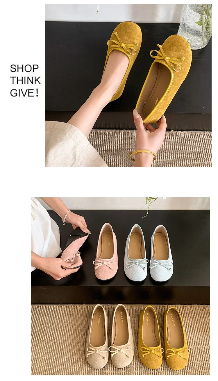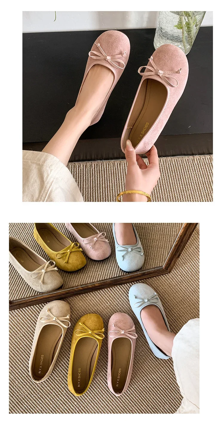 LBSFY -Spring 2025 Women's Flat Bottom Slip-On Shoes with Butterfly Knot round Head Bean Style Korean Fashion Low Cut Casual Shoes