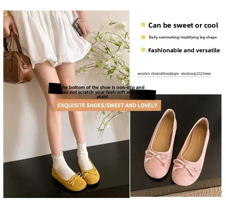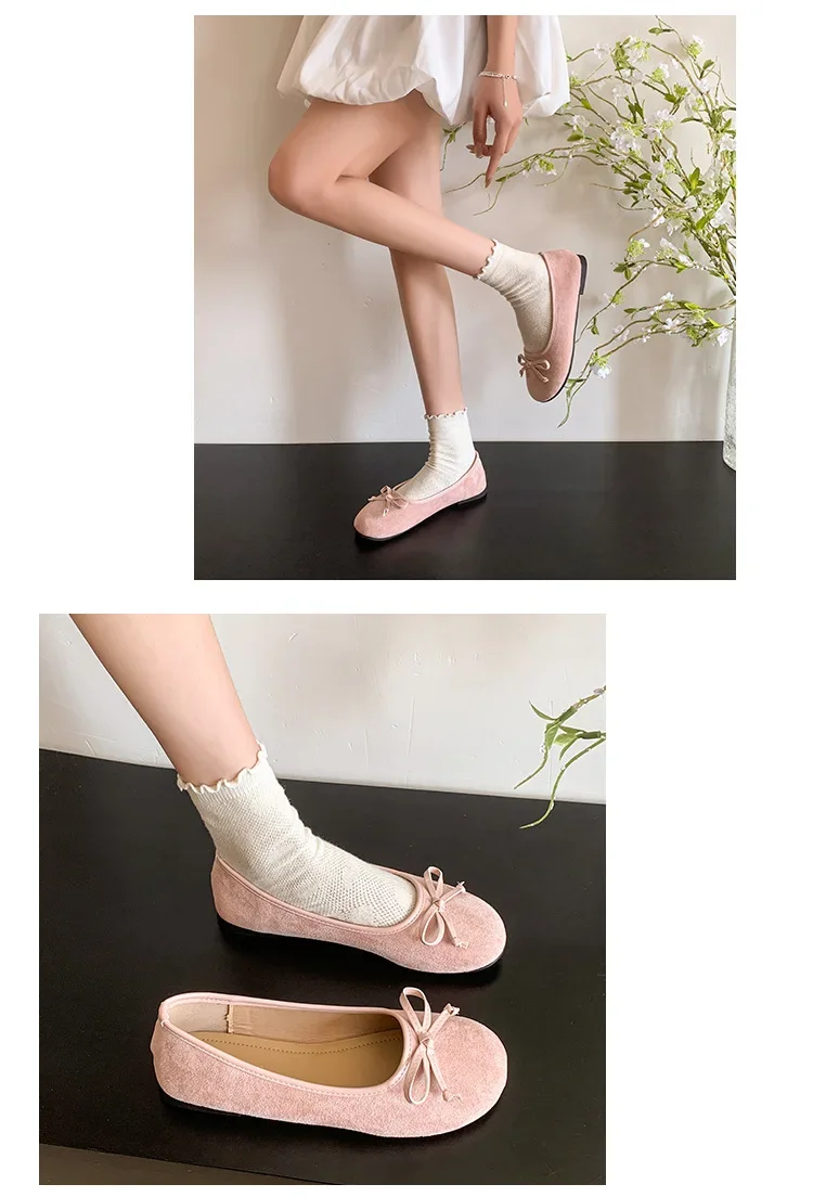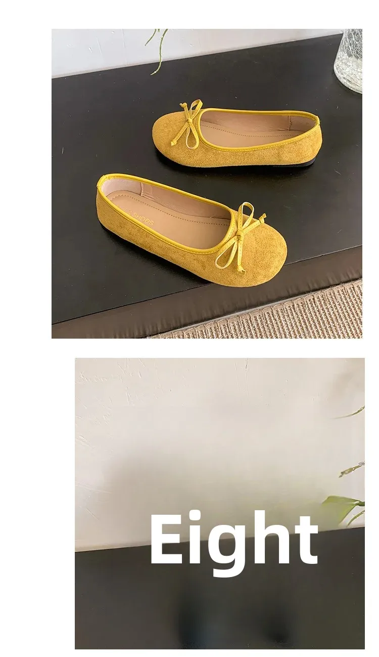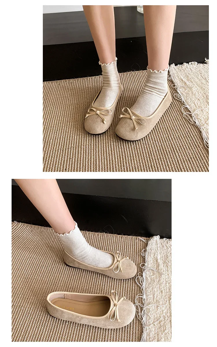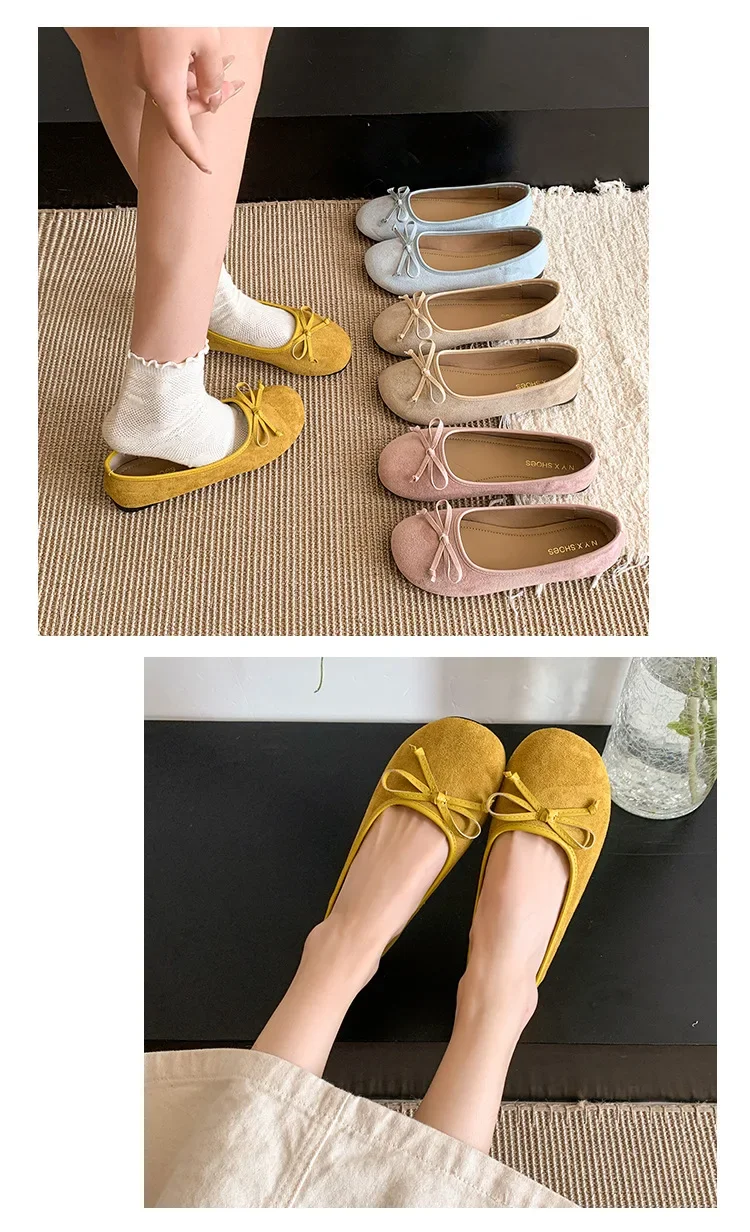 LBSFY -Spring 2025 Women's Flat Bottom Slip-On Shoes with Butterfly Knot round Head Bean Style Korean Fashion Low Cut Casual Shoes