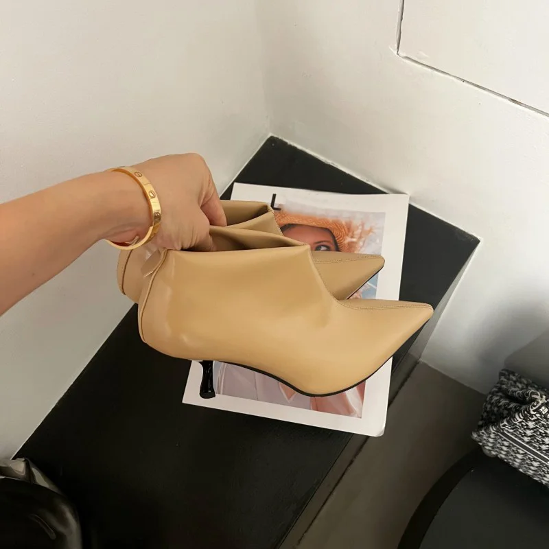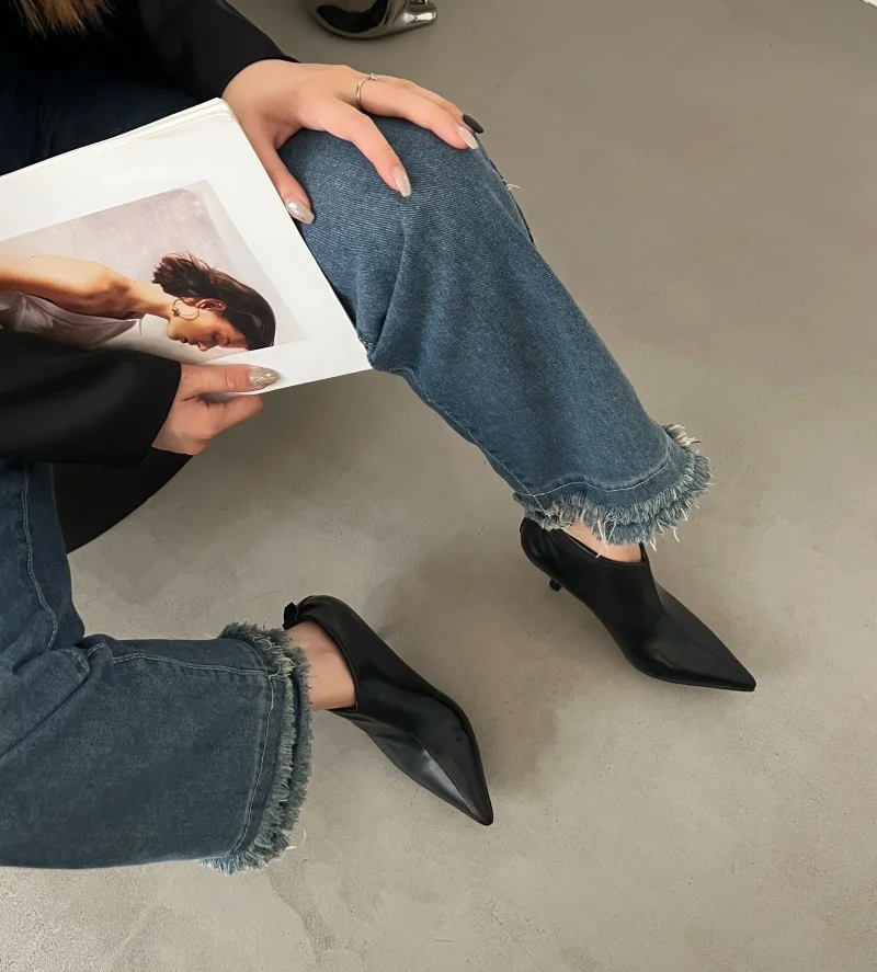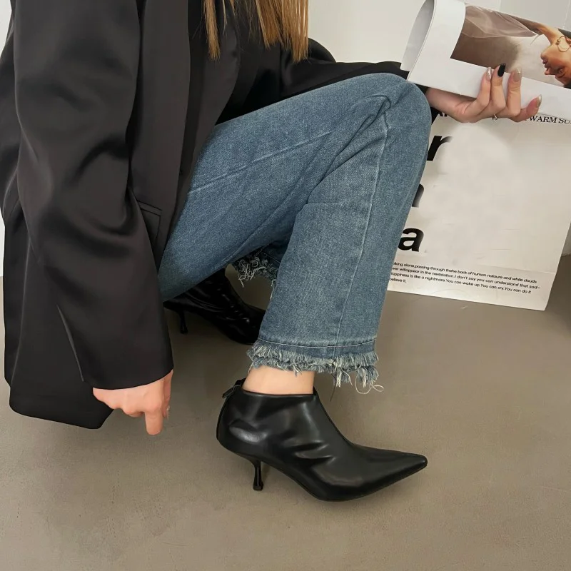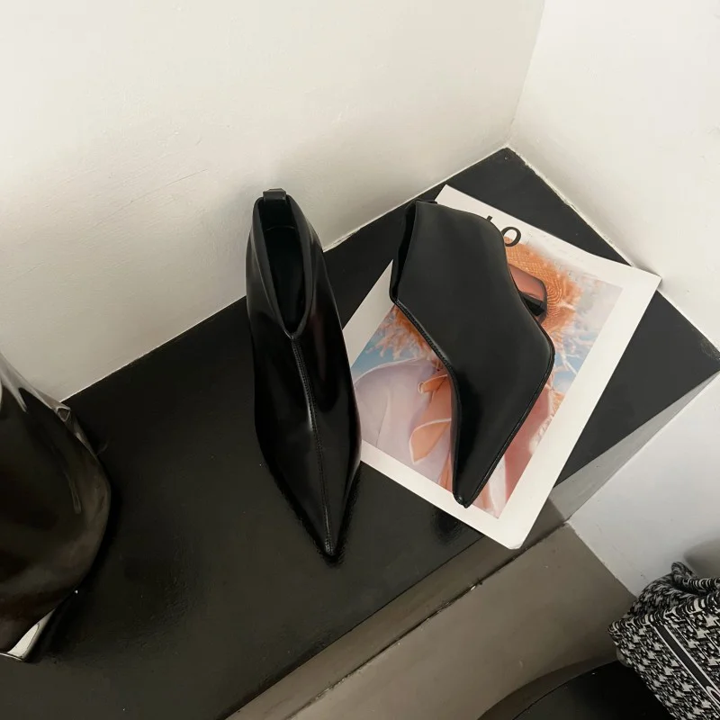LBSFY - Spring Autumn Pumps Women Party Banquet Ankle Chelsea Boots High Quality Cozy PU Leather Pointed Toe Low Thin Heels Black