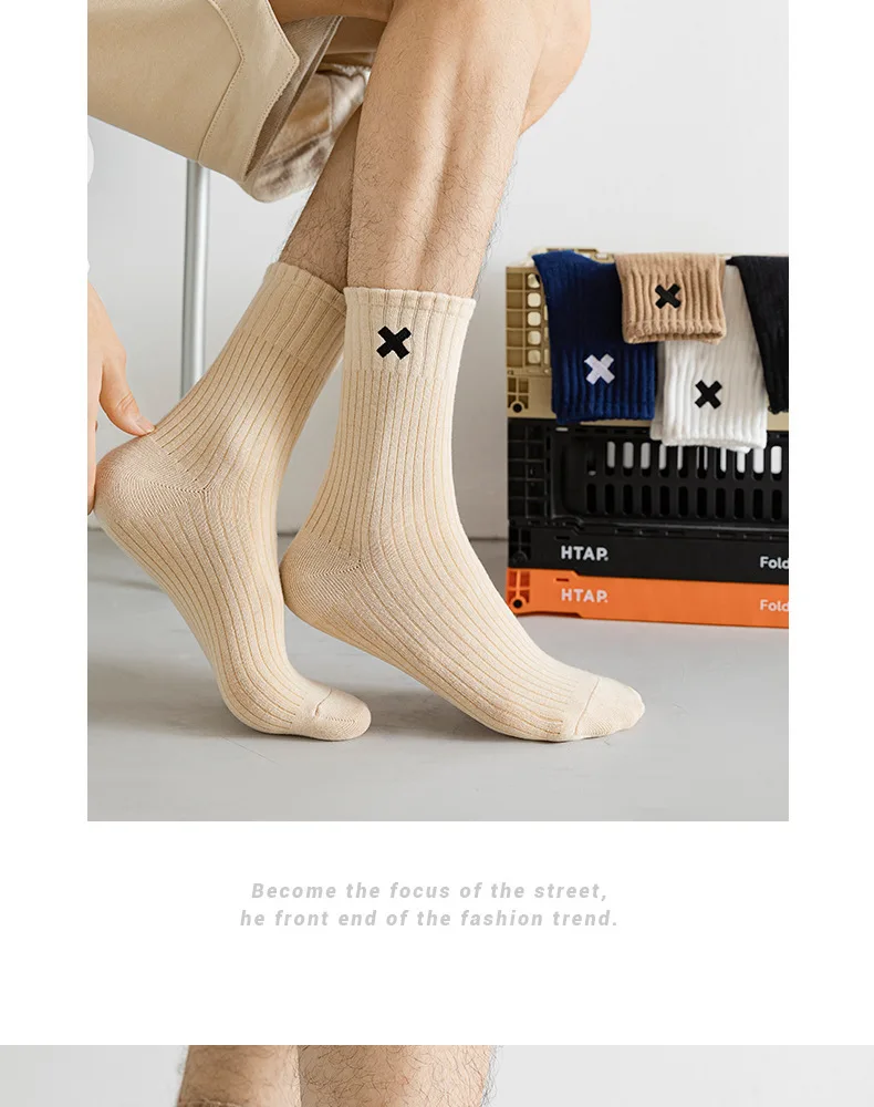 Lbsfy Spring Autumn Winter Men's Sports Mid-tube Short Crew Socks Cotton X Letter Embroidery Long Socks Casual Socks White Black Sox
