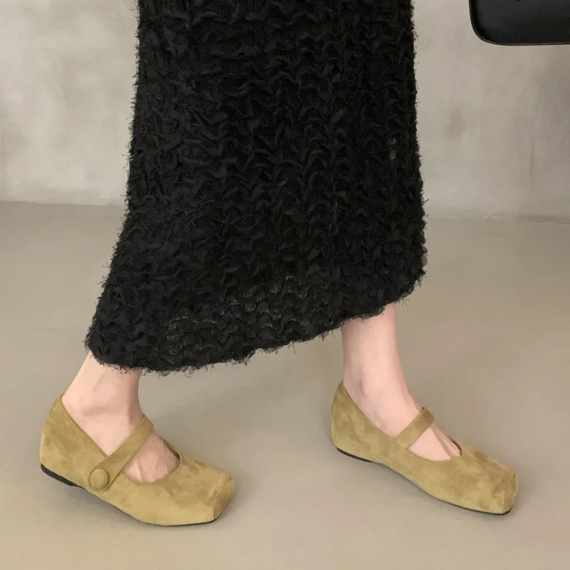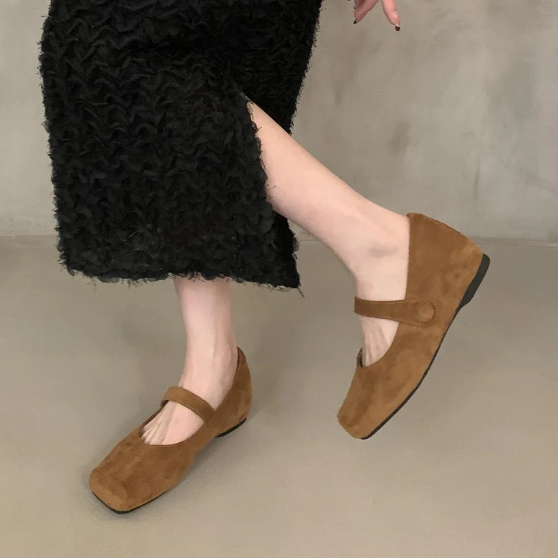 LBSFY -Spring Brand Women Flats Soft Leather Eelgant Dress Shoes Square Toe Shallow Slip On Ladies Casual Ballet Shoes