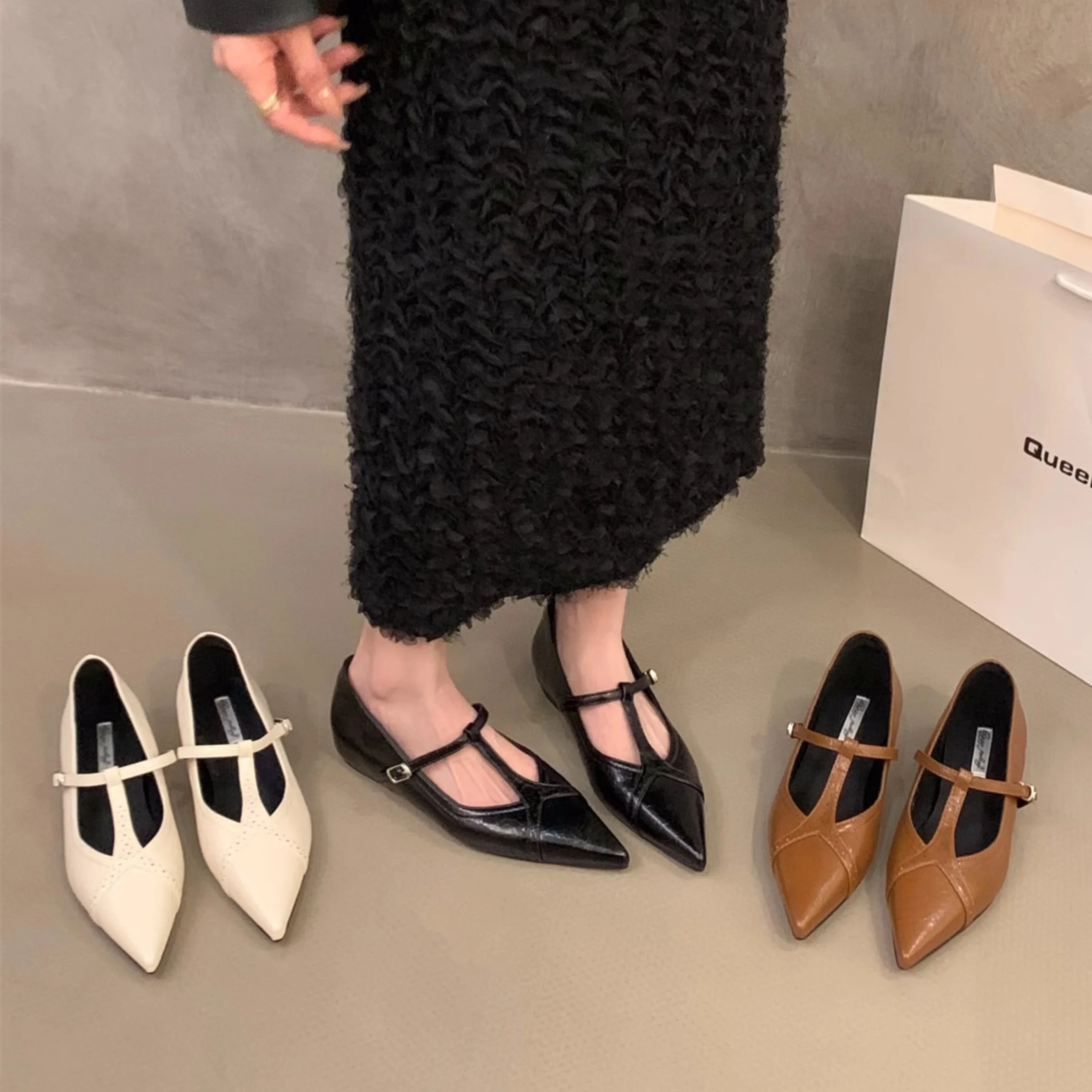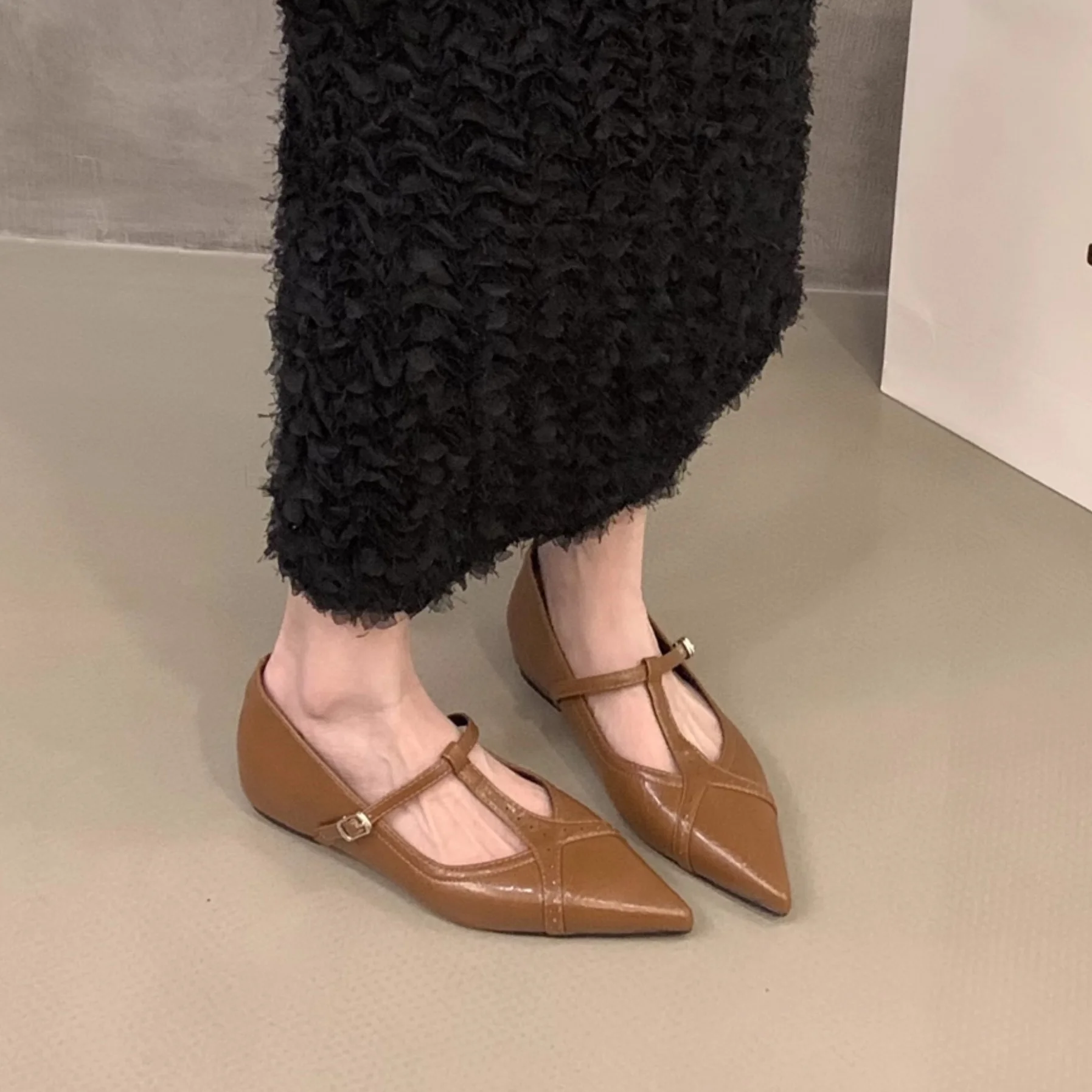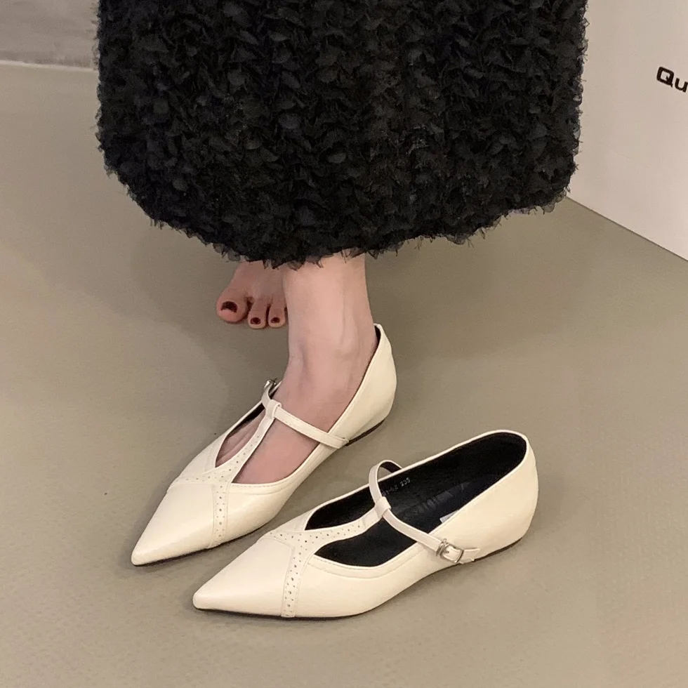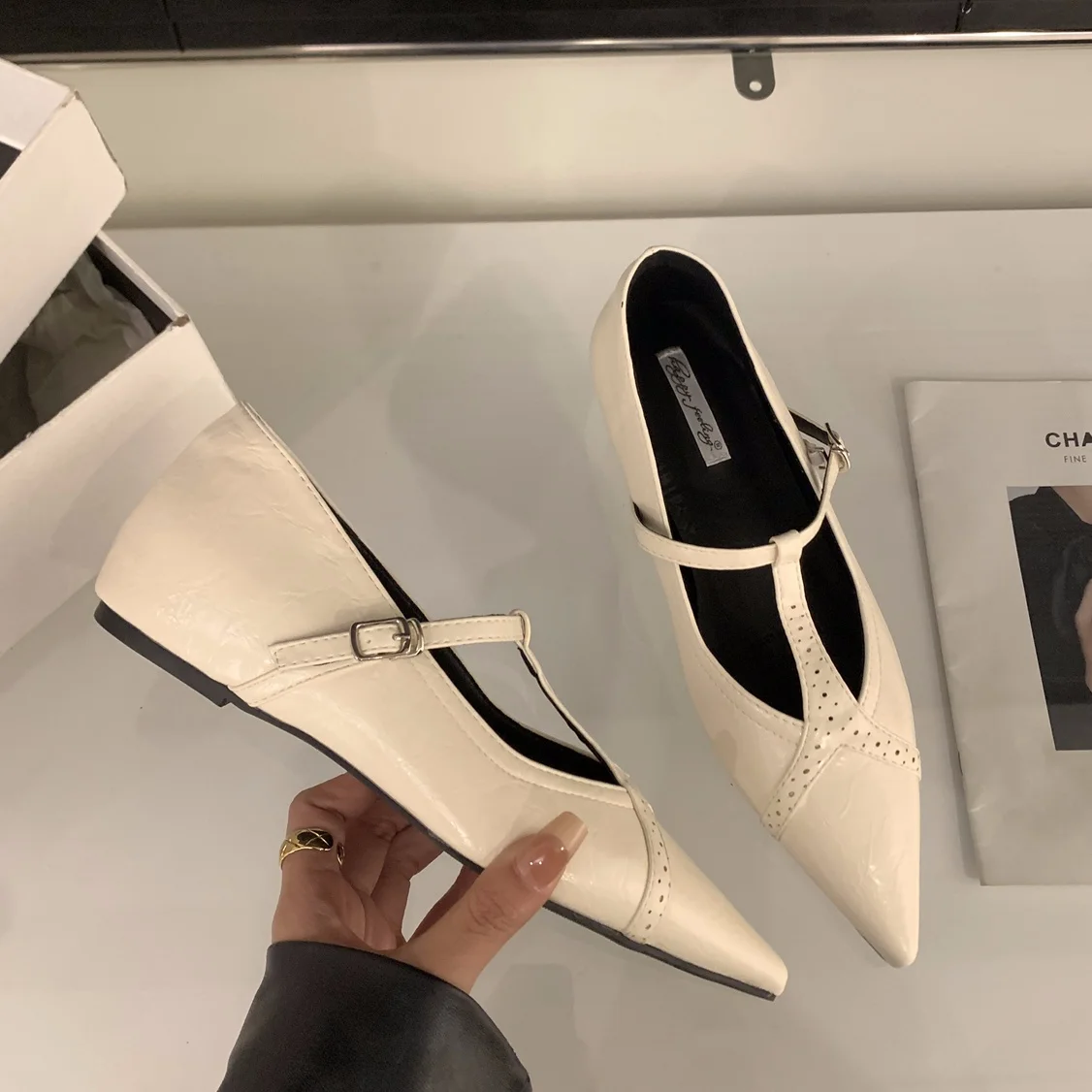 LBSFY -Spring New Women Flats Brand Design Point Toe Women Ballet Shoes Casual Buckle Strap Female Dress Shoes Low Heels