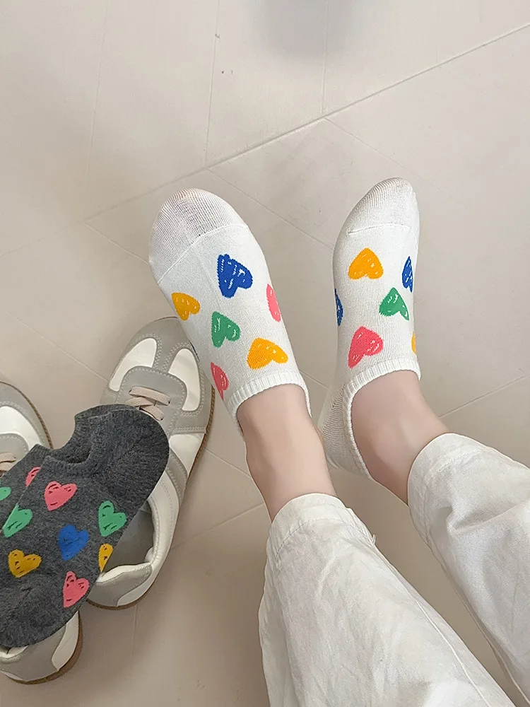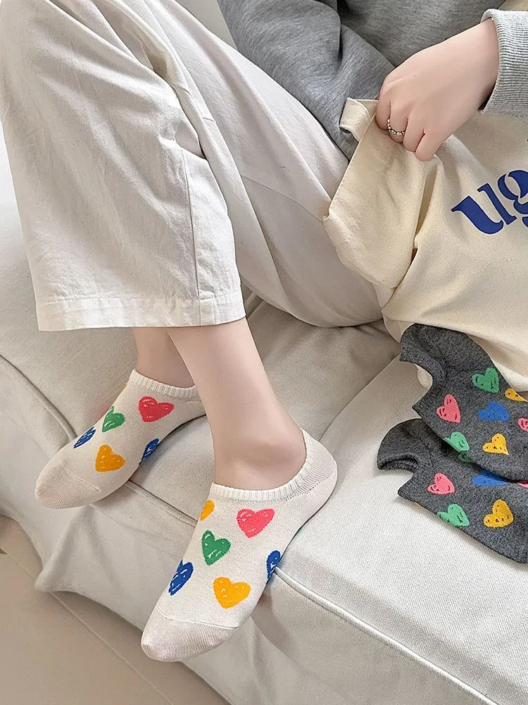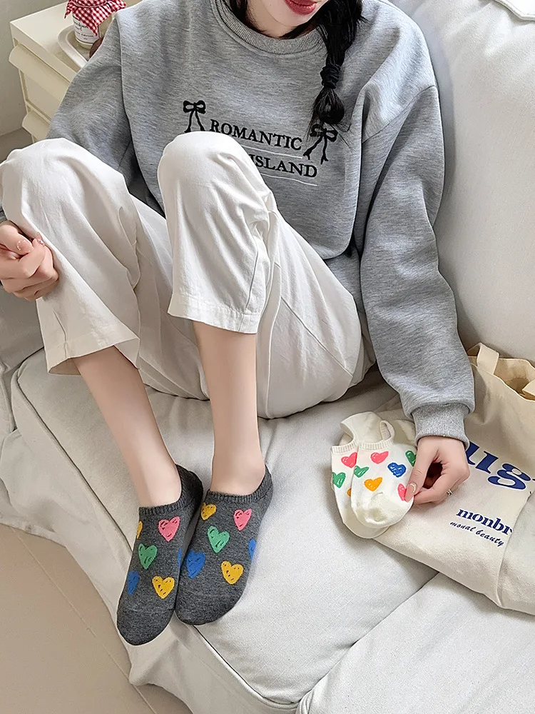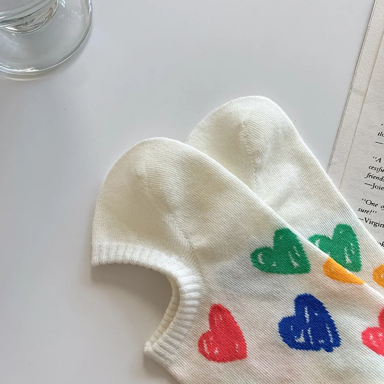 Lbsfy Spring Summer Socks Women's Combed Cotton Sweat Style Leisure Low Cut Love Print Invisible Socks Girls Gift Korean Street Sox