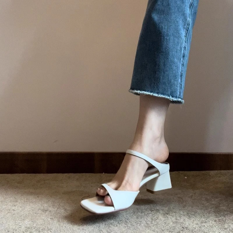 LBSFY -Square heel Slippers Women Summer Slides Female Shoes Block Scandals Shoes Womens Slippers Outdoor Pantofle Square heel Sli