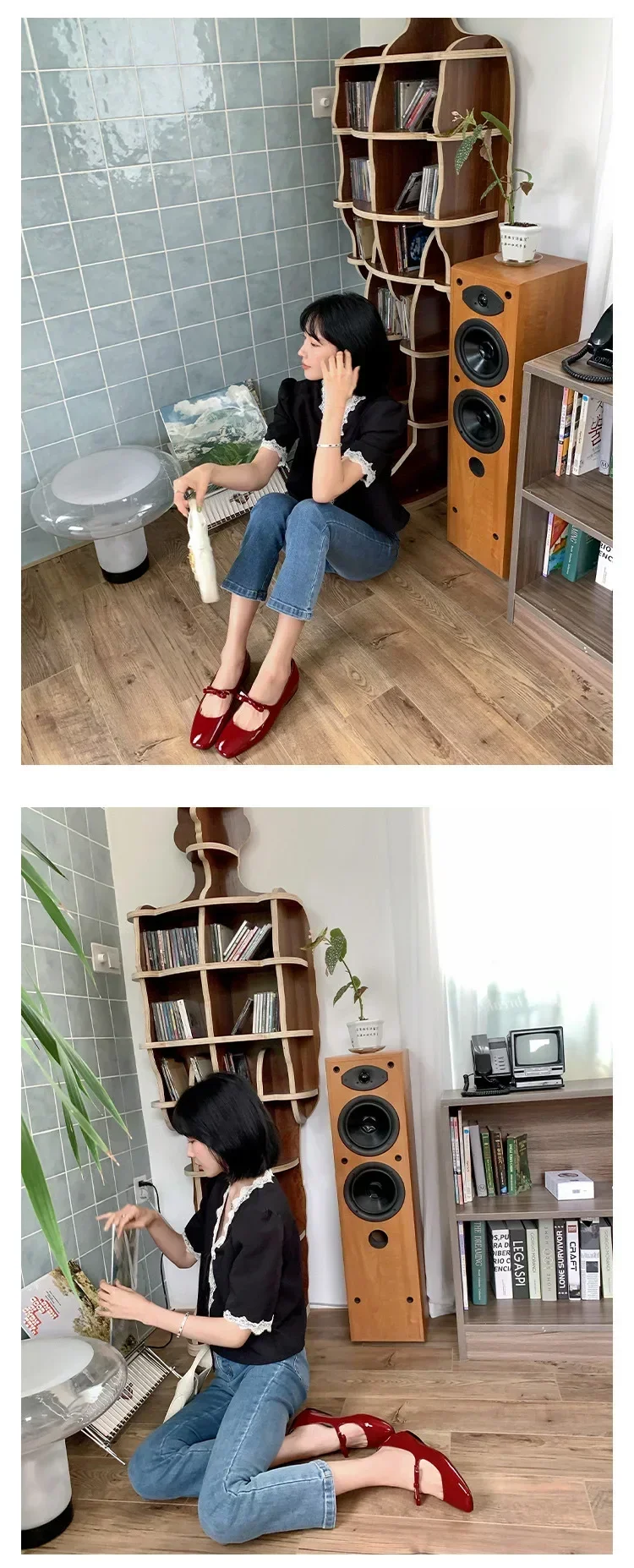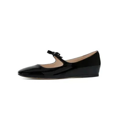 LBSFY -Square Toe Glossy Leather Flats Women Bowknot Mary Jane Shoes Female Red Dance Ballets Party Ball Bridal Wedding Shoes 2025
