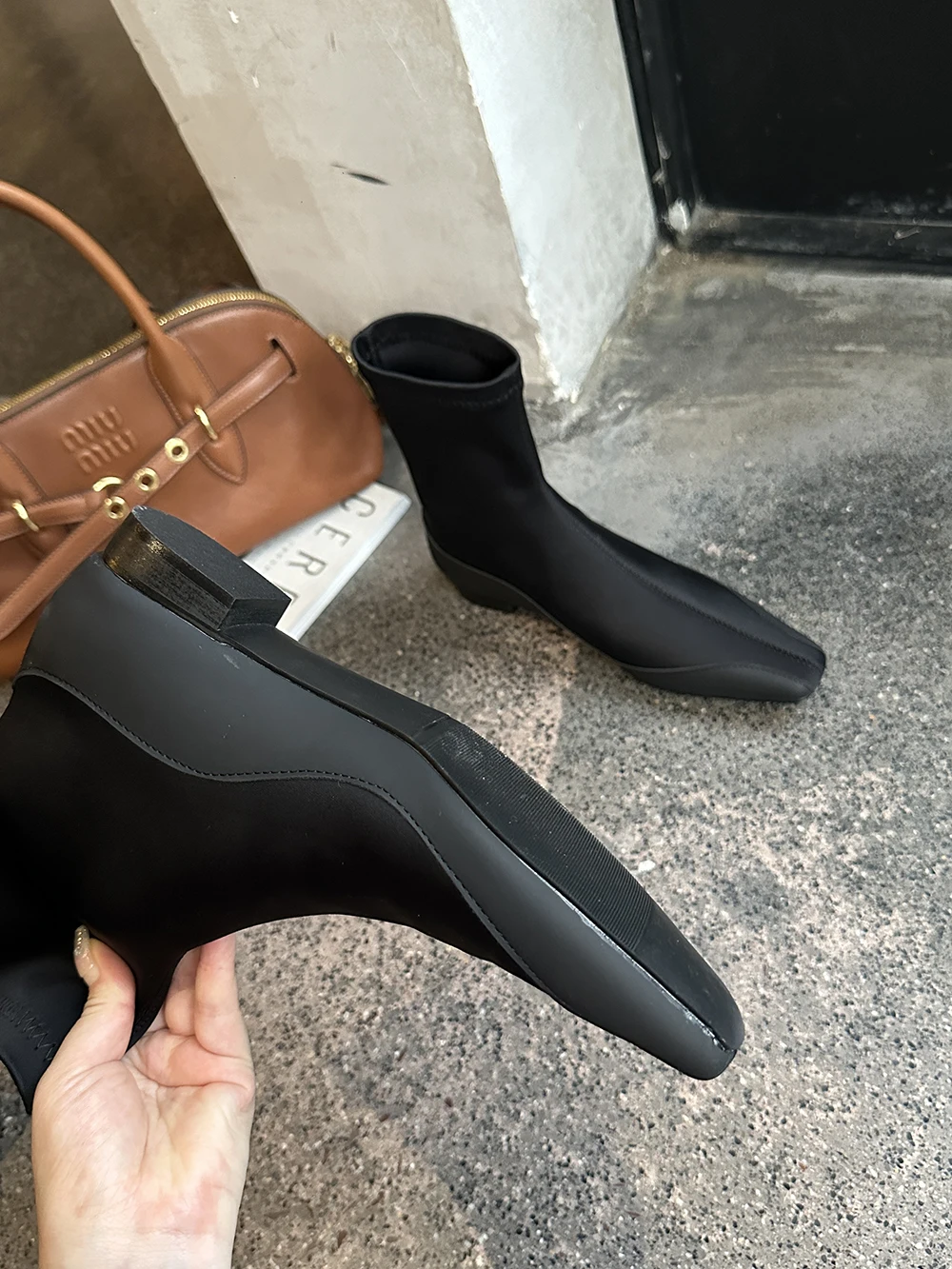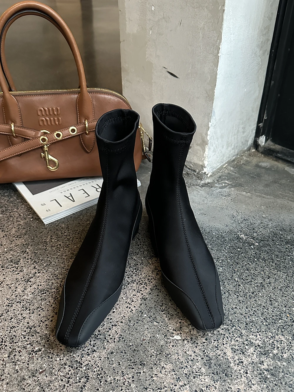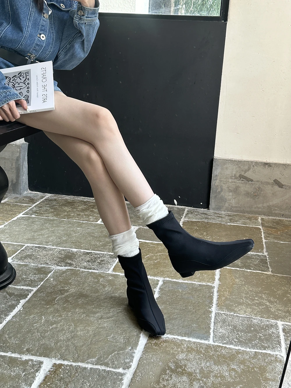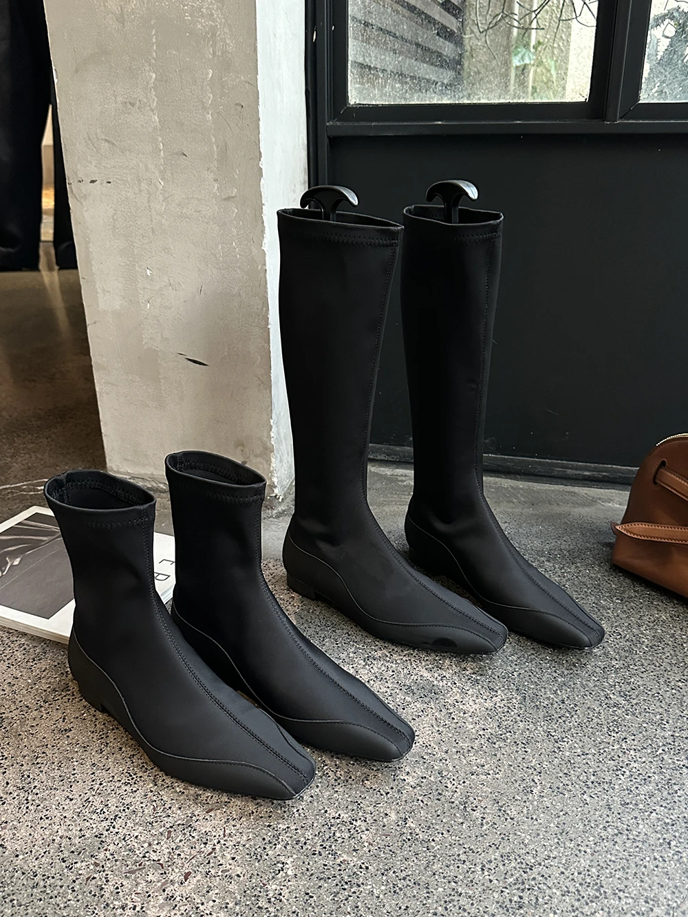 LBSFY - Square Toe Women Ankle Boots Lycra Botas 2024 New Arrivals Ankle Boots Black Cool Autumn Spring Winter Flat Low Heels Bootie 39