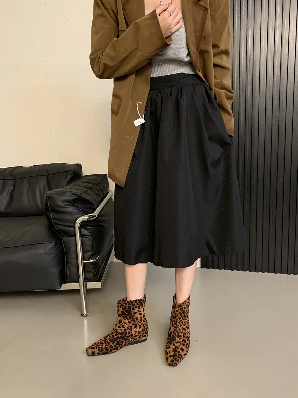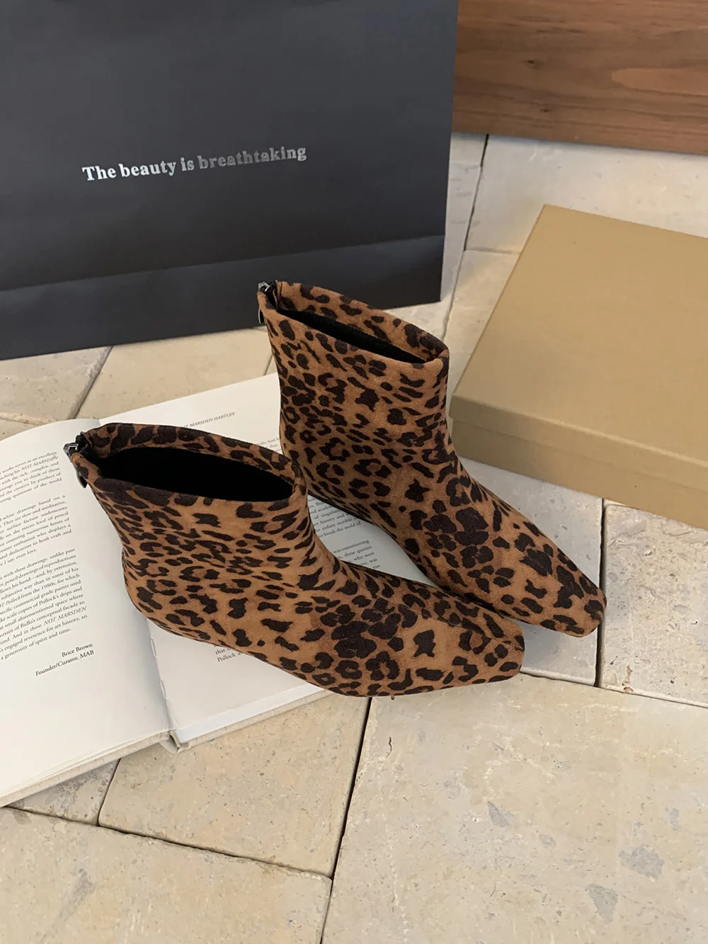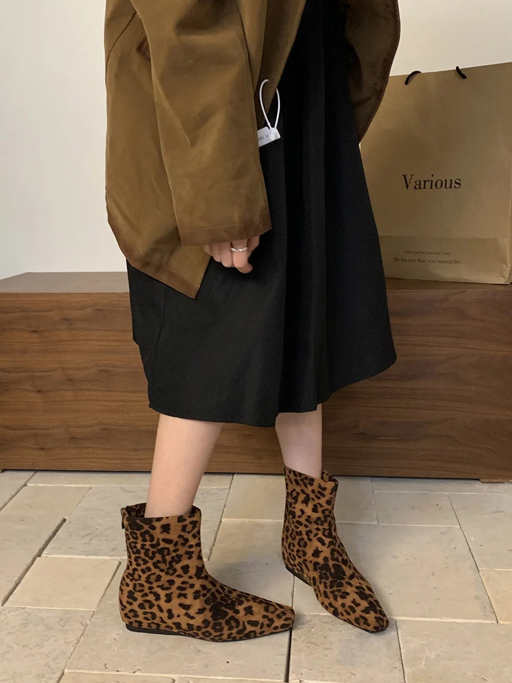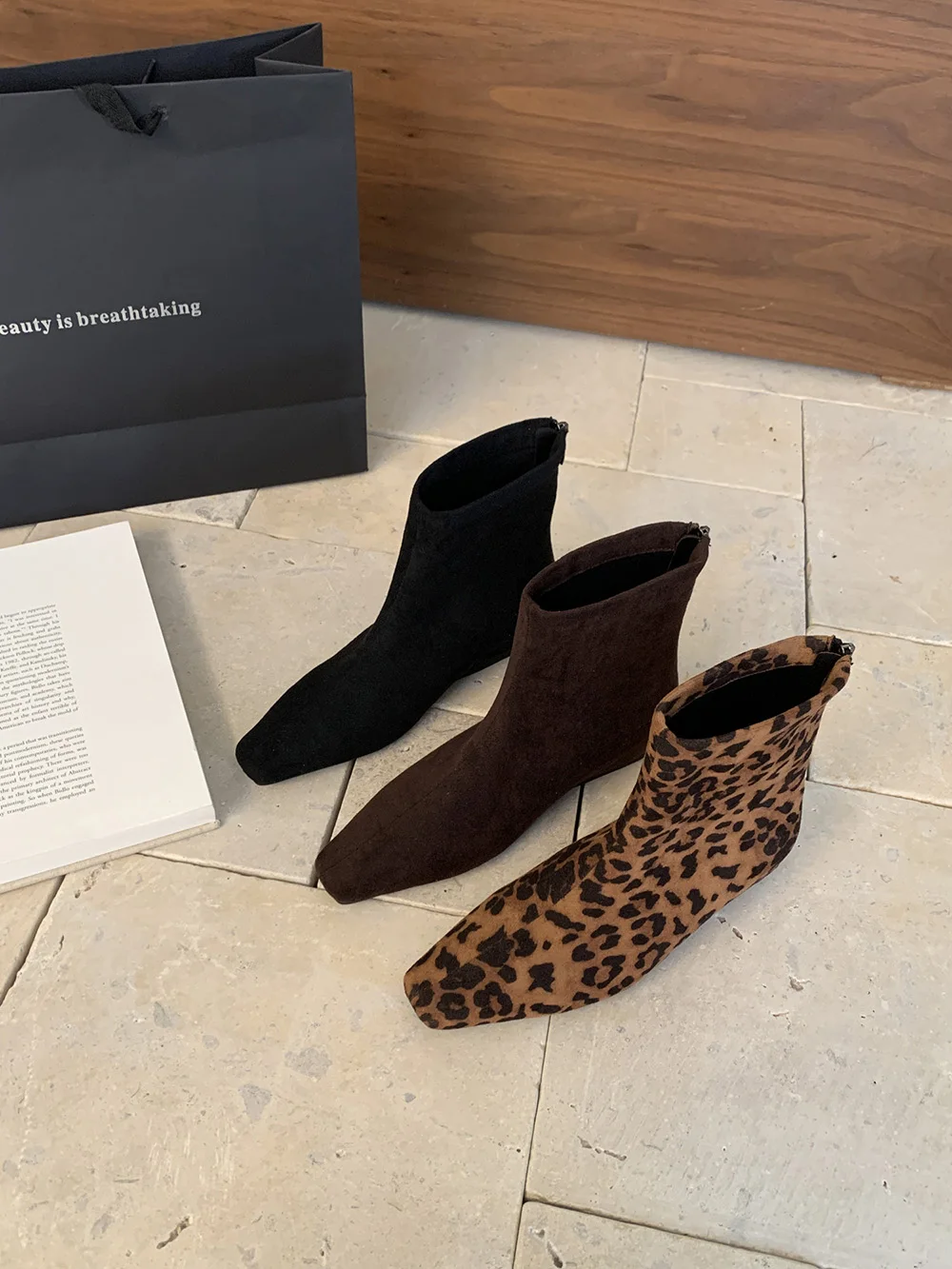 LBSFY - Square Toe Women Ankle Boots Shallow Slip On Flat Heeled Black Brown Leopard 2024 New Arrivals Party Pumps Shoes Woman Size 39