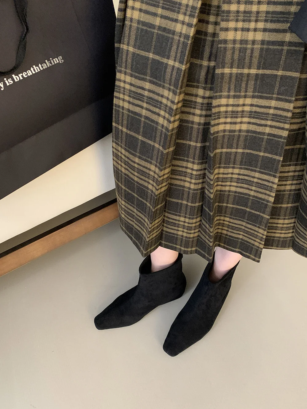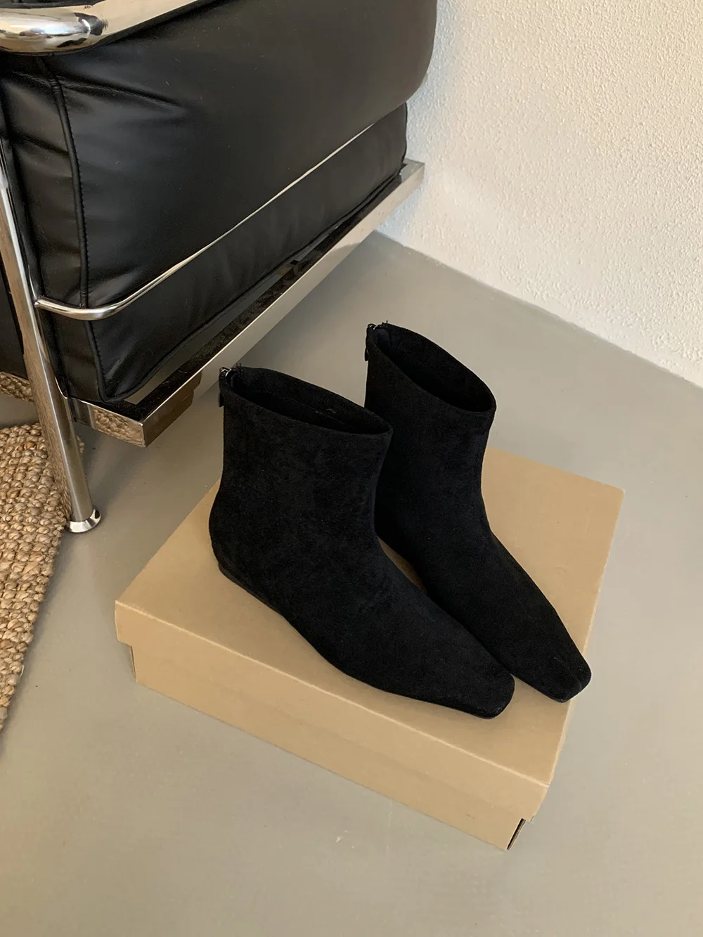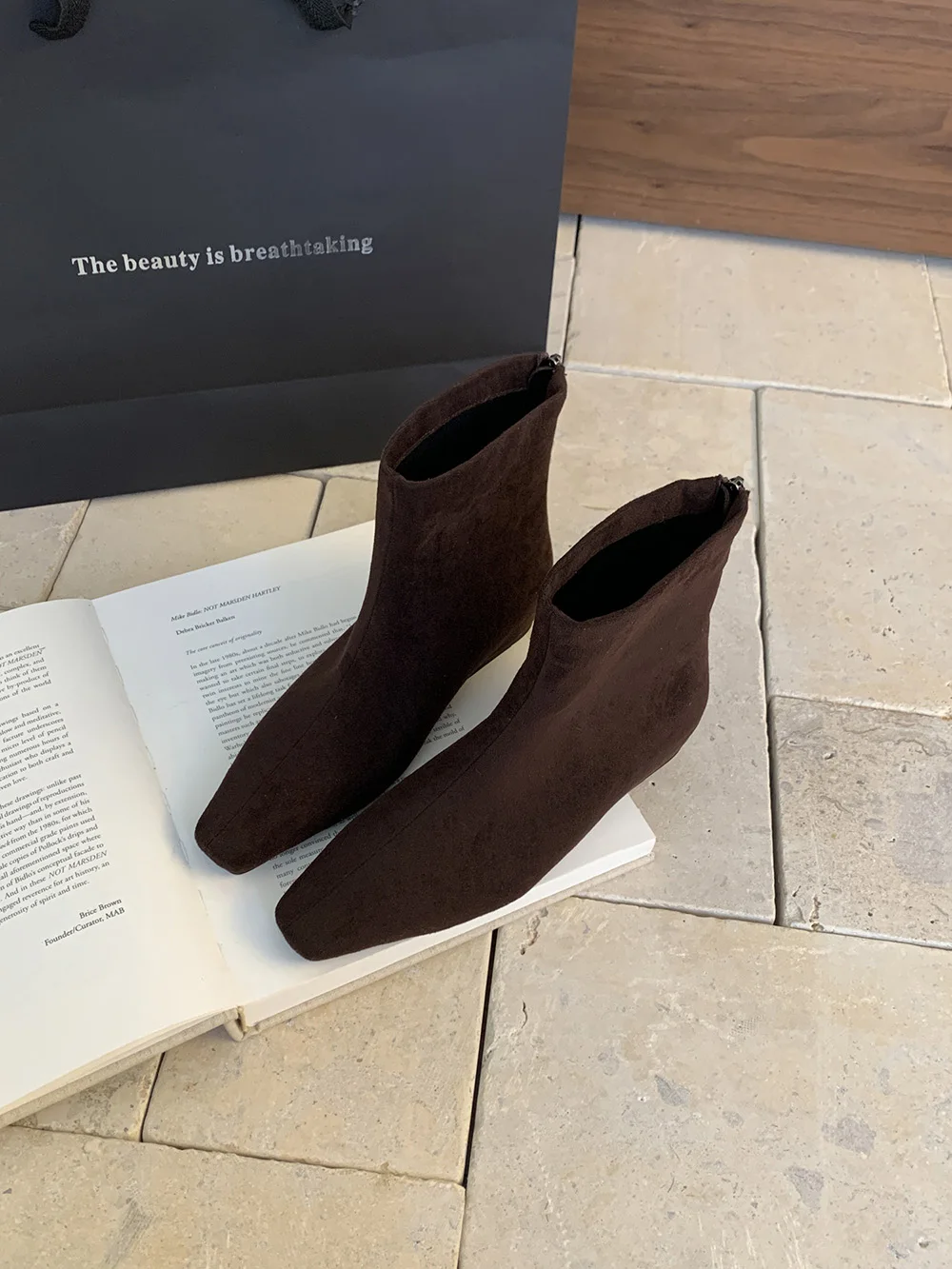 LBSFY - Square Toe Women Ankle Boots Shallow Slip On Flat Heeled Black Brown Leopard 2024 New Arrivals Party Pumps Shoes Woman Size 39