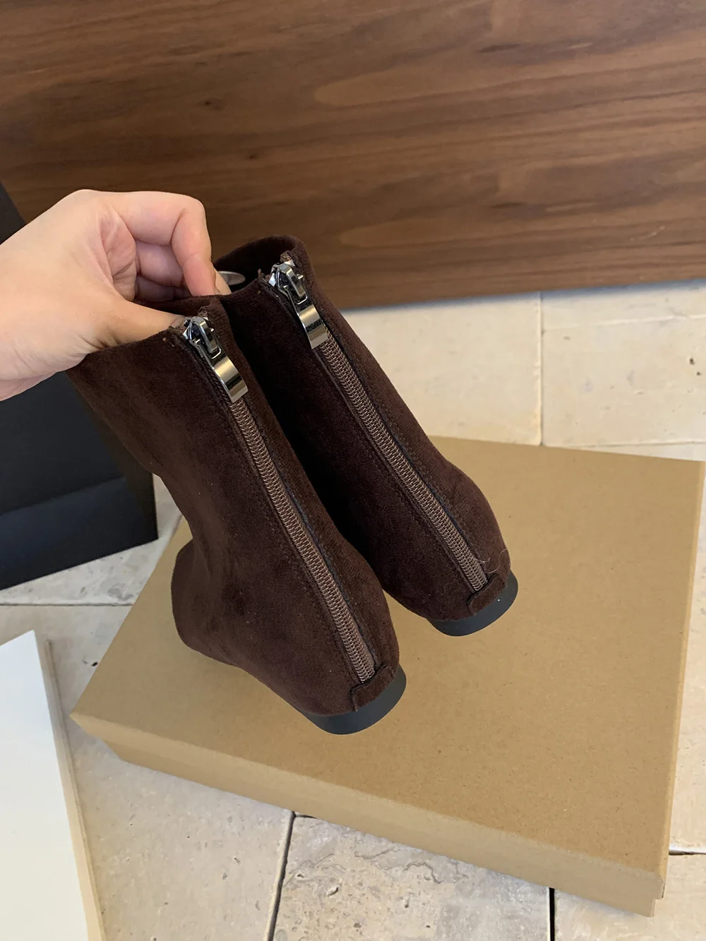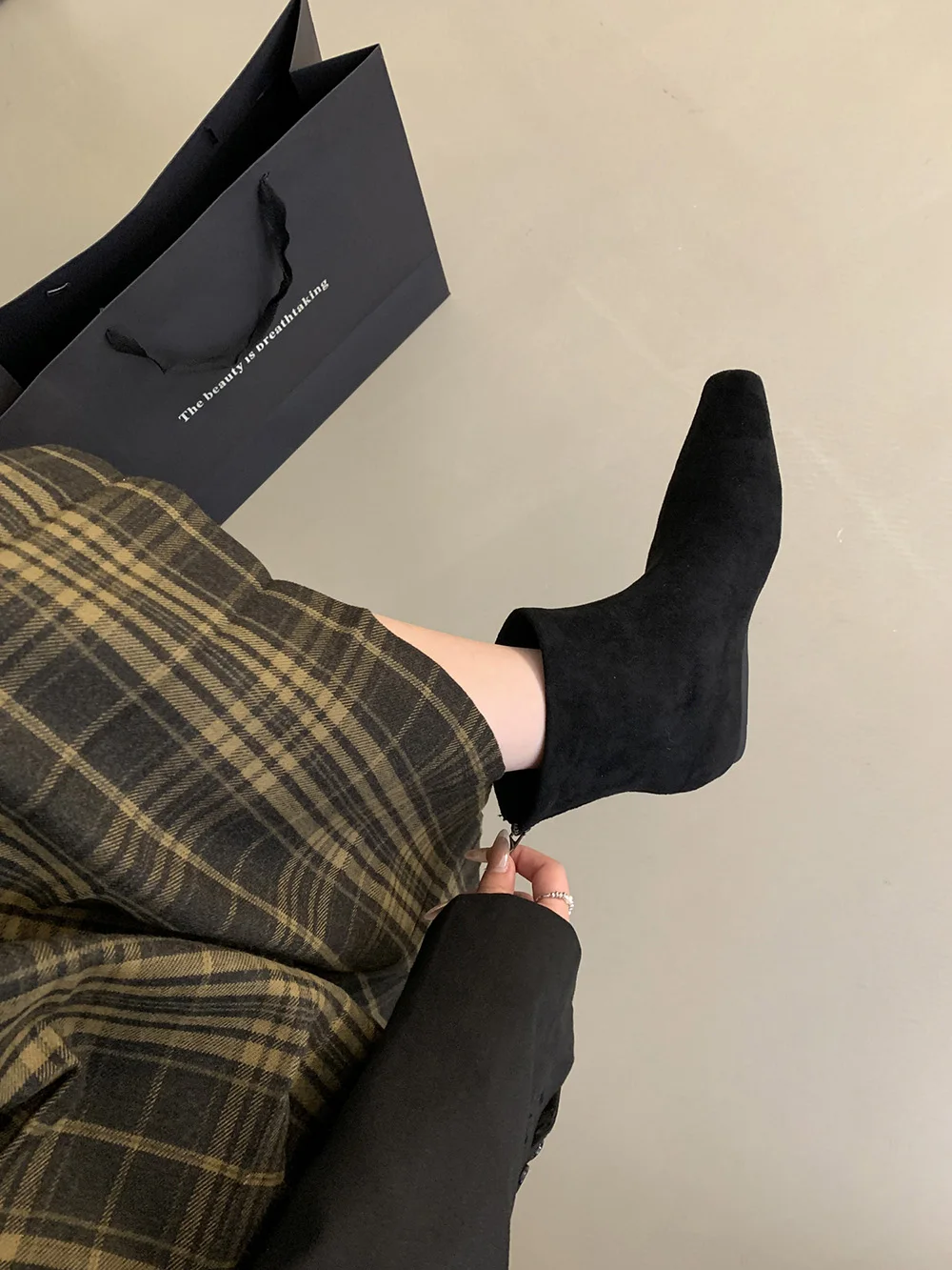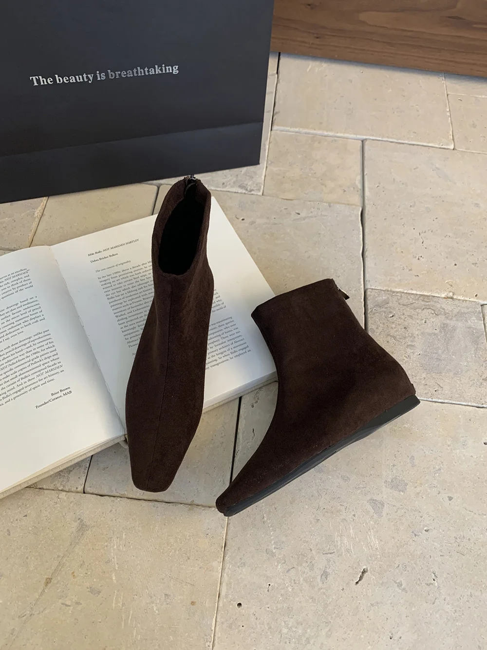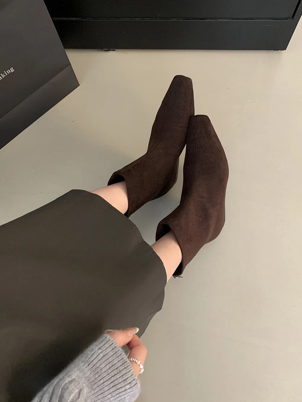 LBSFY - Square Toe Women Ankle Boots Shallow Slip On Flat Heeled Black Brown Leopard 2024 New Arrivals Party Pumps Shoes Woman Size 39