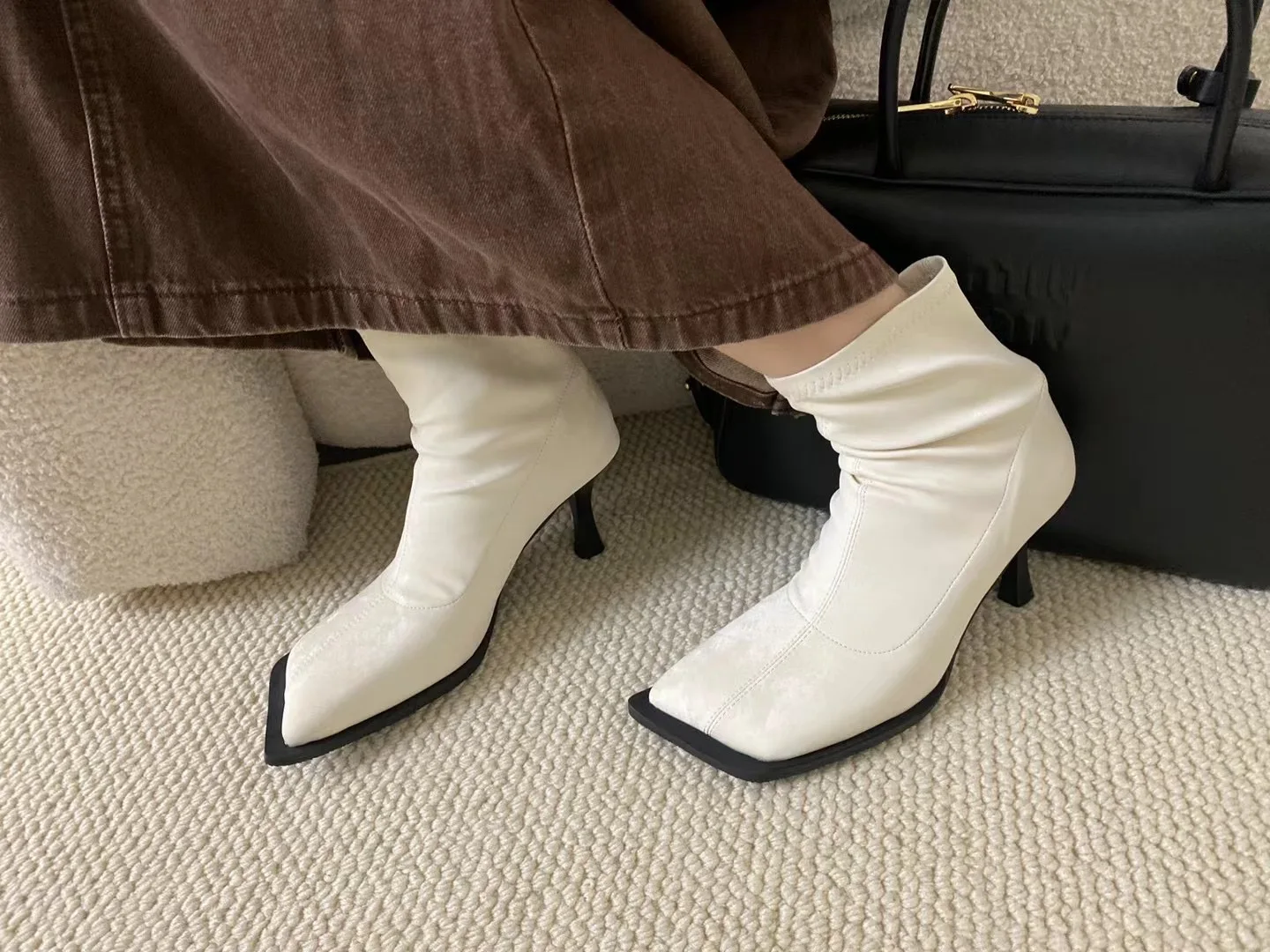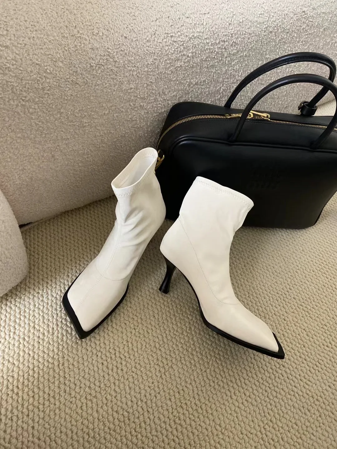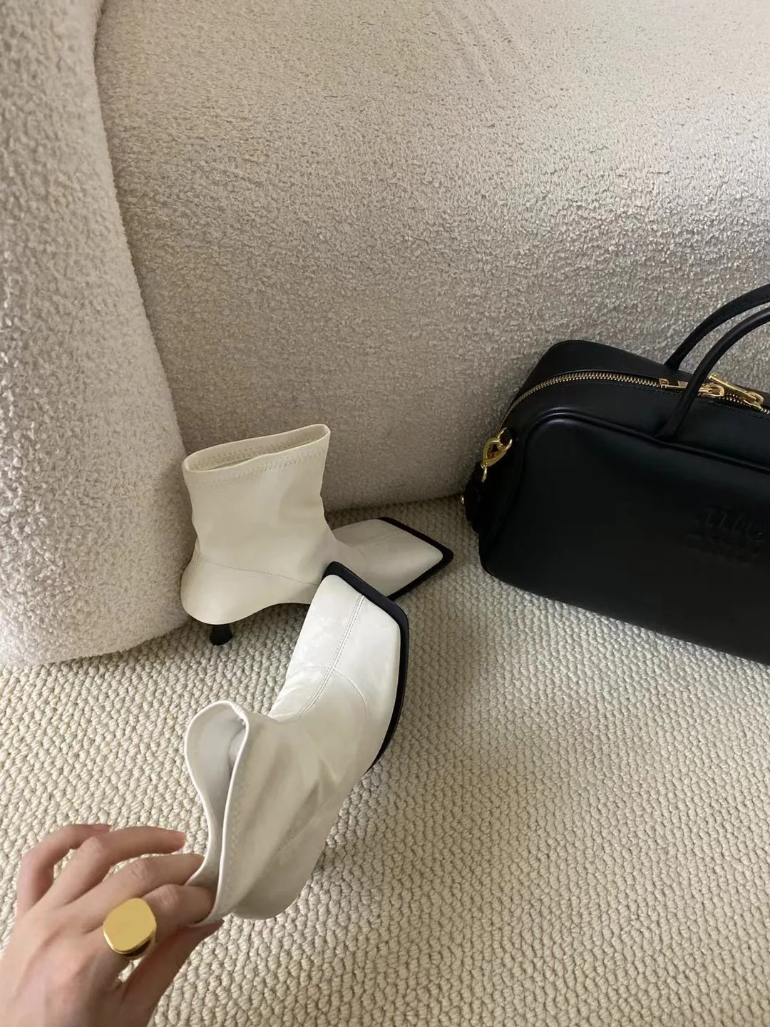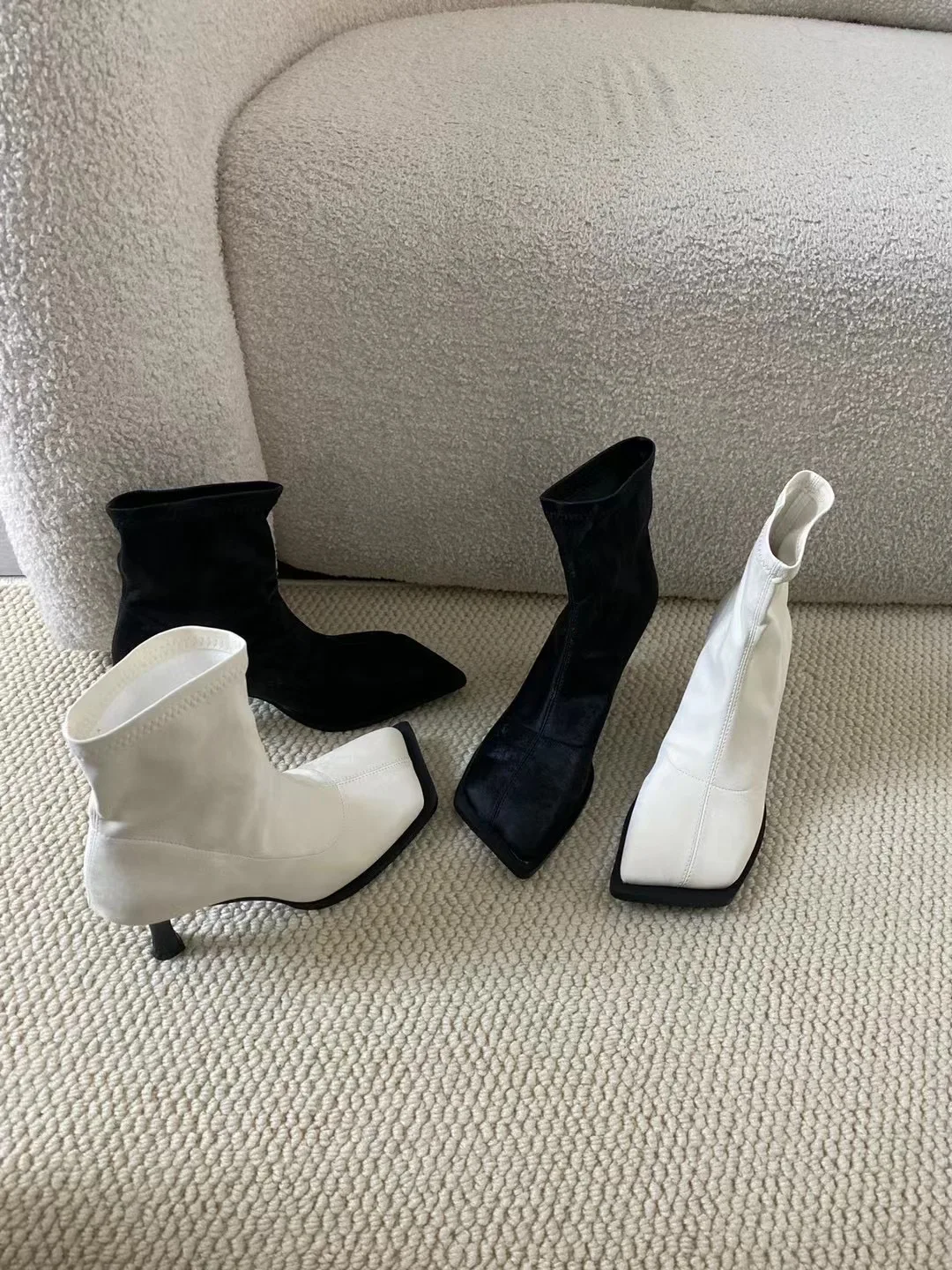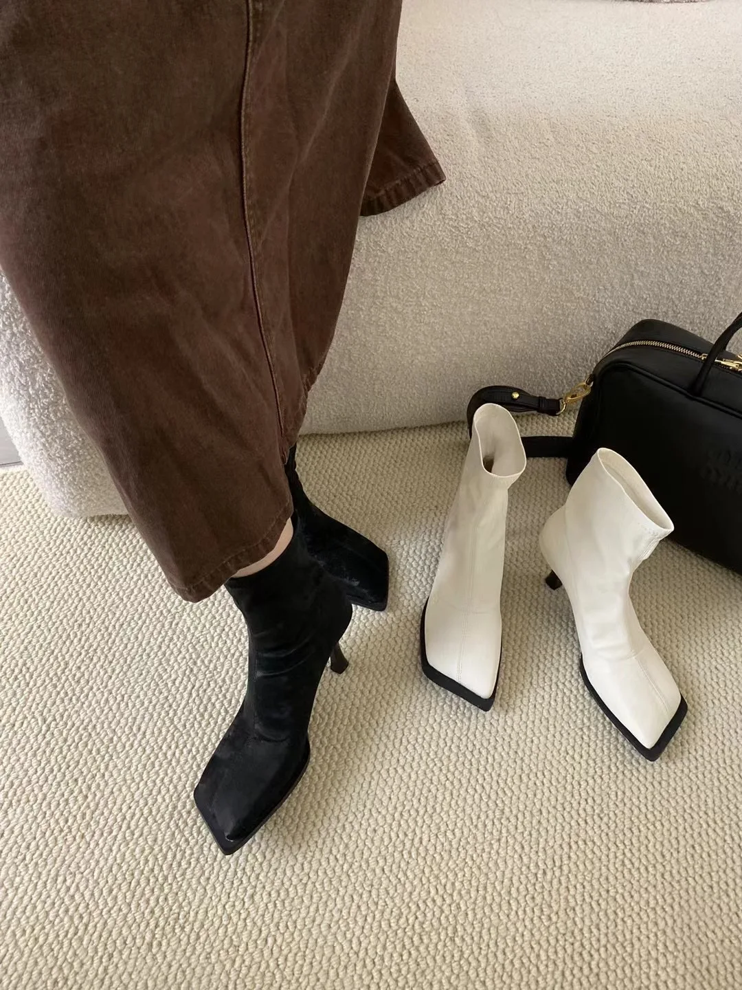 LBSFY - Square Toe Women Ankle Short Boots Fashion Gladiator Sock Botas Thin High Heels Slip On Party Pumps Shoes Woman Size 35-39