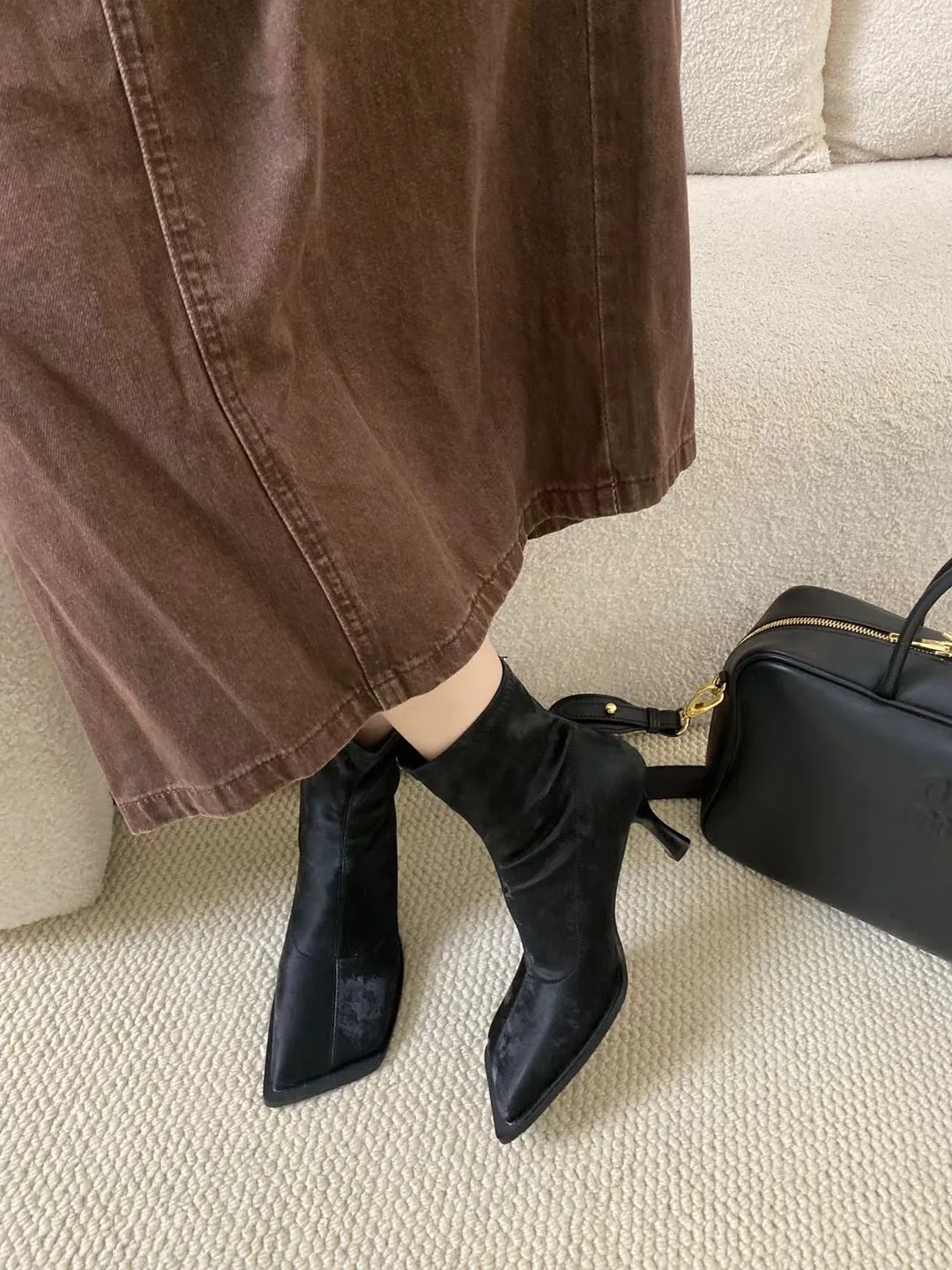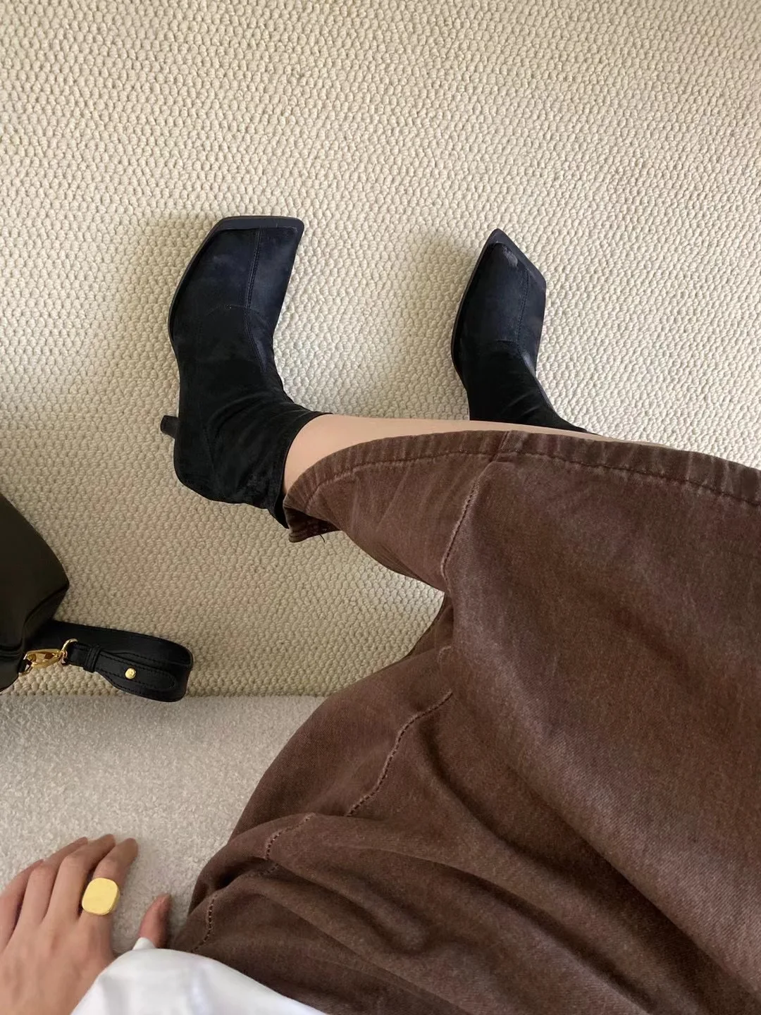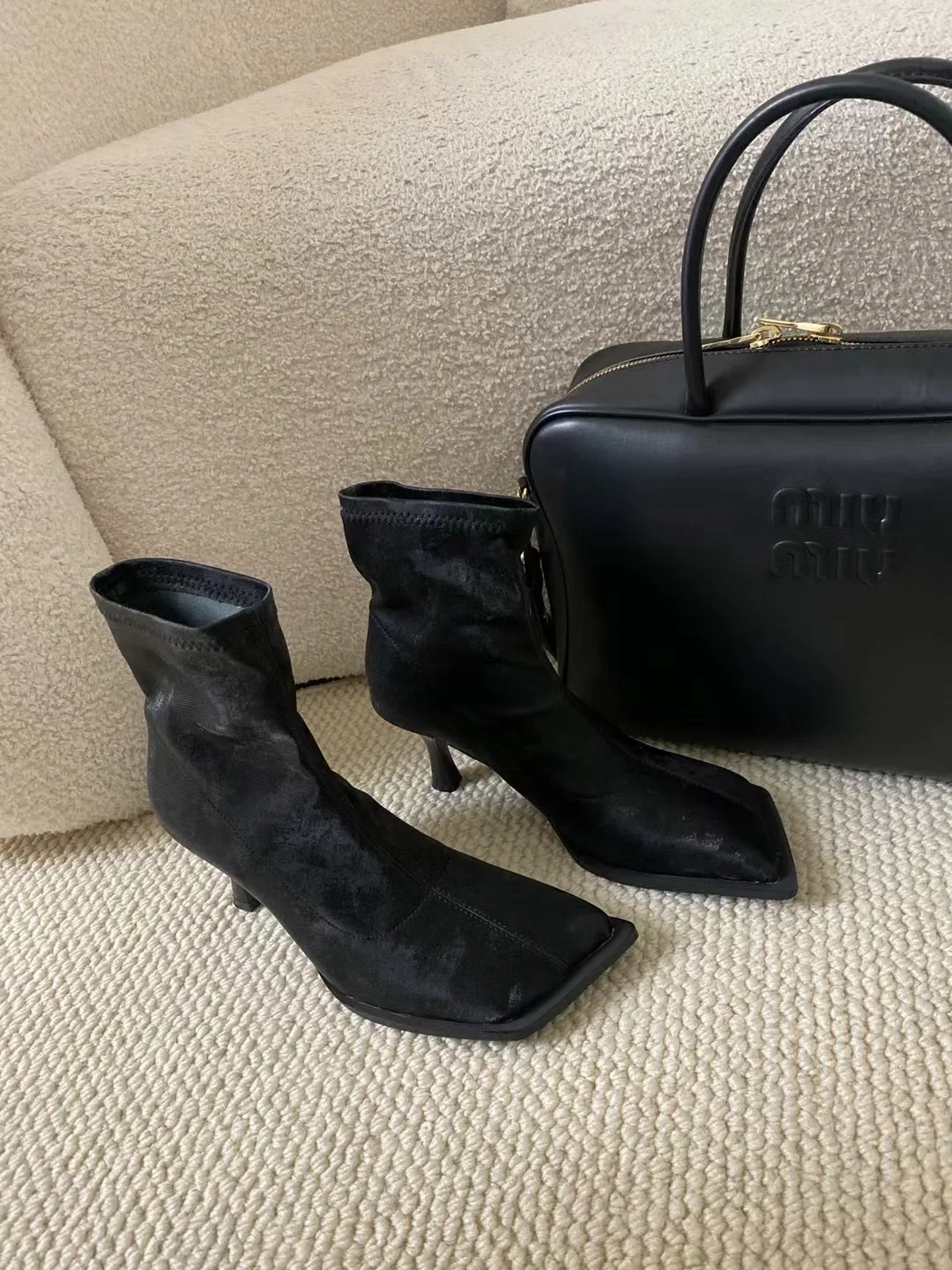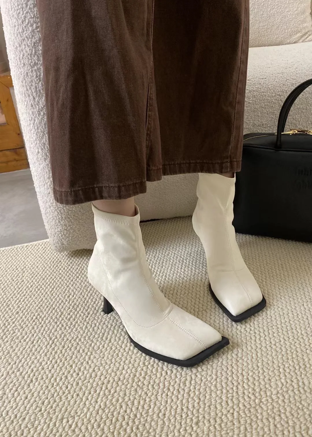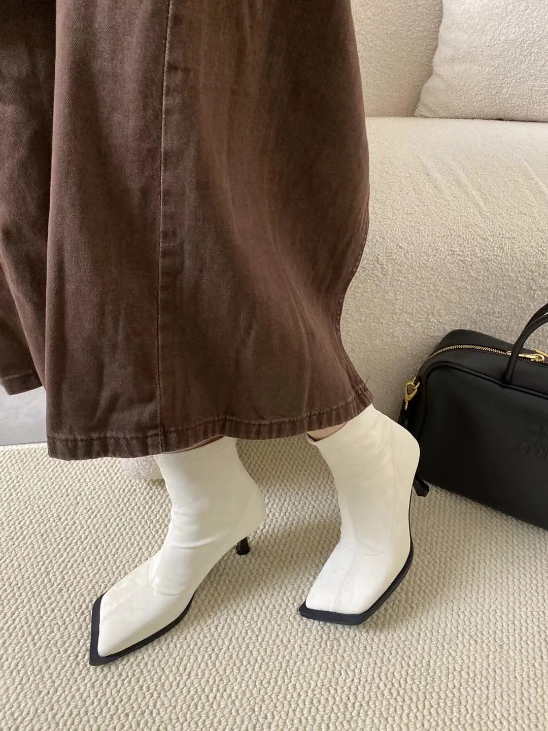 LBSFY - Square Toe Women Ankle Short Boots Fashion Gladiator Sock Botas Thin High Heels Slip On Party Pumps Shoes Woman Size 35-39