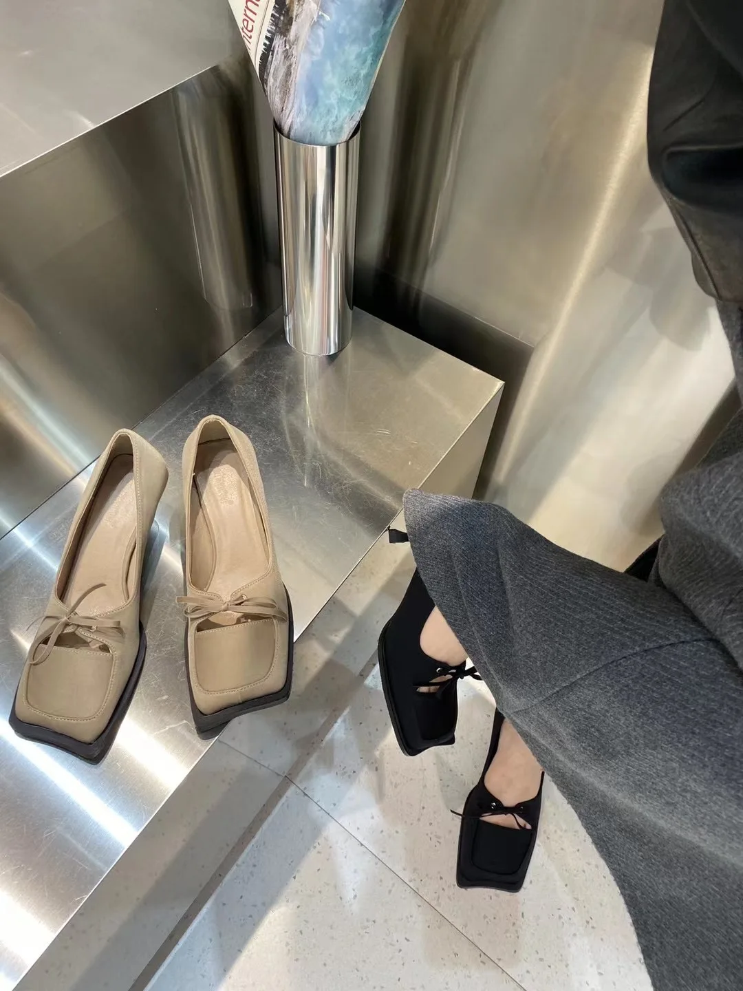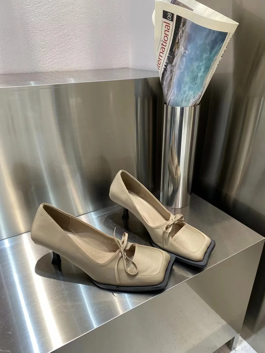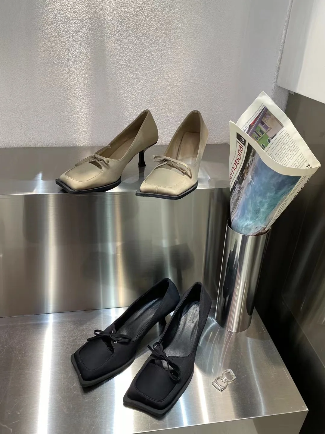 LBSFY - Square Toe Women Pumps 2024 New Arrivals Bow Design Shallow Slip On Thin High Heels Sexy Party Pumps Black Beige Casual Party