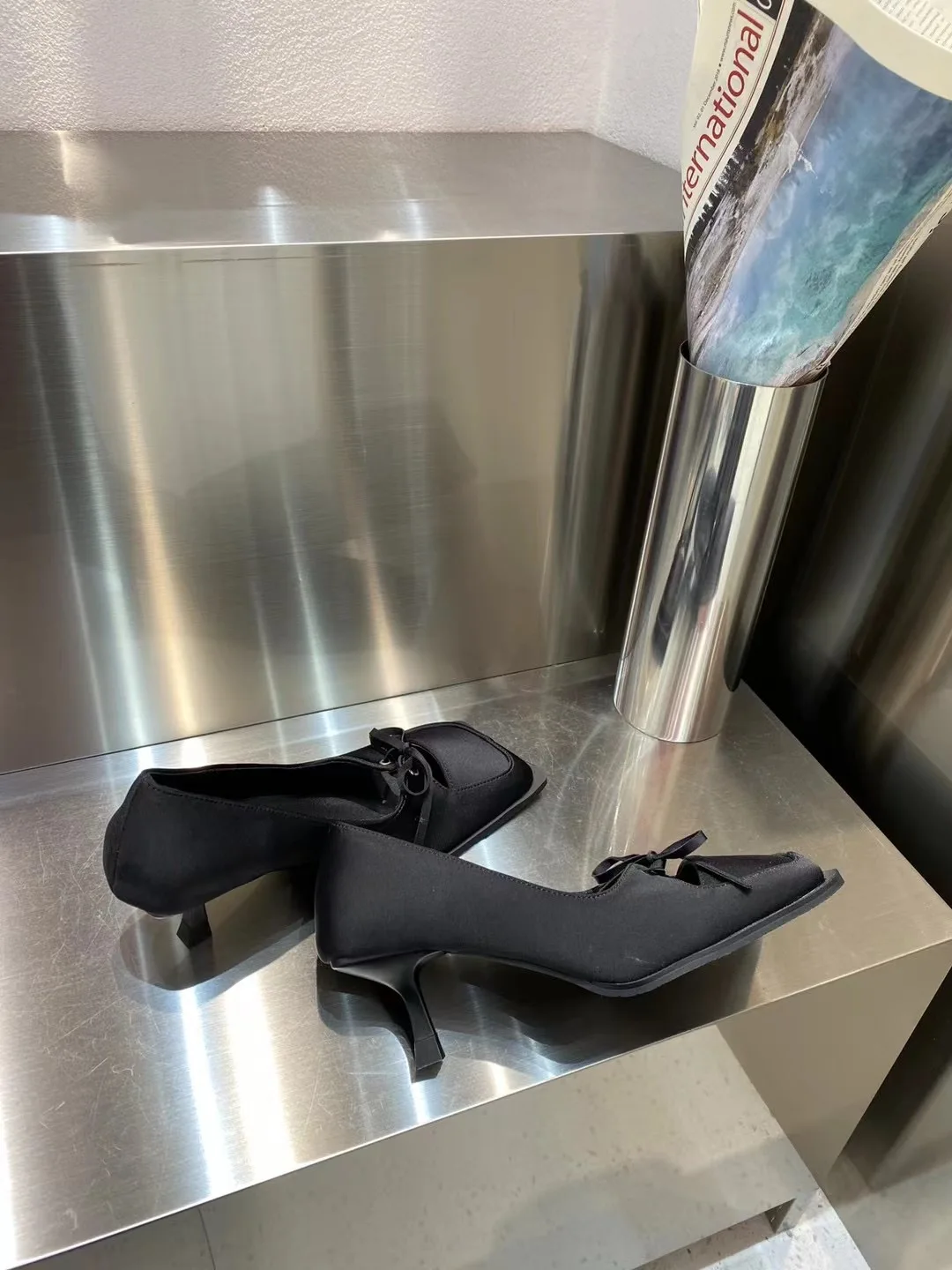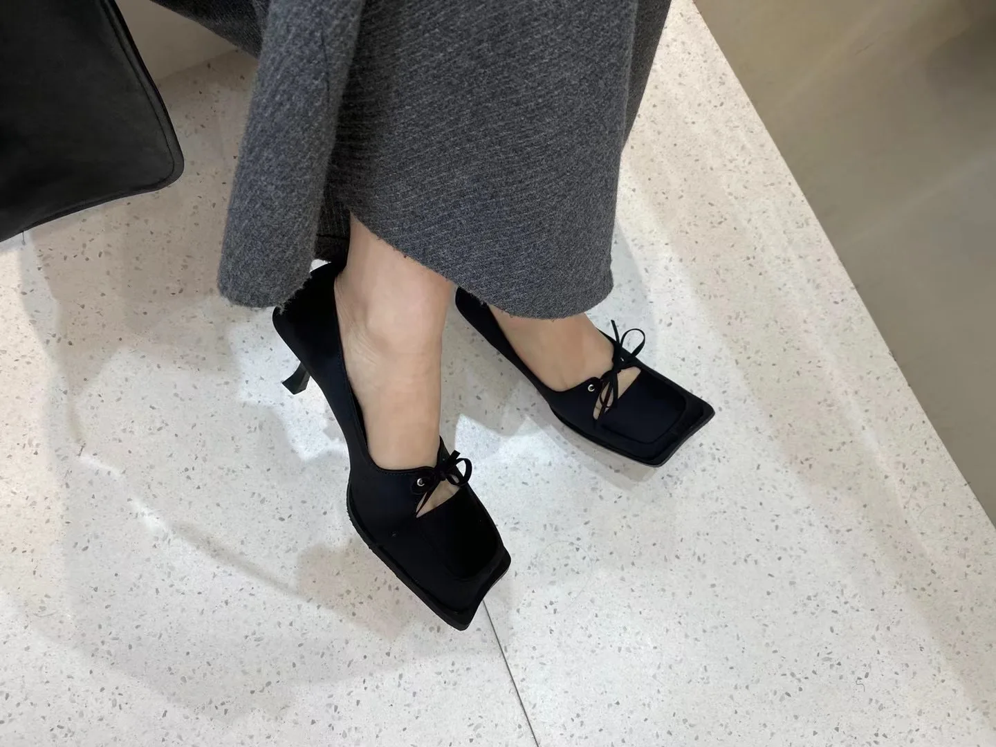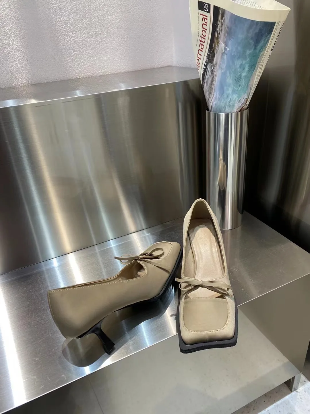 LBSFY - Square Toe Women Pumps 2024 New Arrivals Bow Design Shallow Slip On Thin High Heels Sexy Party Pumps Black Beige Casual Party