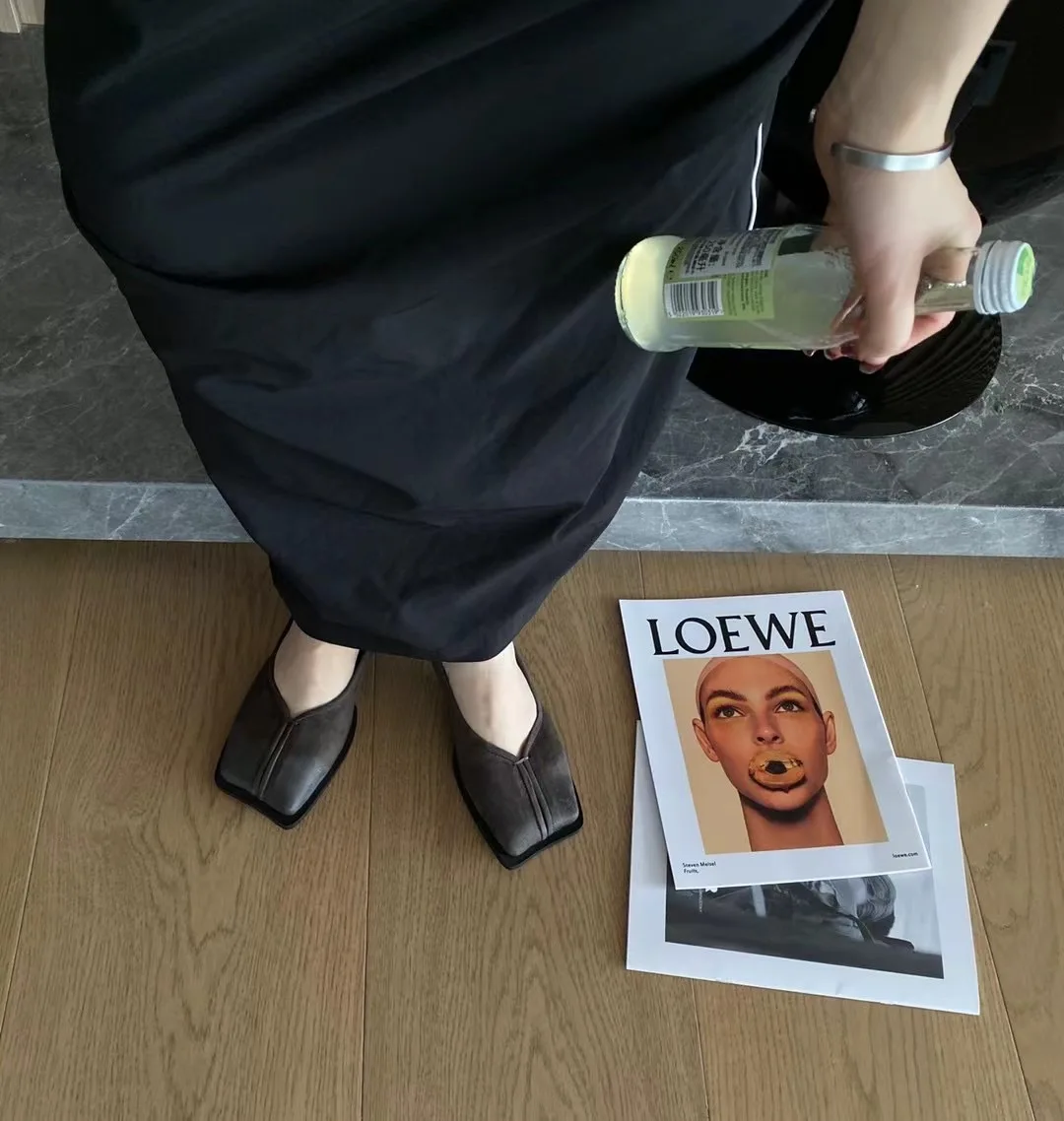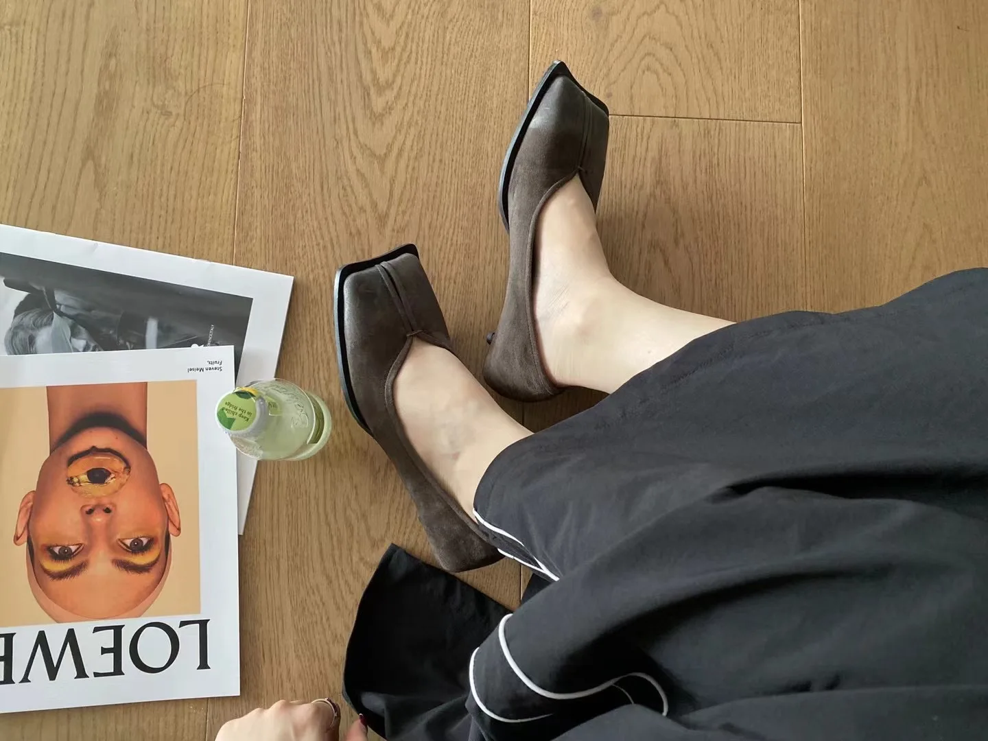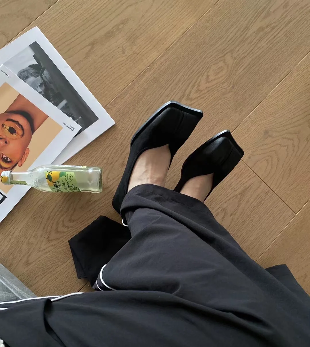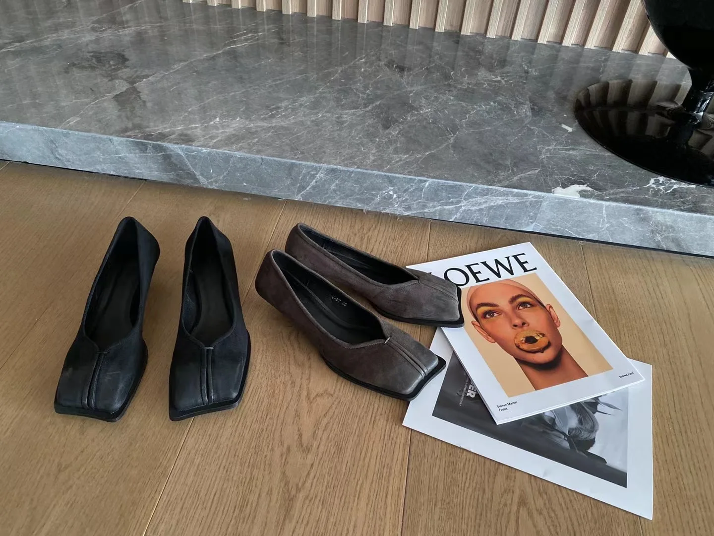 LBSFY - Square Toe Women Pumps 2024 New Arrivals Fashion Office Party Pumps Thin High Heels Black Brown Shallow Slip On Casual Mules 39